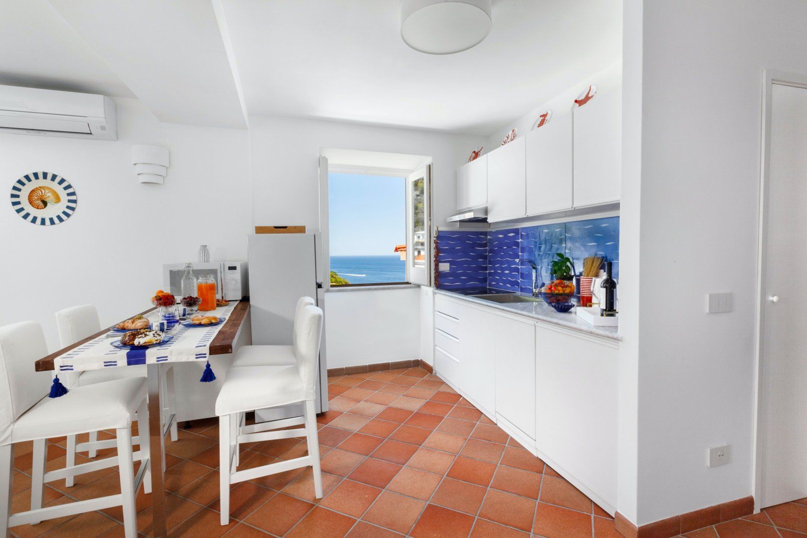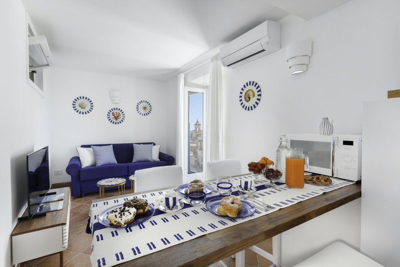 Pick up trinkets in artisanal shops or laze in a seaside cafe. If your itinerary allows for it, take a trip over to charming Montepertuso and embark on one of many hiking routes. Return home in the early evening to watch dusk fall over the shambling rooftops with a tot of limoncello in hand. And when it’s time to get some sleep, the comfortable double bed tempts an early night.