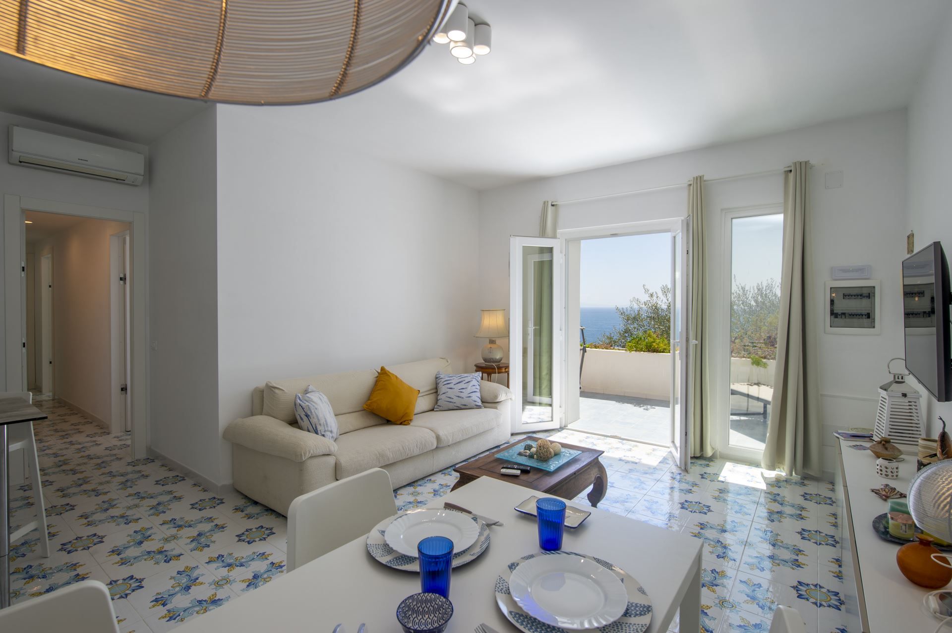 Nestled high on the cliffs in Praiano, this apartment offers a perfect vantage point for glittering sea views. You can soak up the sights from the private terrace, which, although not exceptionally large, has space to lounge in the sun and dine with friends or family. Inside, the cosy bedrooms also face the sea, and two offer direct access to the terrace – alfresco coffee, anyone? A short drive along the coast will bring you to trendy Positano, but this home's location in Praiano is also handy – it's a short walk to local restaurants and bars (for nights when you don't fancy cooking at home), and you can take cliffside walks around the historic Torre a Mare.