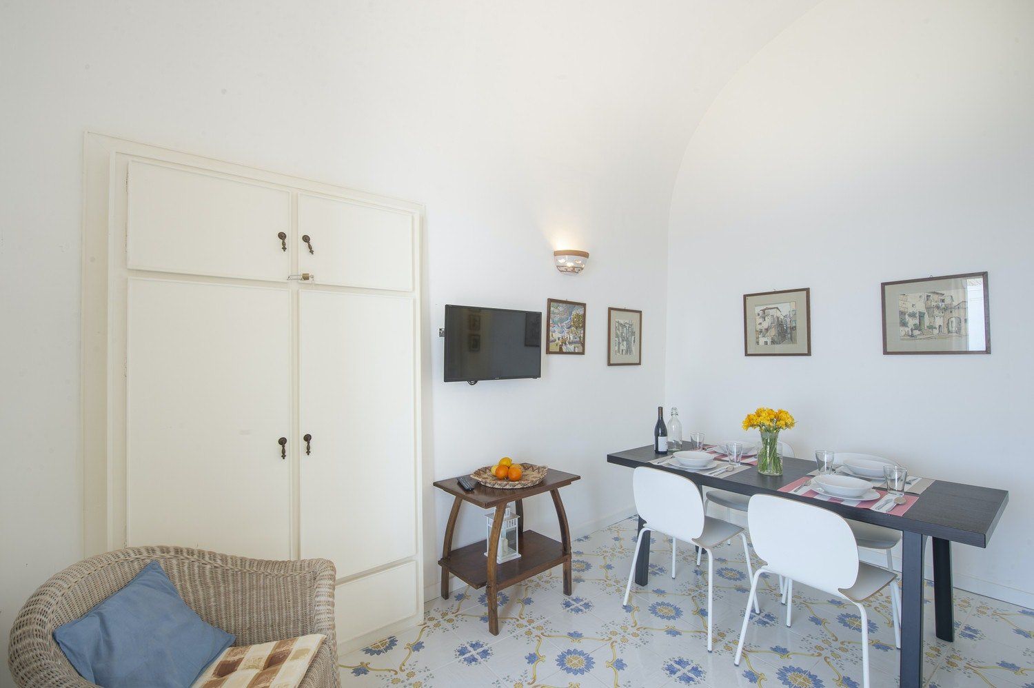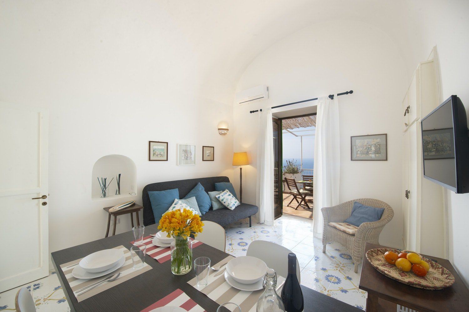 Sat at the foot of the Church of Saint Januarius, overlooking the glittering Tyrrhenian Sea, this laidback apartment is a slice of la dolce vita. Inside, it’s homely and comfortable with patterned tiles keeping things cool underfoot and a compact kitchenette with everything you need for putting together quick bites. Begin mornings with breakfast on the patio, listening to the bells peal as you tuck into flaky sfogliatelle.