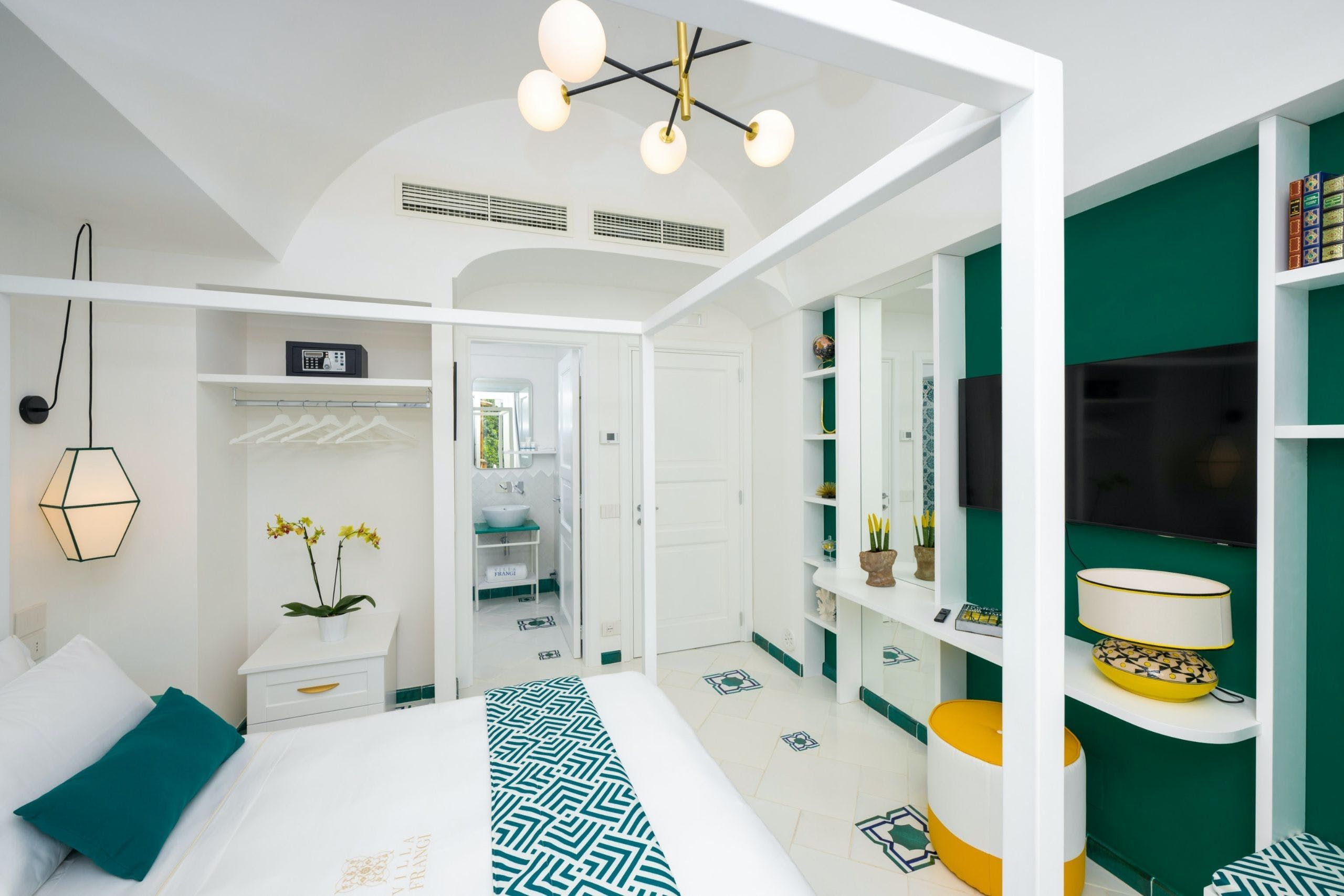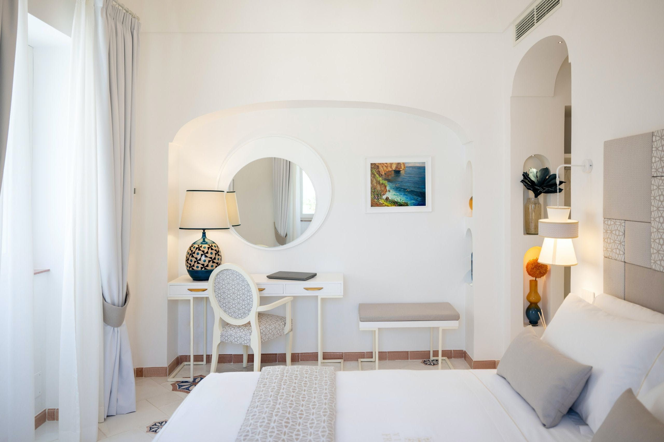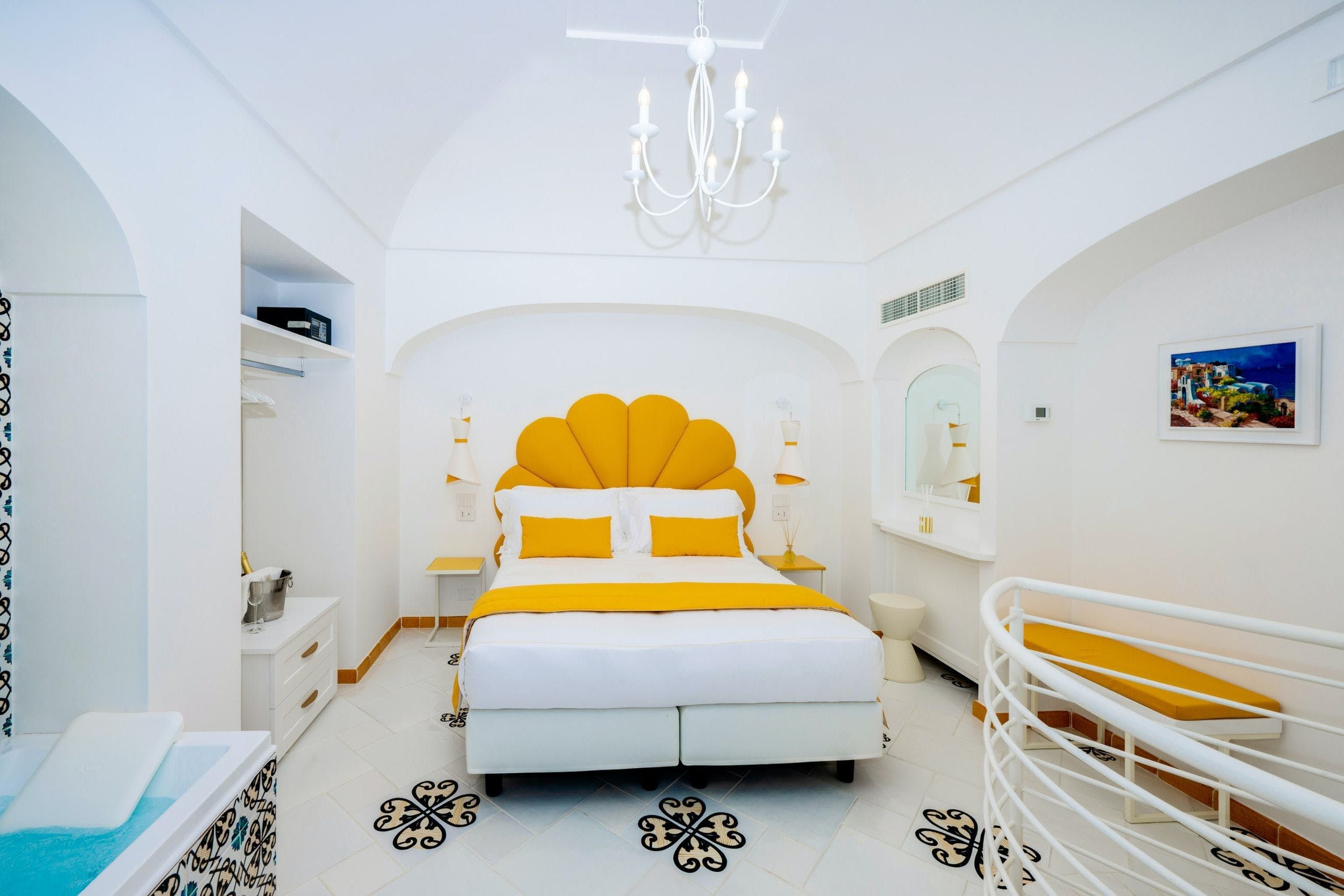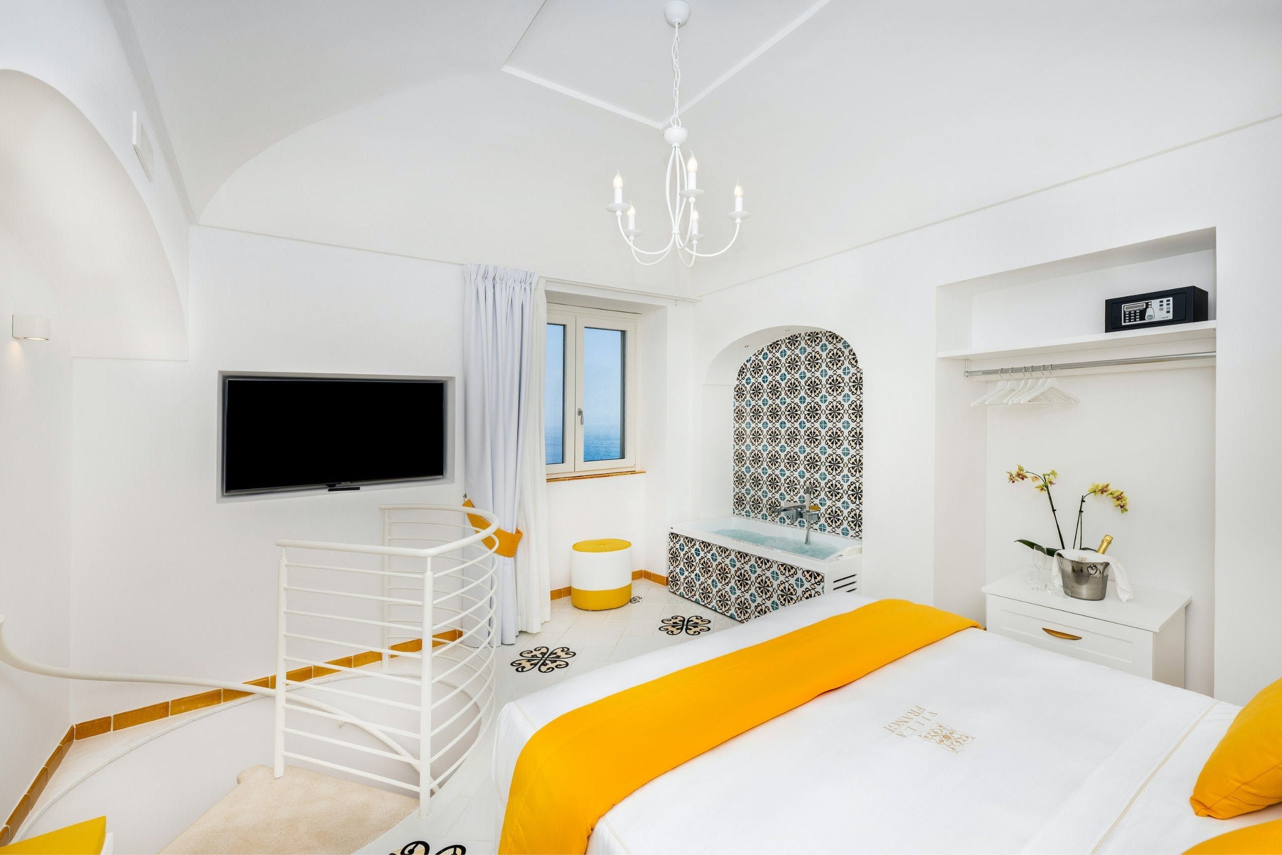 This sea-facing villa on the Amalfi Coast is a dreamy choice for a luxurious getaway. In addition to a gorgeous outdoor pool, this home has an indoor pool and a spa area with a sauna. The villa is chic and stylish, equipped with everything you might need – and your host can arrange for private chefs and spa treatments to make it all the more relaxing. We love the outside space, which includes gardens and a shaded area for alfresco dining. Best of all, from here you can easily explore the Amalfi Coast, including the stunning beaches of Positano. There’s a bus stop nearby, so you don’t even need to bring a car.