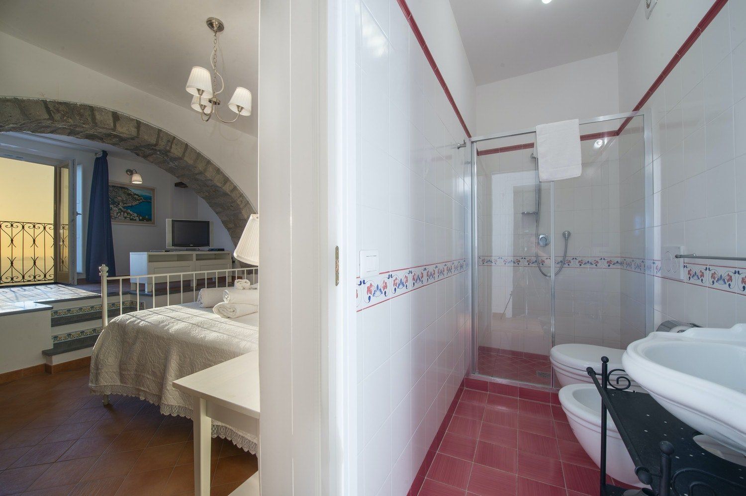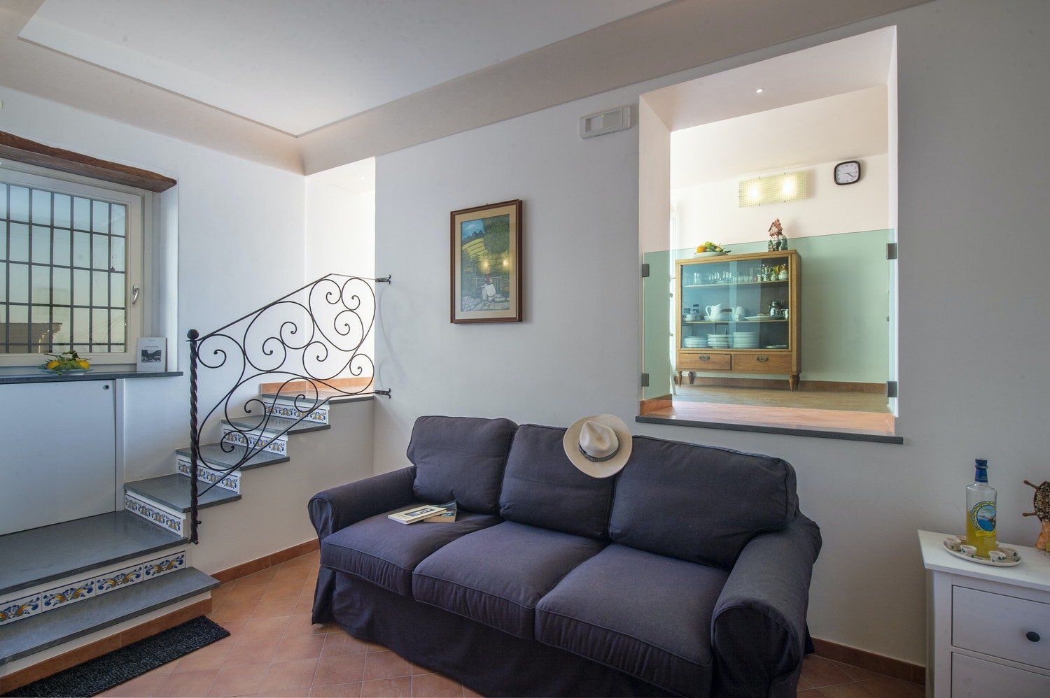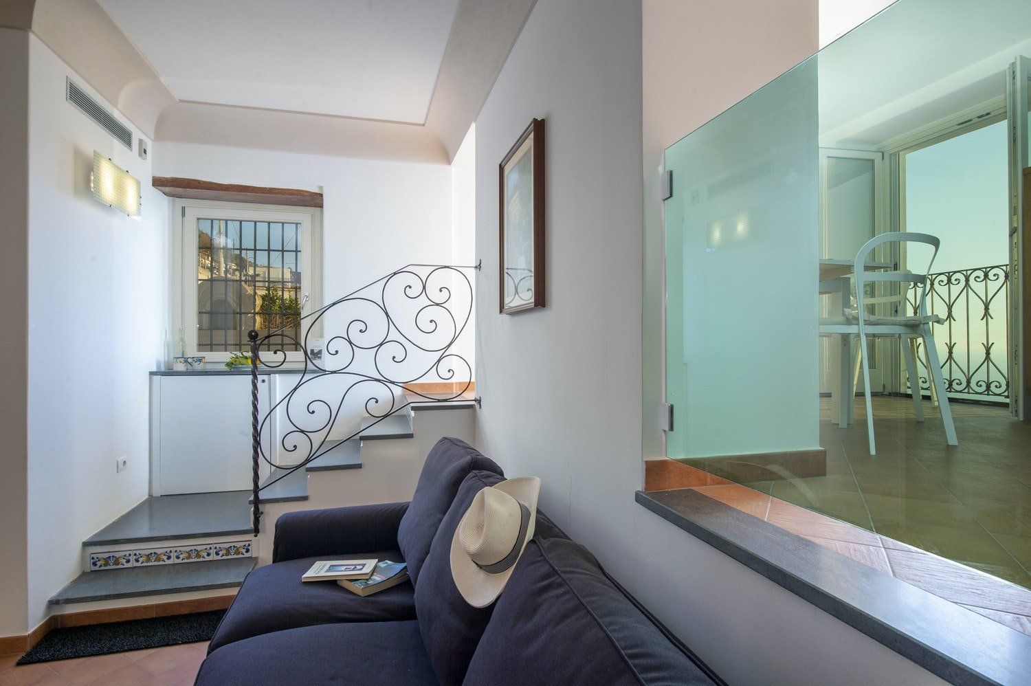 Perched on a hill above the famous church of San Gennaro on a walkway known as the 'Path of the Gods' the apartment overlooks the pretty town of Praiano, with views of Positano and the glamourous island of Capri in the distance. The centre of Praiano (one of those towns emblematic of this region that clings implausibly to hillsides plunging dramatically into the deep blue waters below) is reachable by means of a set of around 60 stairs, at a distance of around 200 metres. There, not only will you find bags of typical Italian charm, but a wealth of lovely cafés where you can watch the world go by with an aromatic cup of energising espresso, authentic trattoria serving out-of-this-world pasta, seafood, and meat dishes accompanied by freshly grilled vegetables, and higher-end restaurants with panoramic sea views.