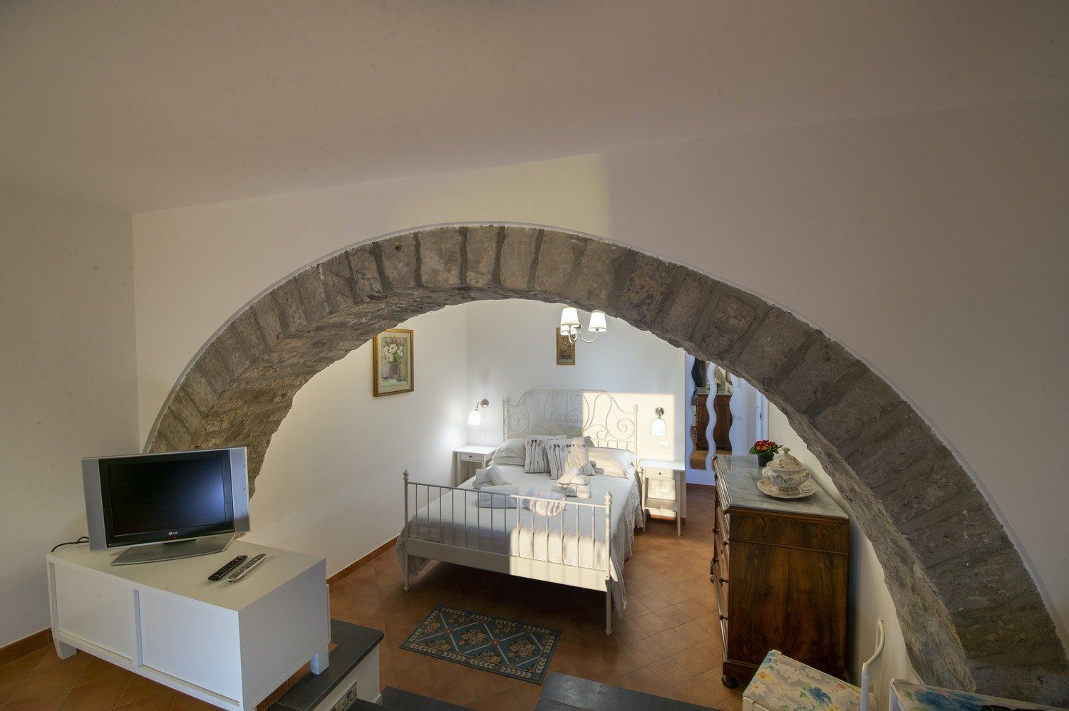 As for the apartment itself? It feels traditional, without feeling dated – seamlessly stitching together fine pieces of antique furniture, with clean-cut modern and functional items, whilst tile flooring and the occasional wooden beam act as a nod to a bygone era. We especially love the exposed stone detailing on the archway in the bedroom area. Could there be a better way to wake up than to open your eyes and see the twinkling waters of Tyrrhenian Sea shimmering before you, as that enigmatic Almafi Coast light streams through the window creating patterns on the ground as it hits the wrought iron balcony?