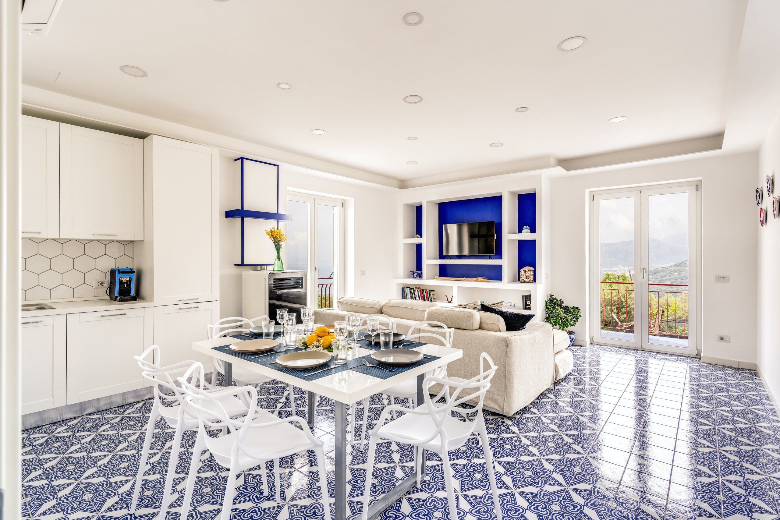 This boutique apartment boasts stunning panoramic views of the Sorrento coastline and the Mediterranean Sea. It’s a charming, chic base for a coastal escape, with pretty interiors – we especially love the colourful tiled floors. The open-plan living, dining and kitchen space is the heart of the home, though you’ll likely spend most of your time on the terrace – it’s a marvellous spot for soaking up the sun and admiring the views. Two guests will be sleeping on a sofa bed in bedroom three, so they’ll still have their privacy.