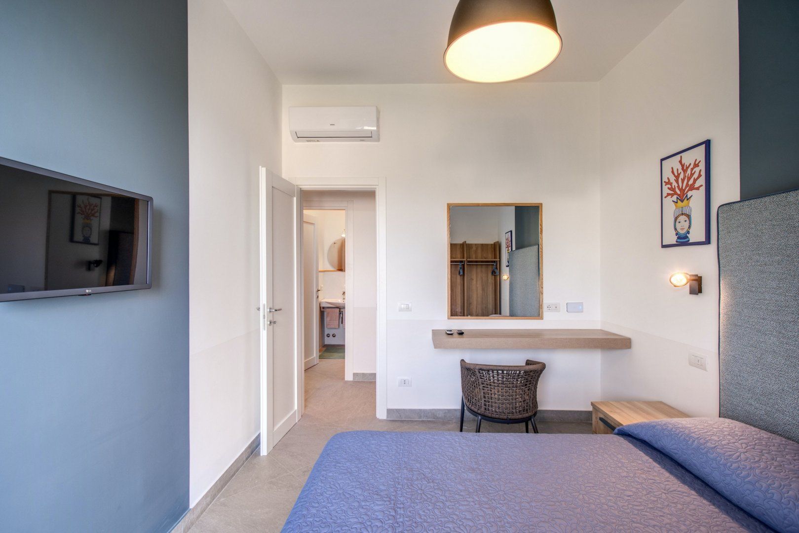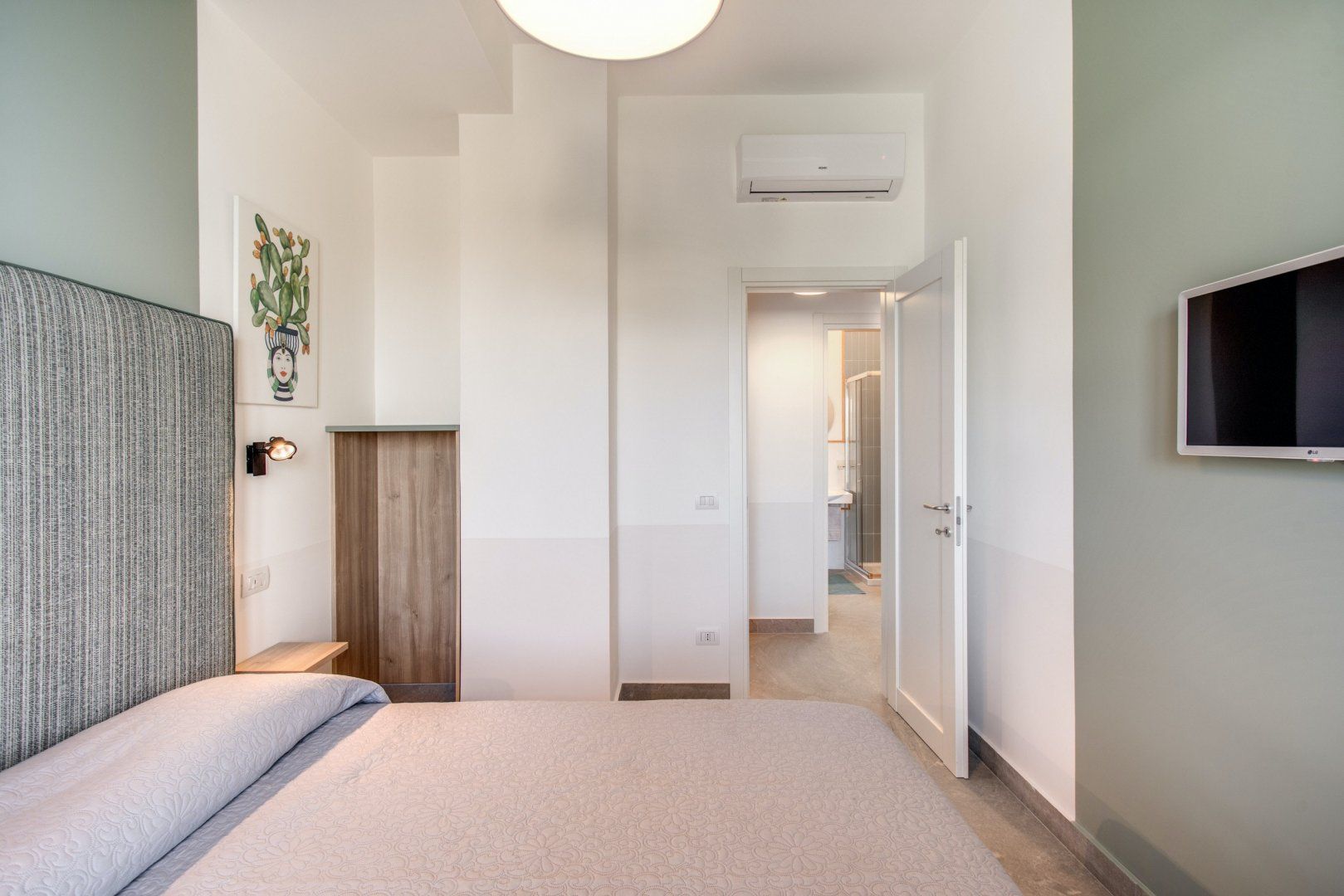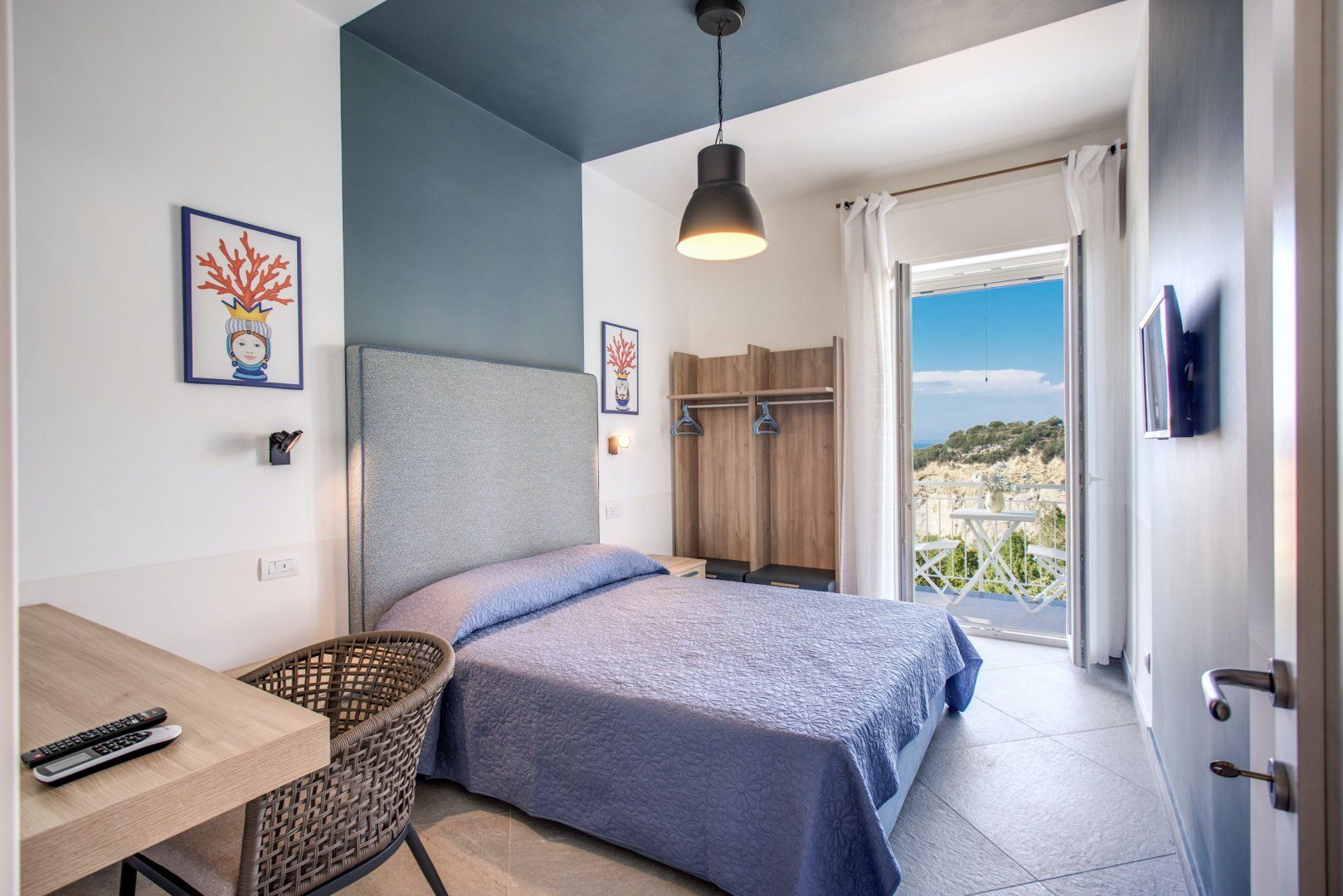 Retire to your bedroom and unwind for a restful night’s sleep when tiredness sets in. The decor is simplistic, focusing on tall headboards and fresh vibrant linen. In the morning, draw back your classic white drapes to reveal the Italian beauty outside. Feel the warmth of the sunshine on your skin as the sun beams light through the large glass doors and the sky develops a pearly glow. As you stroll out onto your terrace and breathe in the fresh sea air, you’re gently reminded you're in paradise.