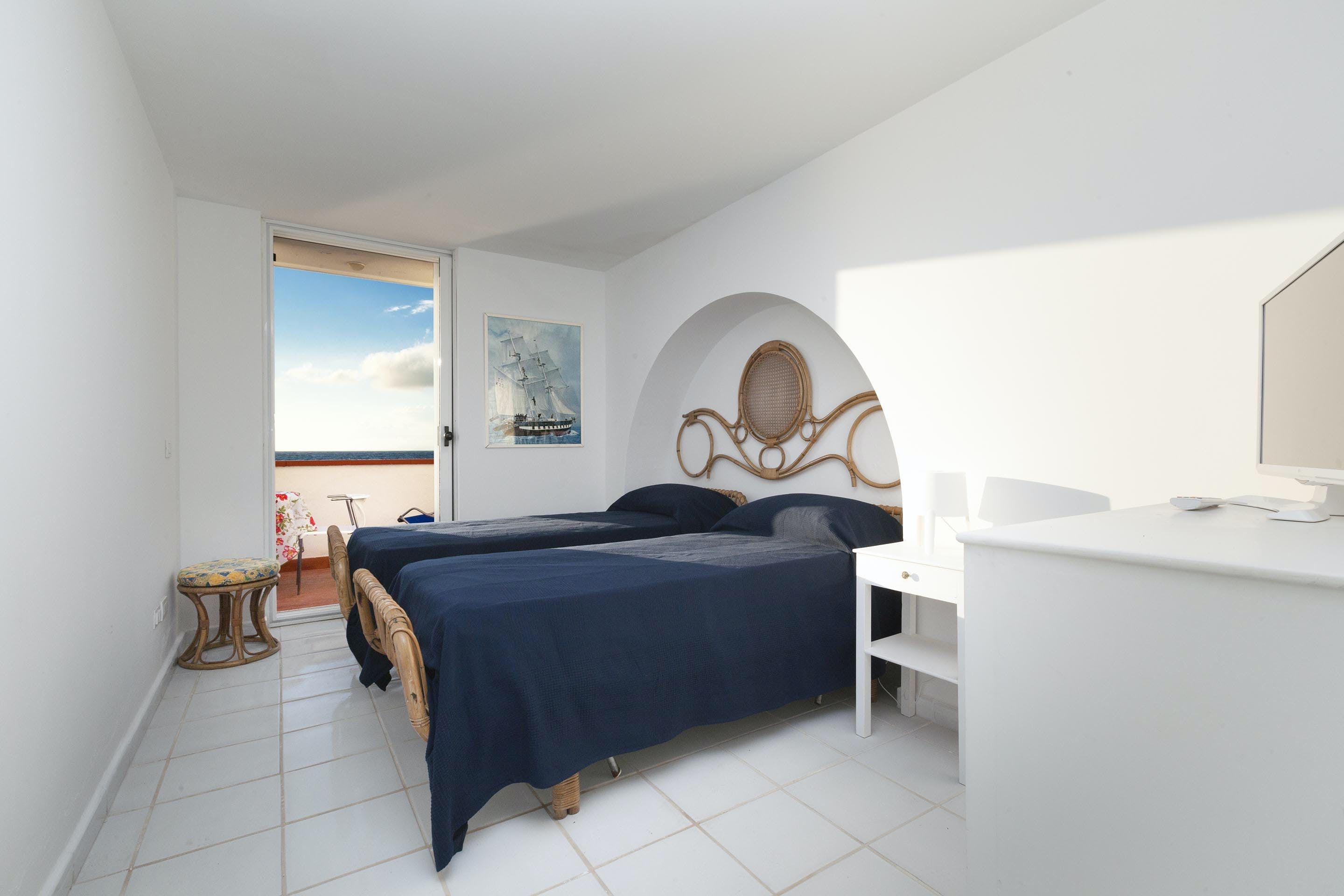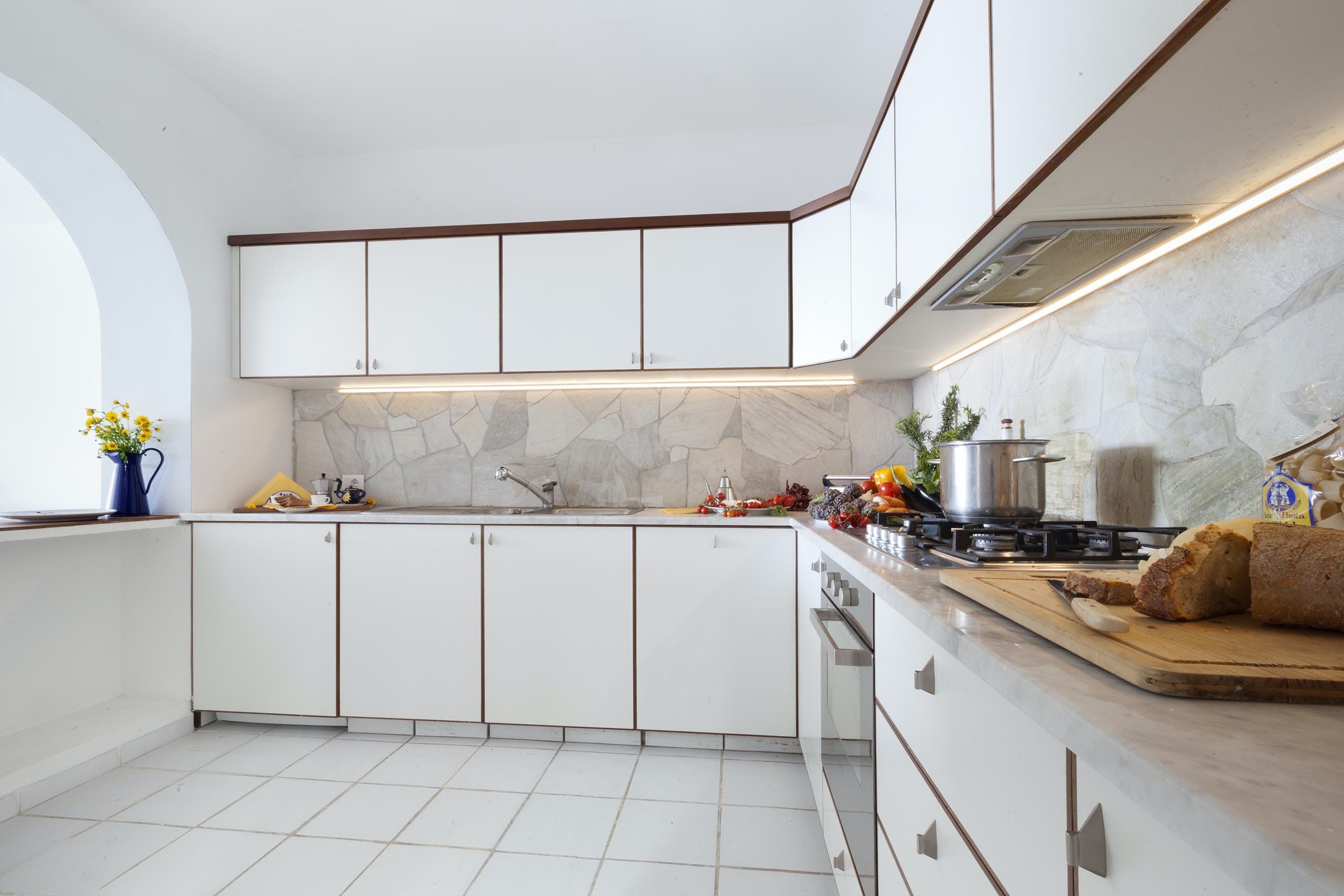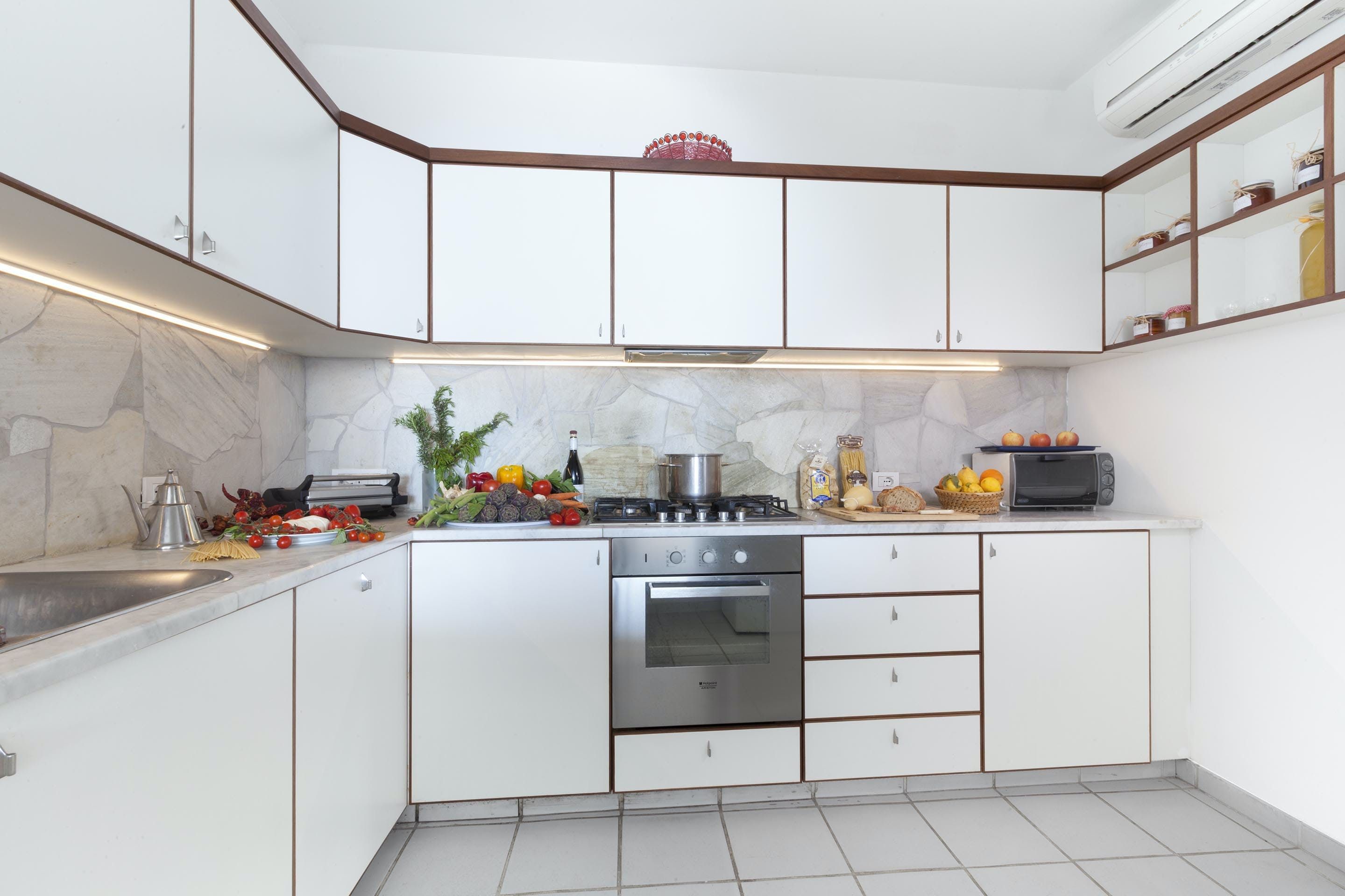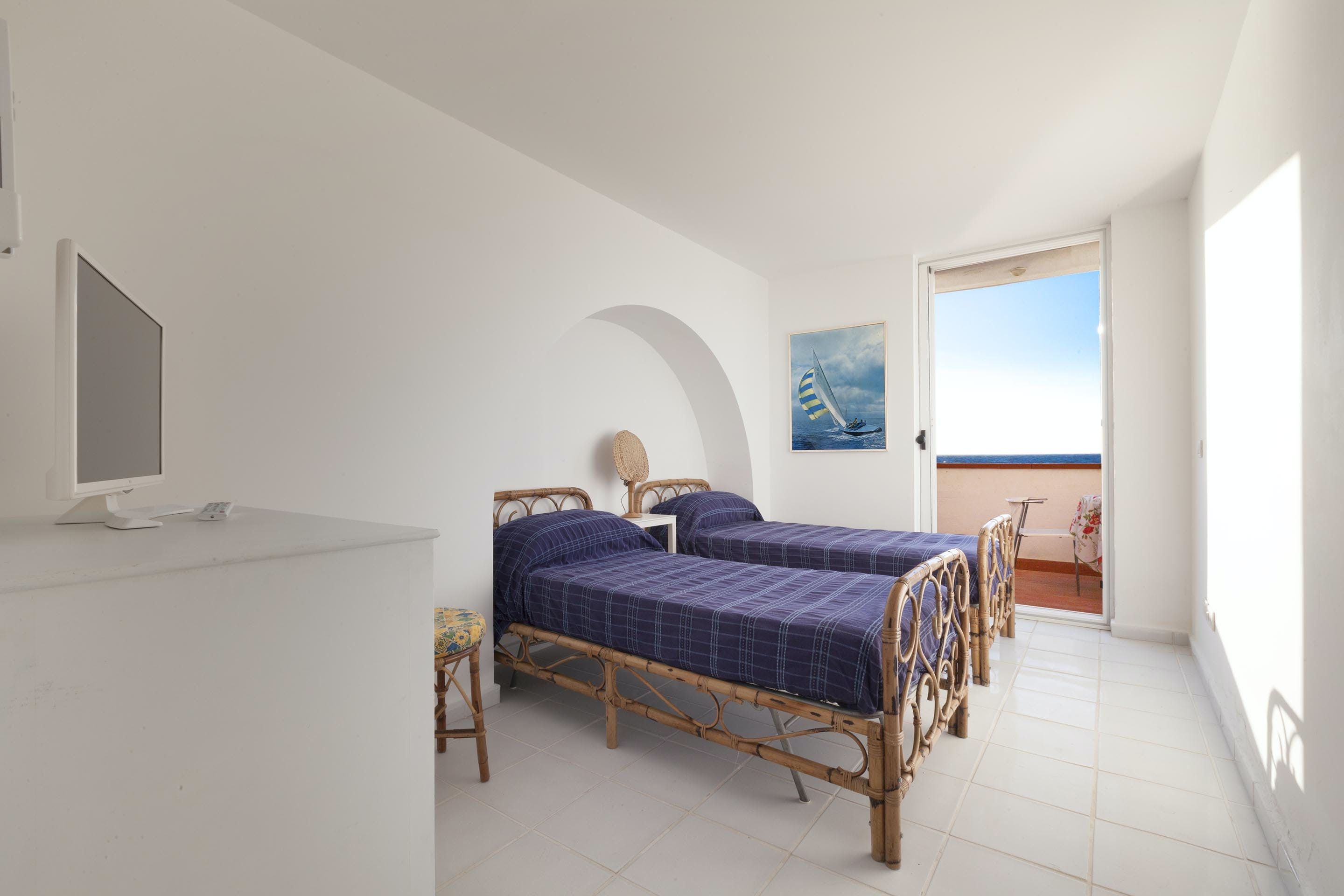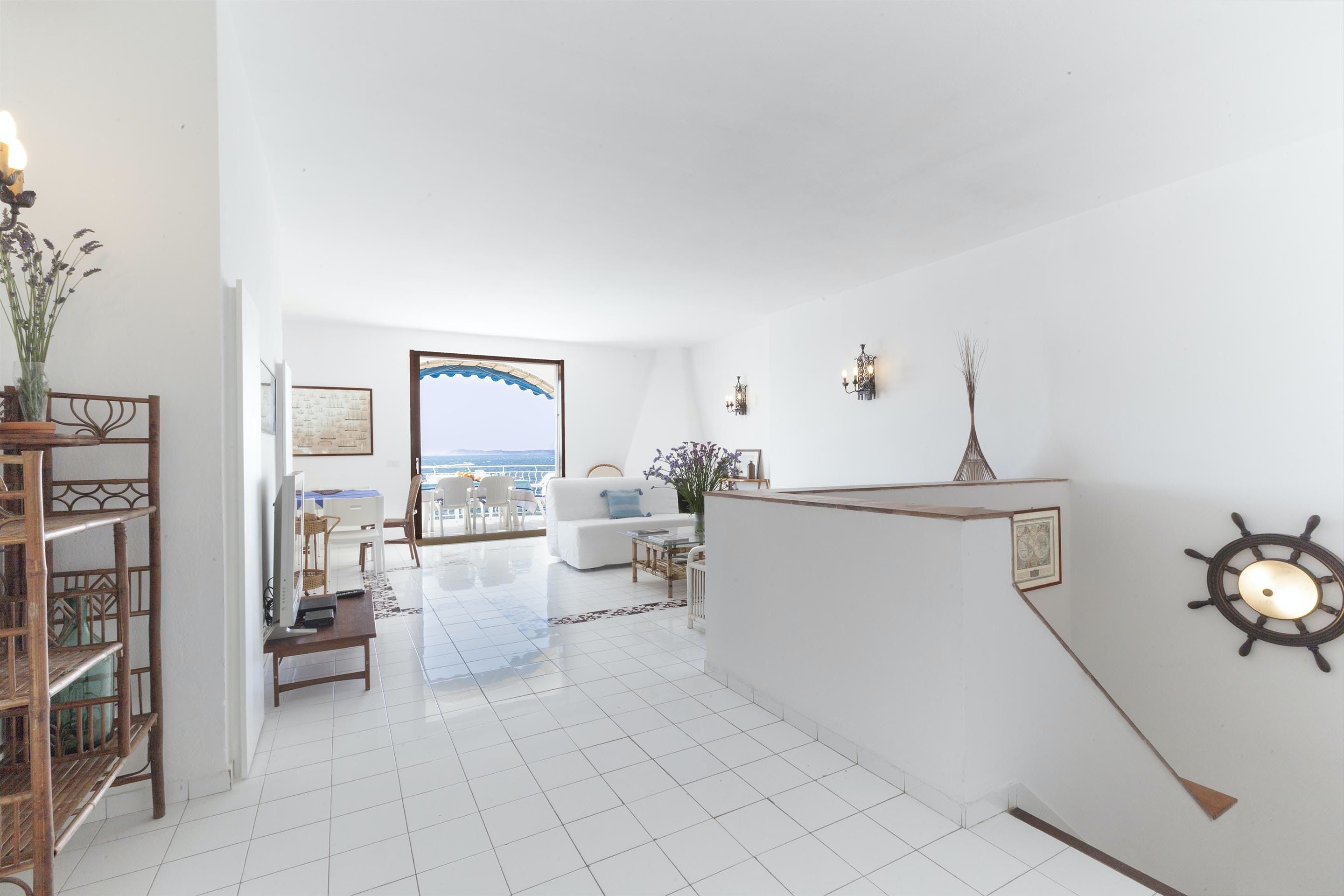 Nestled on the seafront, this home’s traditional interiors may not be everyone’s cup of tea, but its three terraces and sweeping sea views can’t fail to impress. With four bedrooms and bathrooms across three levels, there’s space for everyone to spread out here – and for families, there’s the option of sliding open the interconnecting door in the double bedrooms to create one larger, shared space for four. Choosing between the three sun-drenched terraces could be one of the hardest decisions you have to make, or you may prefer to take the twelve steps down to the sea from the lower level terrace, just the spot to relax with a glass of wine.