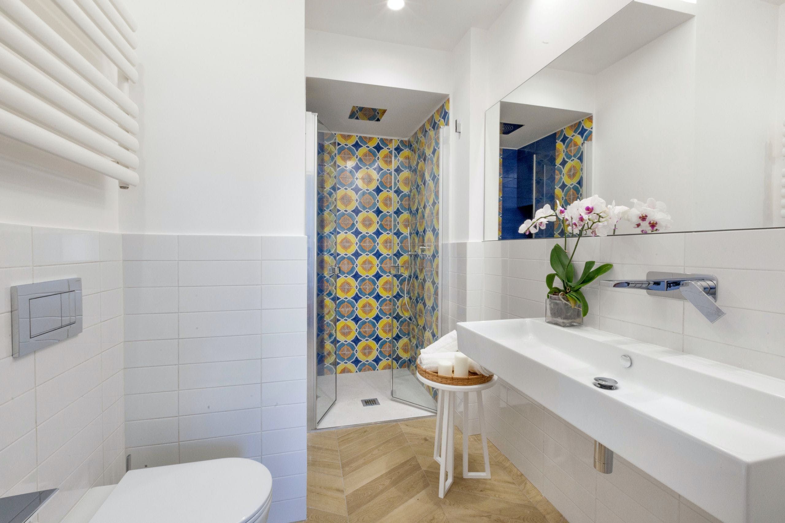 Located in the heart of Sorrento, this city-centre villa is a great find. It has everything you might need, including a spa and gym on the basement level – this home is spread over four floors, but thankfully there’s a lift. You’ll also find a terrace that showcases sea views, and an outdoor patio that’s a wonderful spot for alfresco meals. As well as being close to all the city sights, you’ll also be just 700 metres from pebbly Spiaggia La Marinella and 3 kilometres from the sandy shores of Marina Grande. There’s also a bus stop nearby, so you can easily visit Positano and Amalfi.