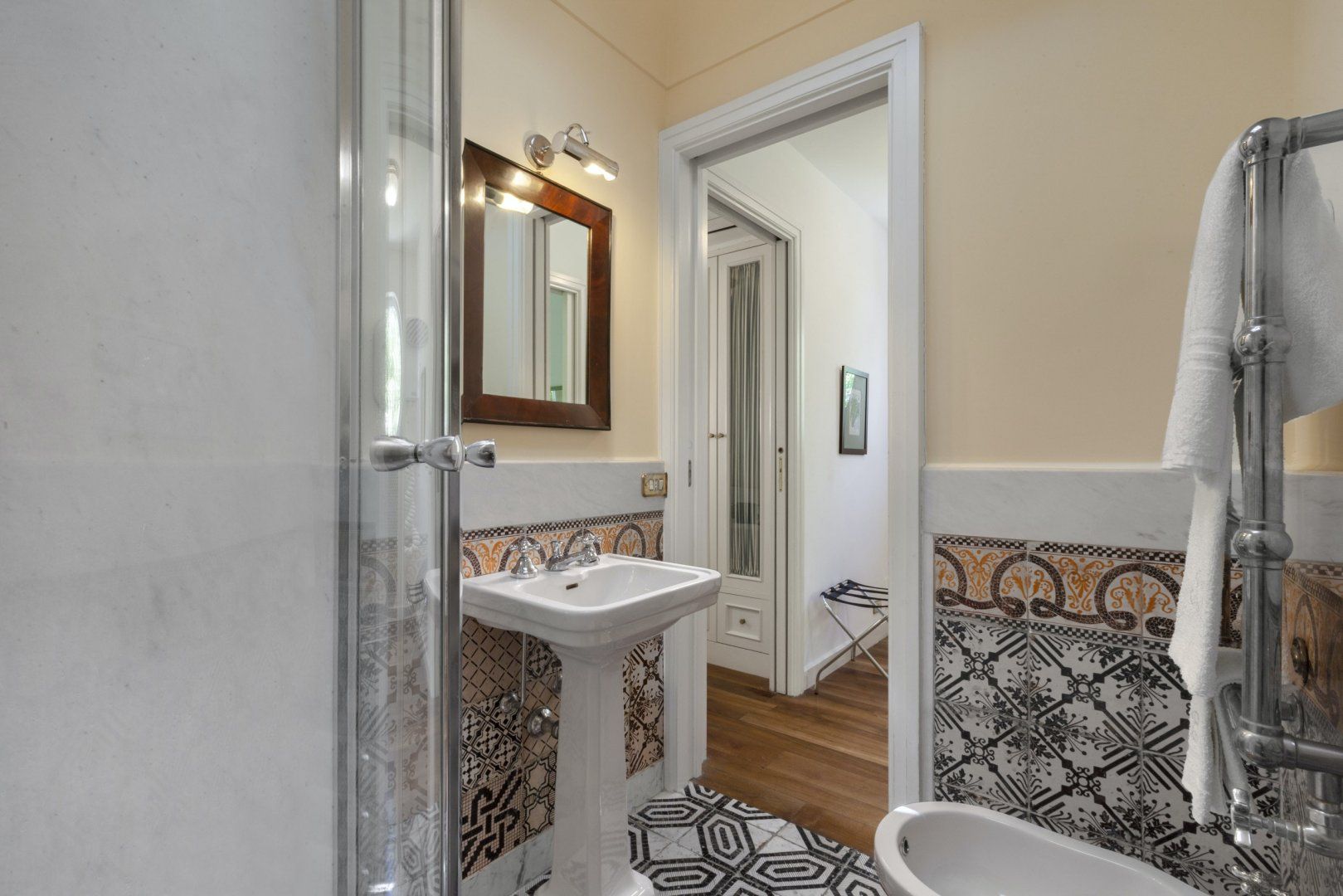 We love the kitchen, with ornate tiling and gorgeous marble surfaces that make it feel inviting for cooking up delicious Italian salads and pasta dishes. The lounge is lovely too, featuring a wonderful fireplace for cosying up next to on colder winter evenings. Each bedroom features its own en-suite, so all guests can feel like a VIP when they stay here.