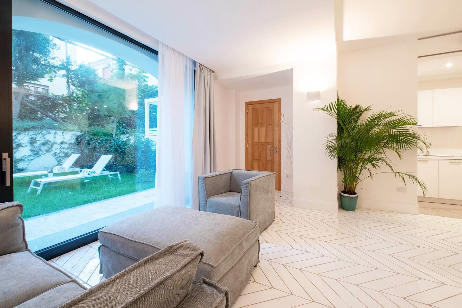 This apartment is housed in a villa in the town of Sant’Agnello, on the border of Sorrento. You’ll be a short walk from the beach and the town square and well-placed for exploring the Sorrento coast. The private garden with a small heated pool and sunloungers is the perfect spot for soaking up the sun. The apartment is spread over two floors so there's plenty of room. Bedroom one opens straight into the garden, while bedrooms two and three have small balconies.
