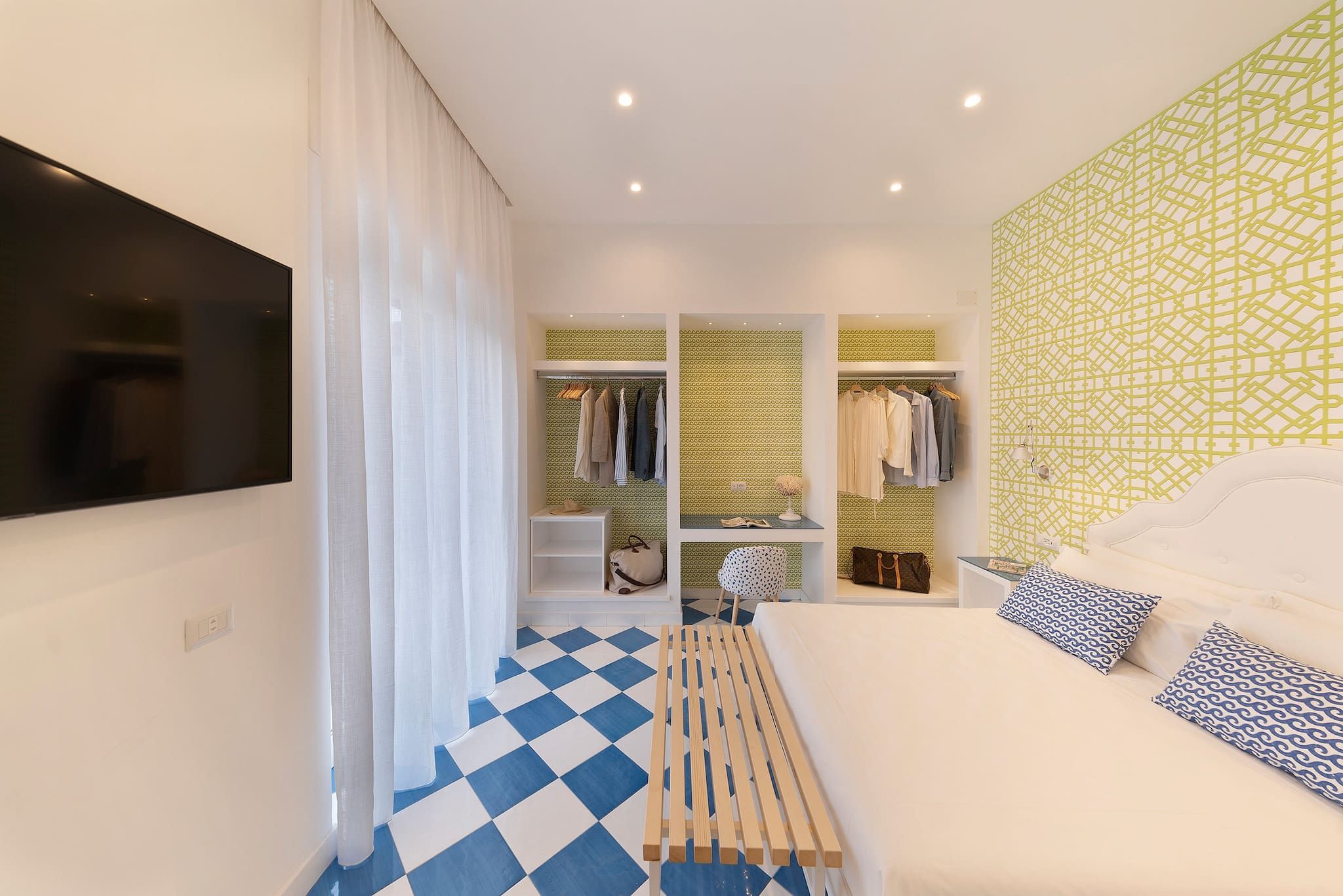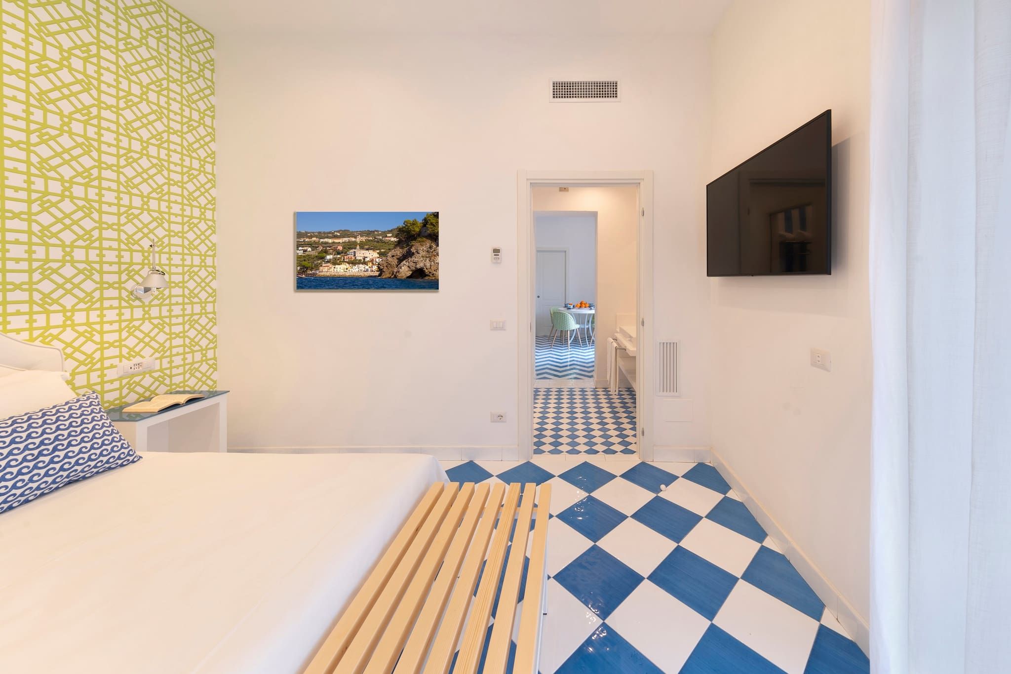 We don't know what we love more – this apartment's colourful design or its spot on the bustling Corso Italia. All the must-haves and must-sees are within easy reach here, from restaurants and landmarks like Piazza Tasso to Sorrento's picturesque port. Inside, the living area features quirky chevron floors and lime and blue tiles inspired by the sea. A sofa bed can accommodate a fifth guest, but we think this pad is best for four. It's also on the second floor, so expect to climb a few stairs – all worth it for the central location.