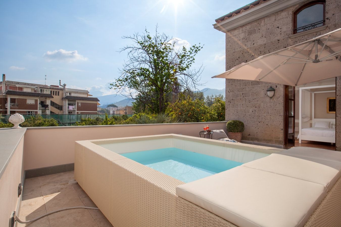 Tucked away in the centre of Sorrento, this contemporary villa is an ideal base for a family or group of friends on an Italian getaway. Set across four floors, there’s plenty of space for everyone to spread out here and enjoy some quiet time, or come together as a group to socialise. While the private pool isn’t full-sized, you can still enjoy a dip to freshen up in the heat of the day. Locally, you’re surrounded by authentic eateries and shops and a mere five-minute walk from Piazza Tasso, so you’ll never struggle to occupy your time.