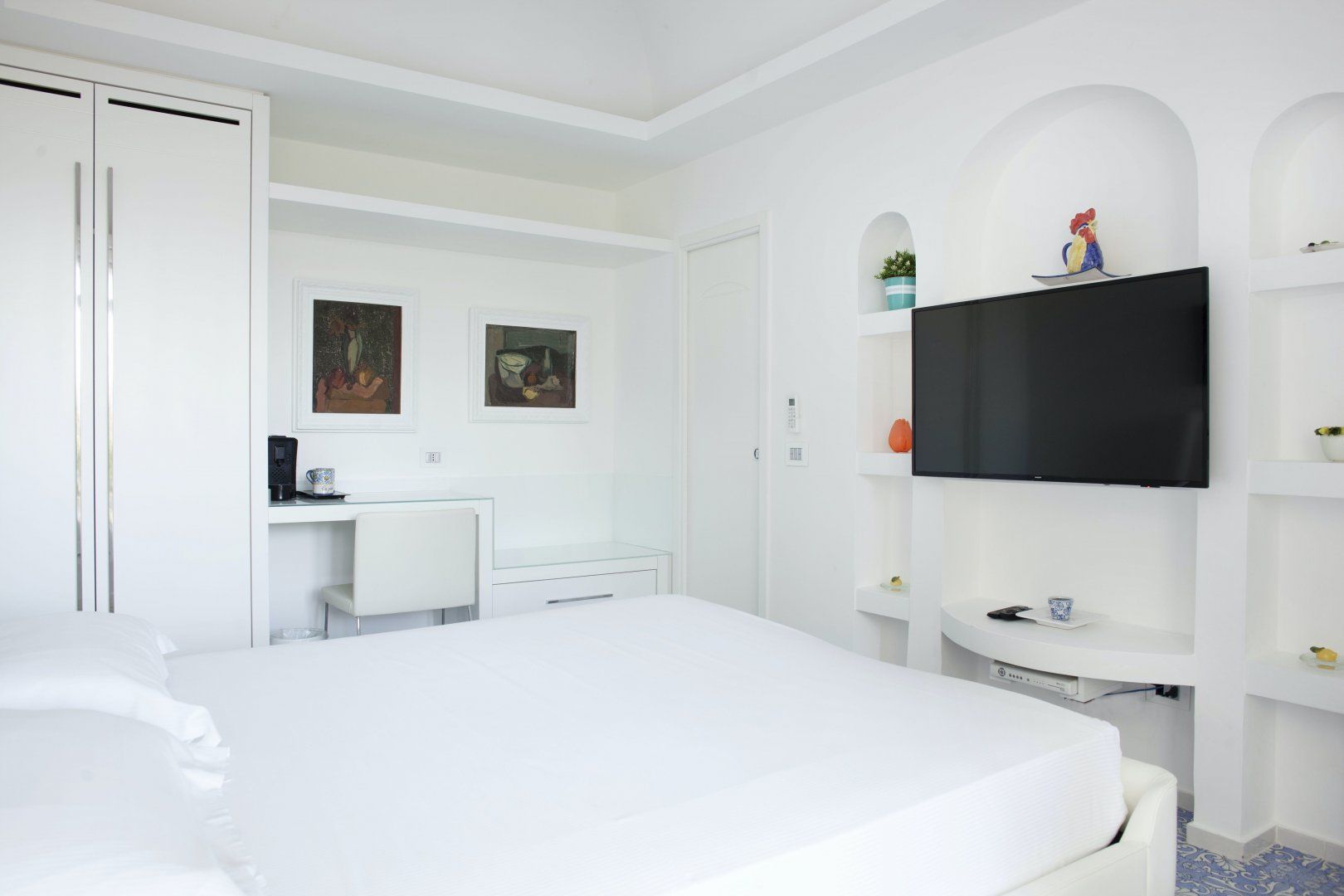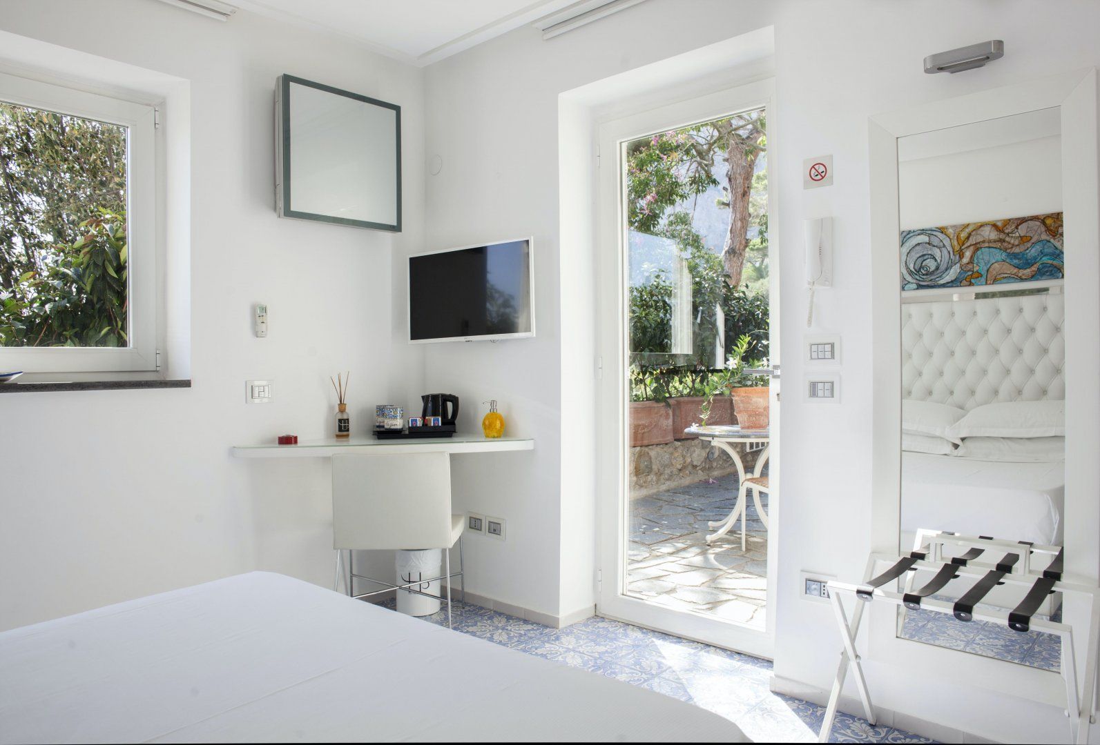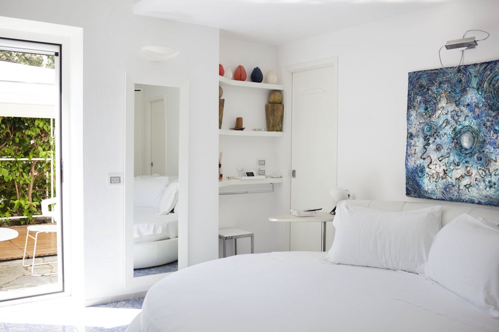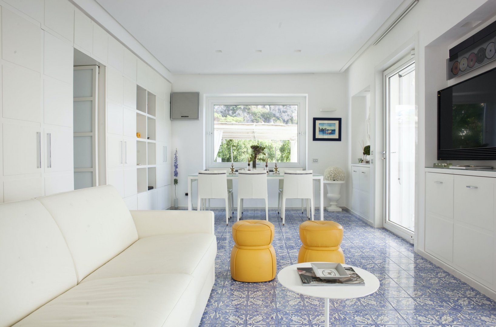 You’ll find this dreamy holiday home in Marina Piccola, one of the most charming parts of Capri. You can easily walk to the beach and to restaurants, making it a convenient base. Best of all, its lovely location means that you can enjoy wonderful sea views, whether you’re dining alfresco or swimming in the private pool. Some guests will be in the main villa while others will be sleeping in separate guest houses, which is an excellent option for those seeking a touch more privacy.