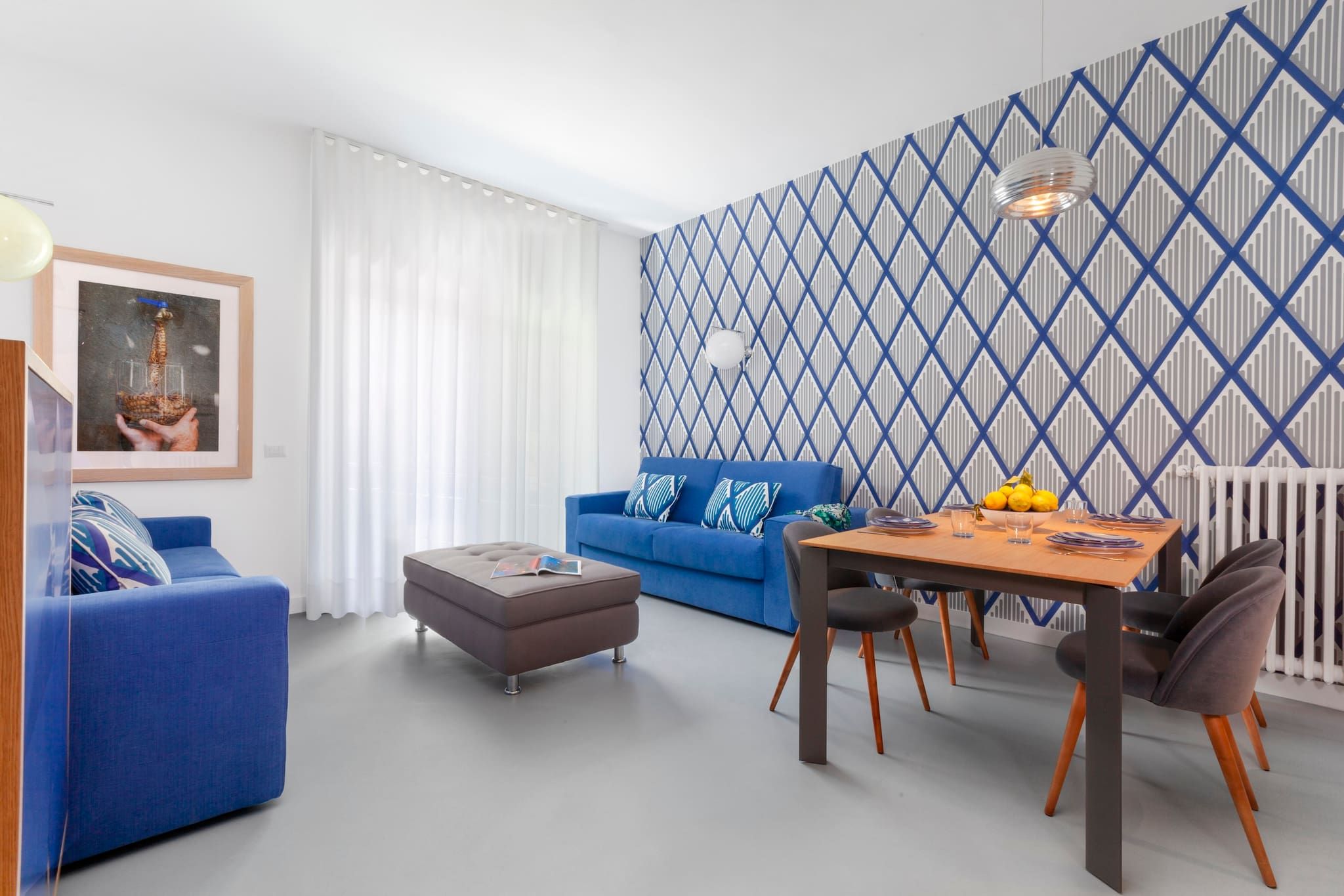 This apartment offers a colourful haven in the heart of Sorrento. Featuring eco-friendly elements and hand-made furnishings, every detail has been considered to bring ease to your city stay. There is a little balcony overlooking the street and the main bedroom has a Jacuzzi bath with hydromassage – providing the perfect spot to end the day. There are also two sofa beds in the living area, making this a great option for those seeking flexible sleeping arrangements. Outside, you’ll be perfectly placed for adventures across the city with Piazza Tasso just five-minutes away, and the nearest beach just a ten-minute stroll away.