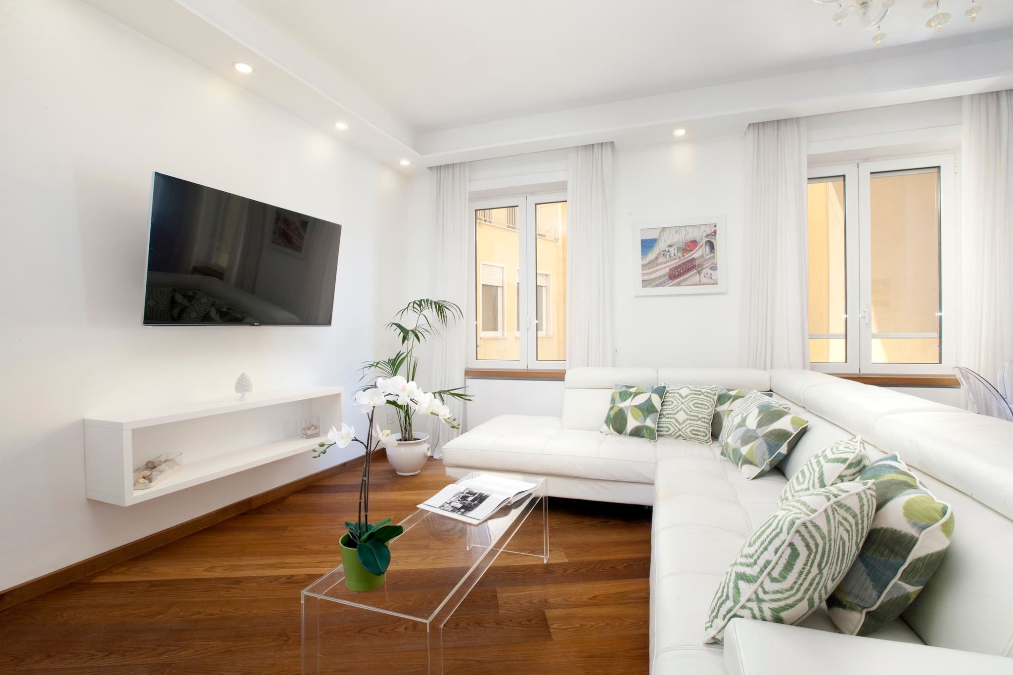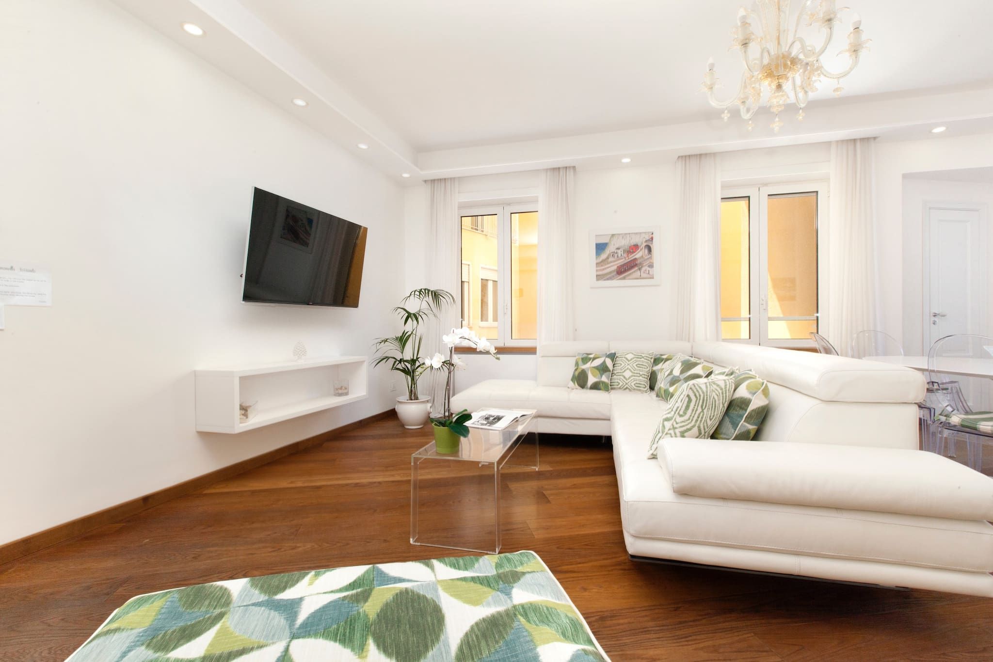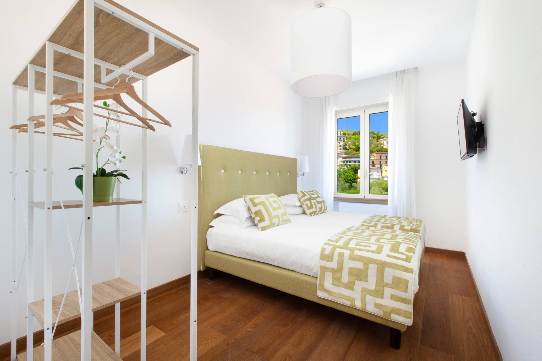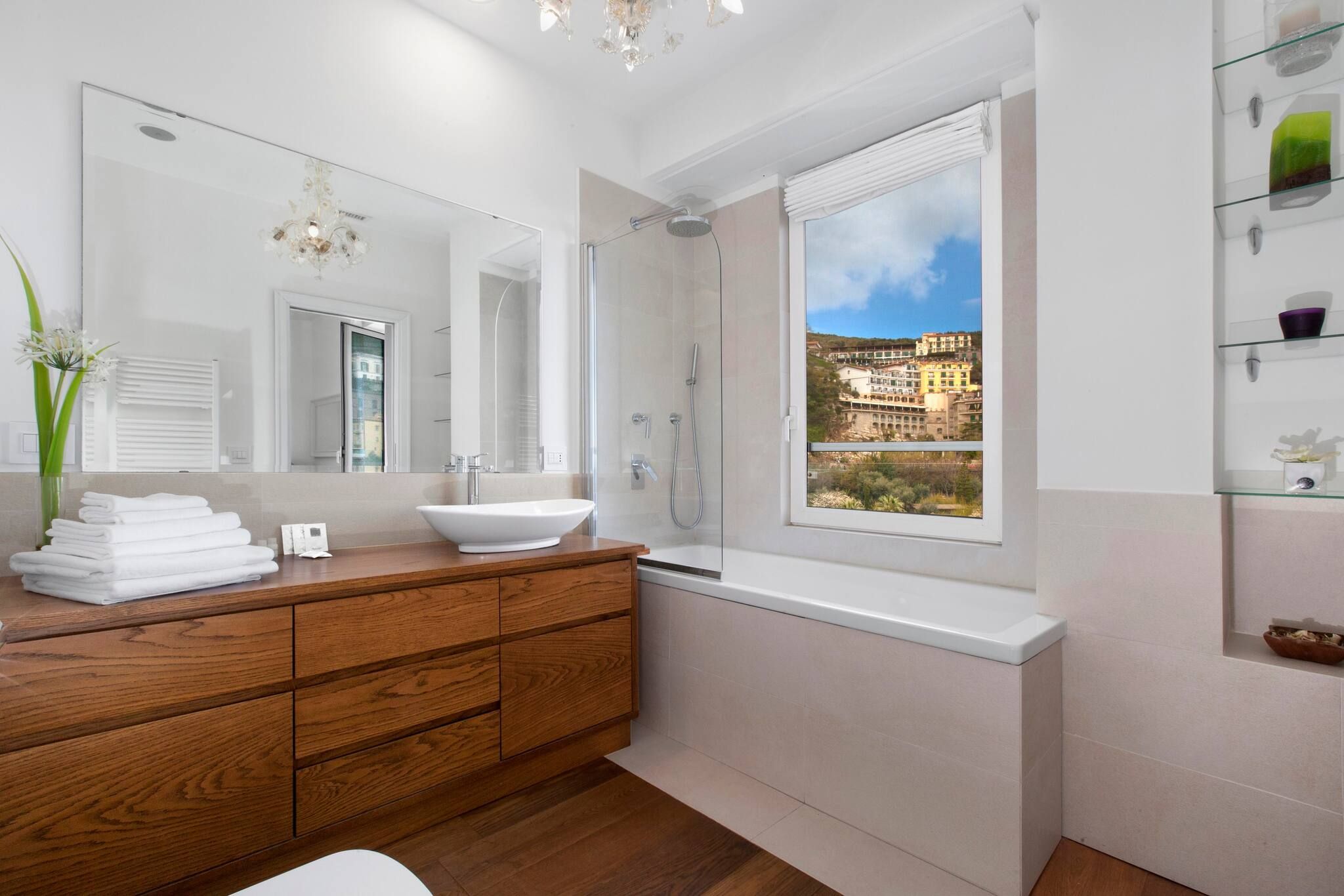 Located in the historic heart of Sorrento, this apartment delivers a fantastic location. You can stroll to restaurants, shops and iconic sights in the old town. It’s also just a five-minute walk to the nearest beach, while the train and bus station is just fifteen-minute away. The apartment boasts a private terrace and two of the bedrooms have access to a balcony. There is also an additional single sofa bed in the main bedroom for one guest, and plenty of socialising space across the living and dining room.