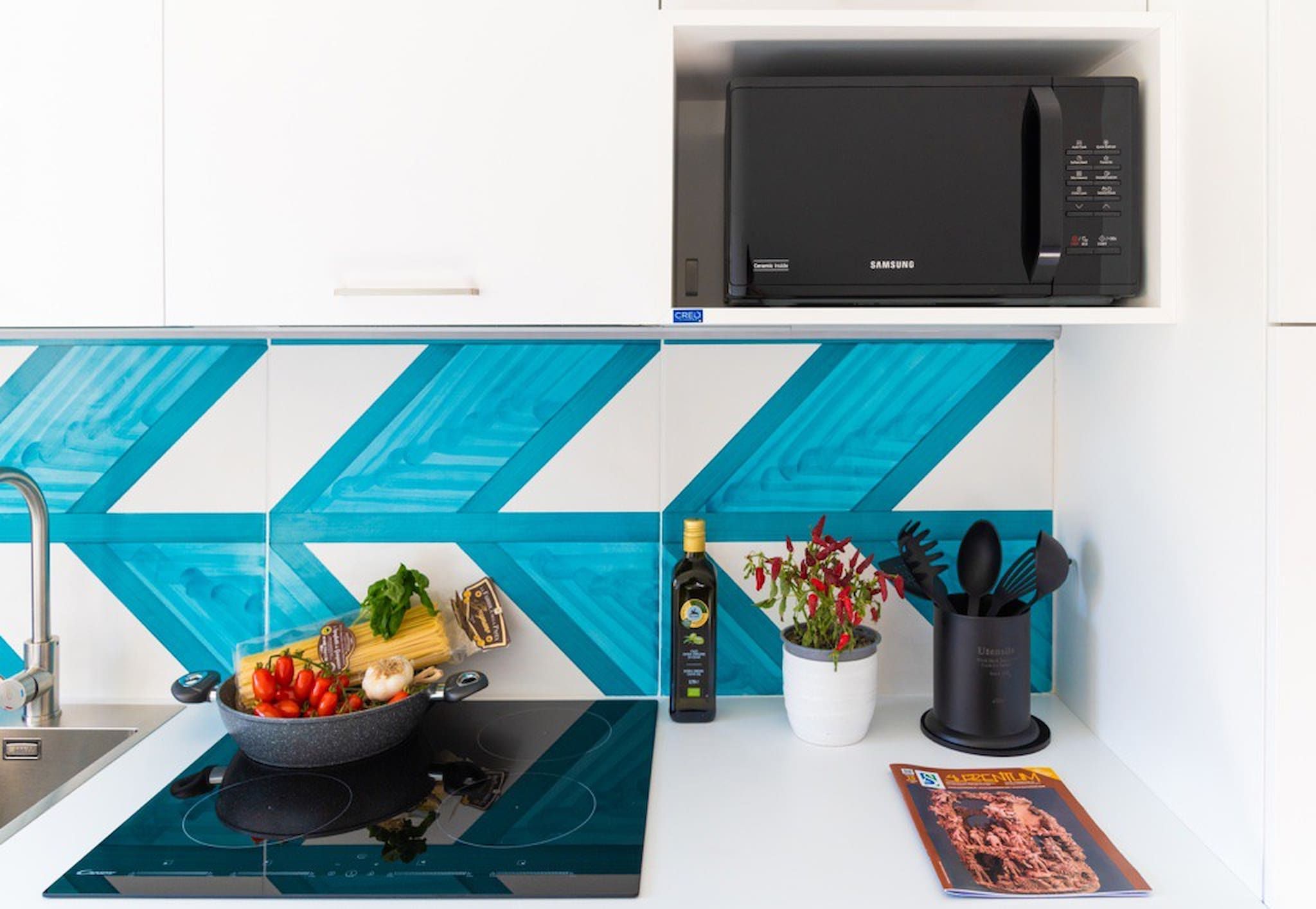 *There's no conventional oven here, though there is a microwave and stove. We think the kitchen is better suited to prepping lighter bites than large meals.