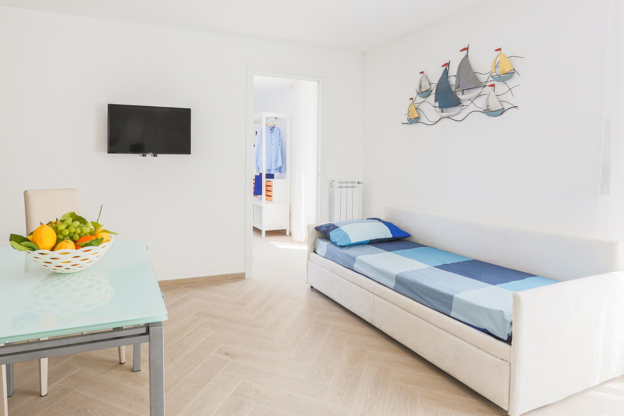 The wrap-around panoramic terrace at this apartment has stunning views of Marina Grande and the Tyrrhenian Sea. This home is on the third floor with no lift, but your host can help you with your luggage. Inside, the open-plan living space is light and airy, but two people will be sleeping on a sofa bed here at full capacity. The address is fantastic – this apartment is in one of the most exclusive areas on the Sorrento Coast. There are bars and restaurants on your doorstep or explore the city of Sorrento, a short walk or ride away.