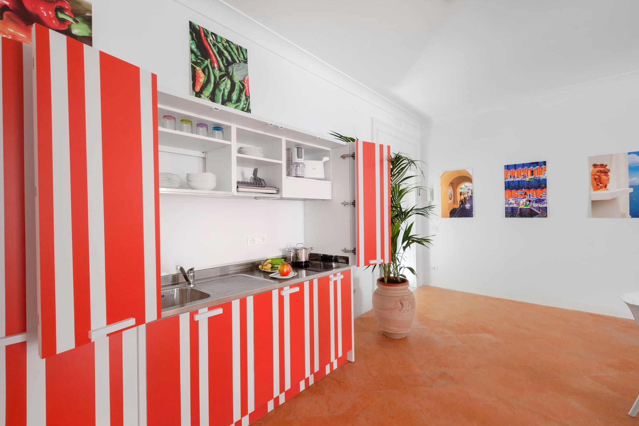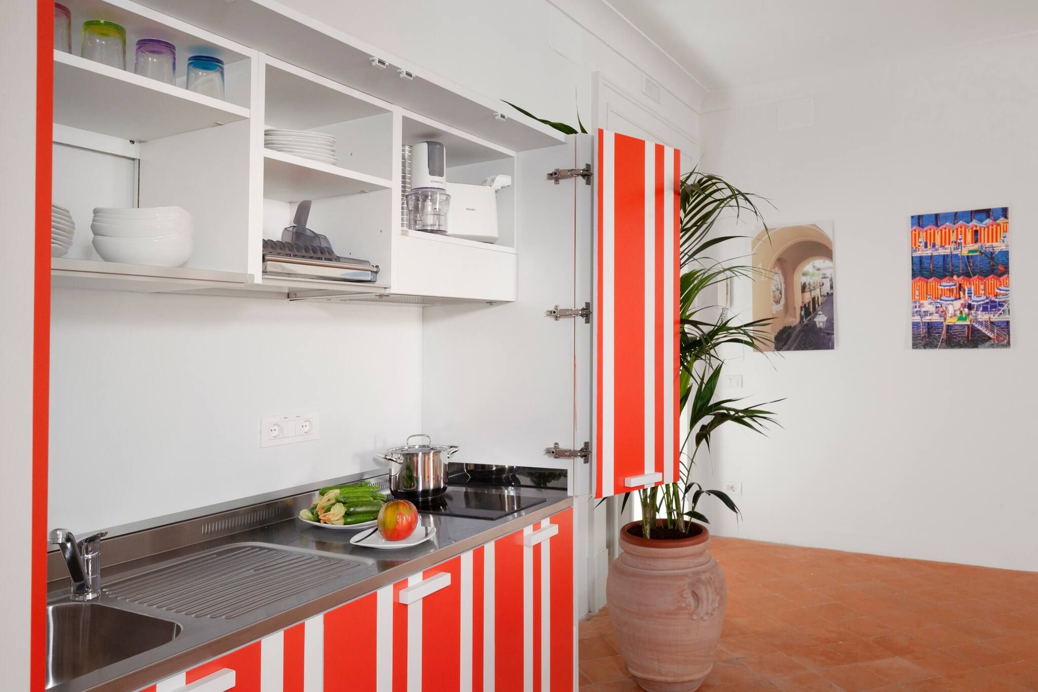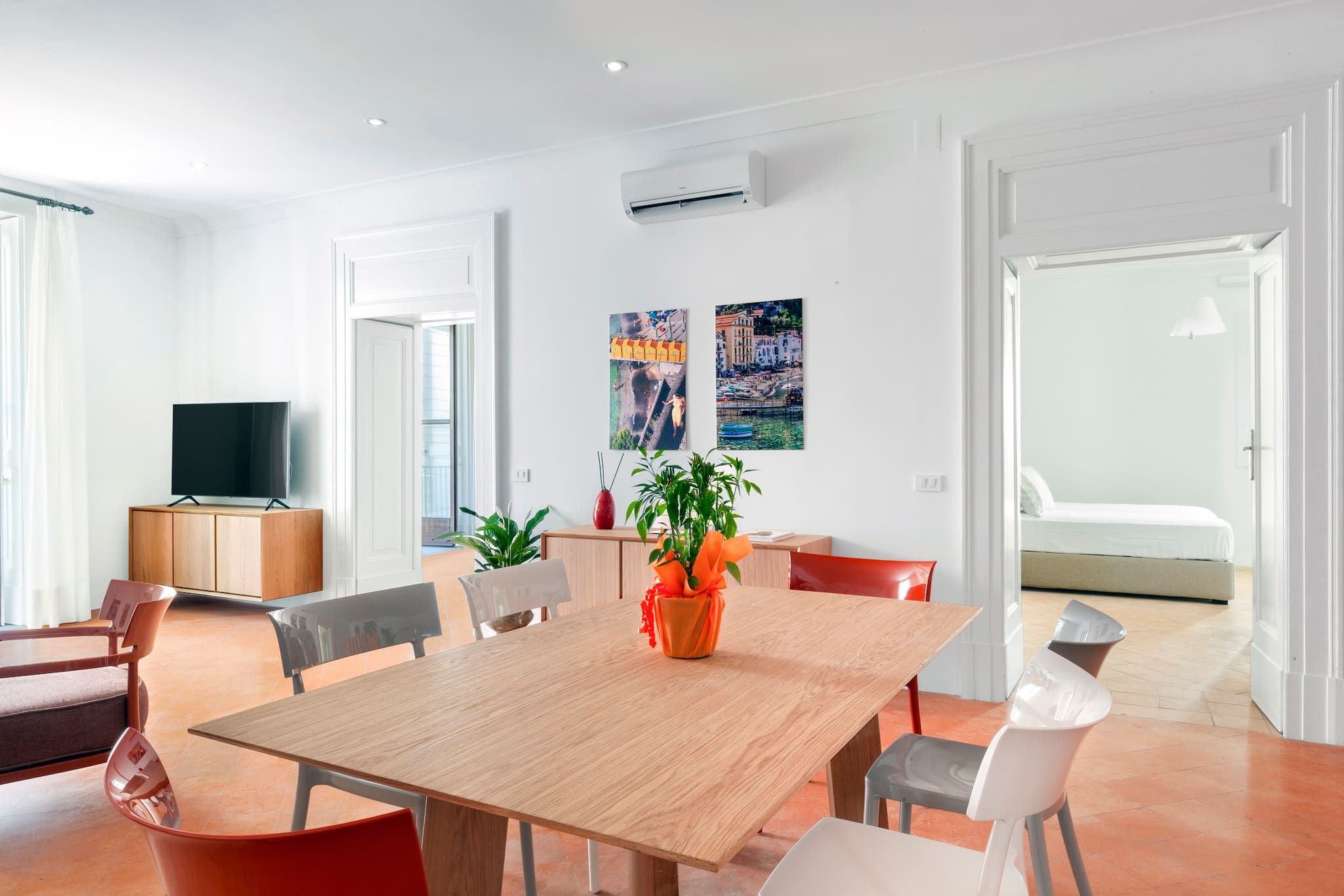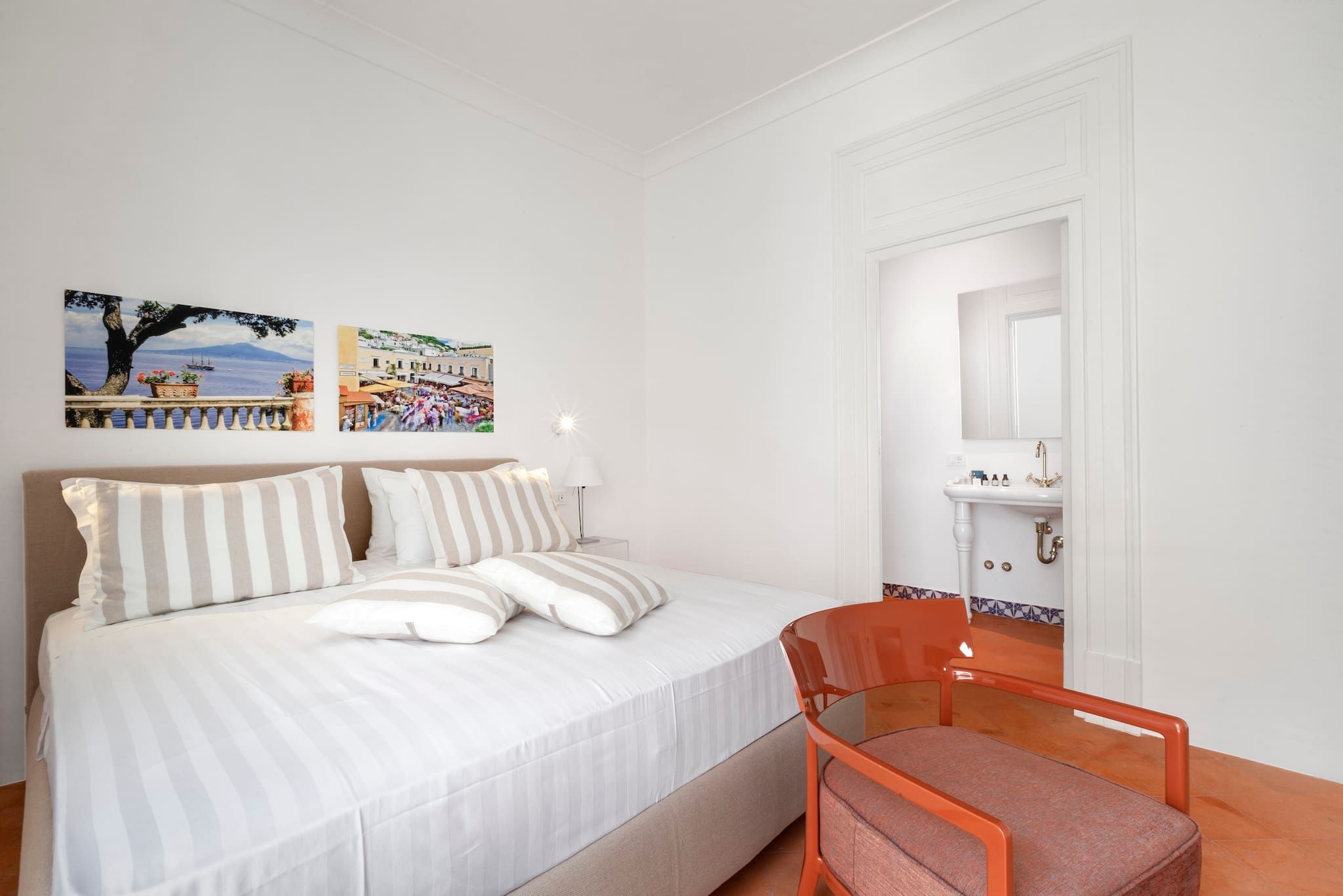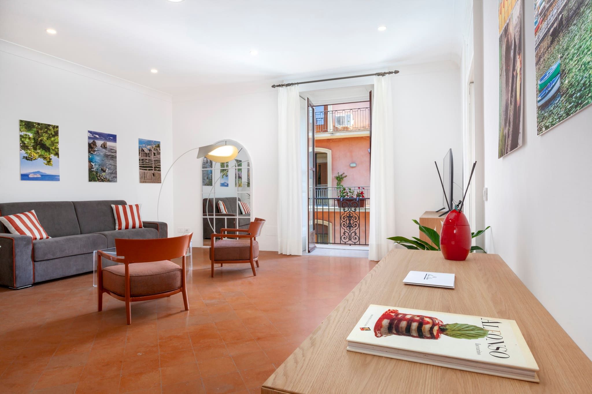 Overlooking Corso Italia, this home brings ease and warmth to the heart of Sorrento. It’s worth noting the apartment is on the second floor with no lift access, but once inside you’ll find everything you could need to settle in and unwind. There is a sofa bed for two guests in the living area and both of the bedrooms have en-suite bathrooms – a adding a wonderful sense of privacy. Outside, you can stroll through the historic streets to restaurants, cafes and shops. The nearest beach is just five-minutes away, and you’ll find the nearest bus stop is right next to the building.
