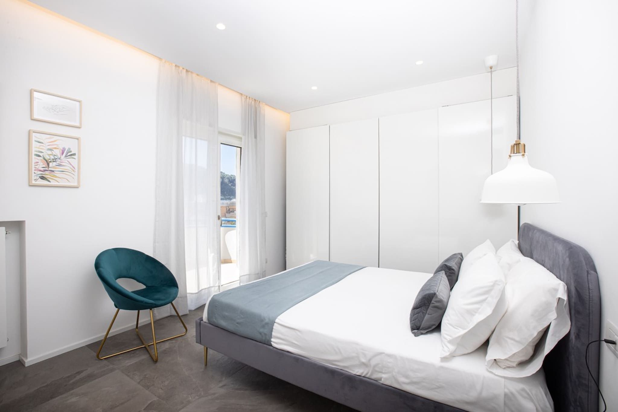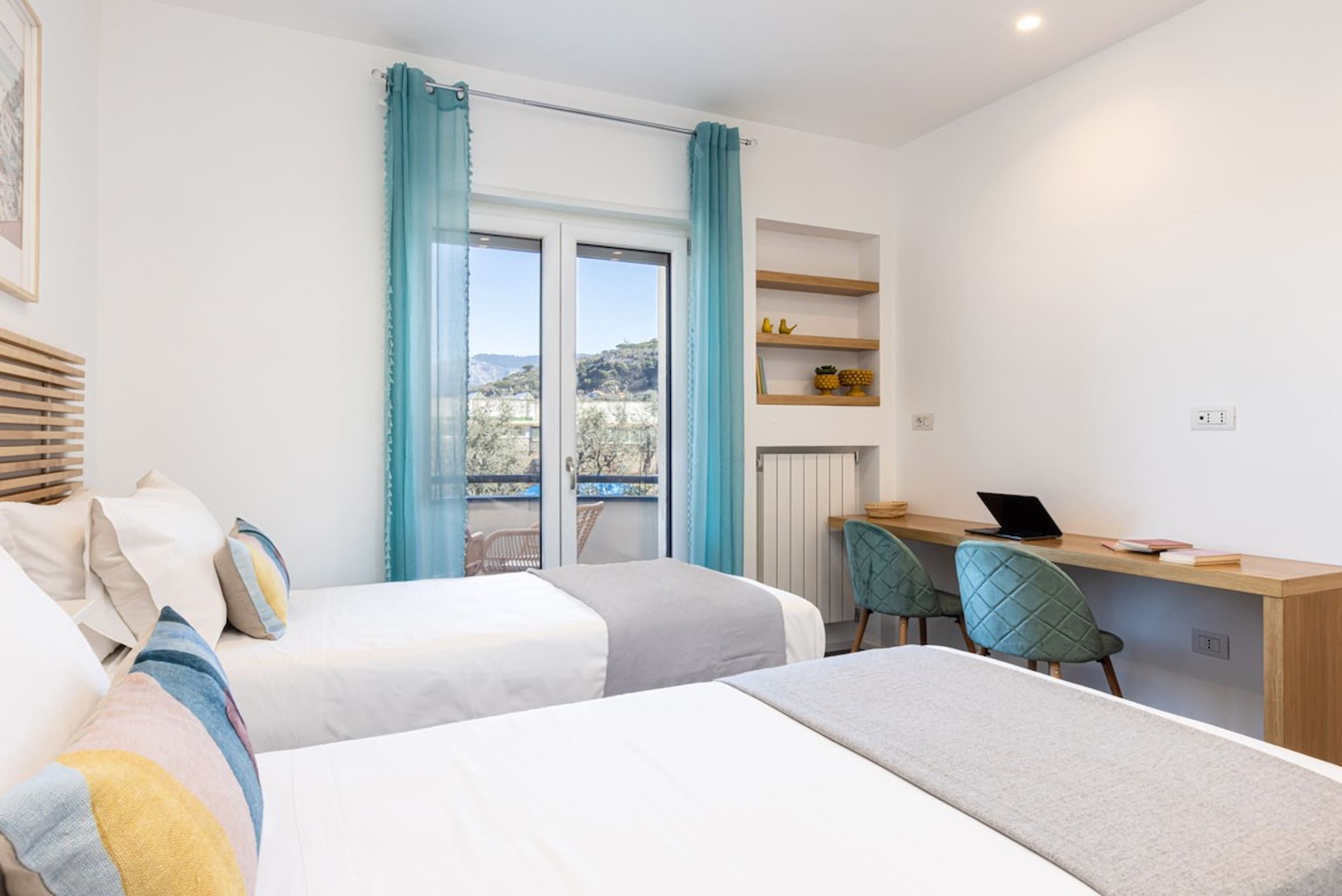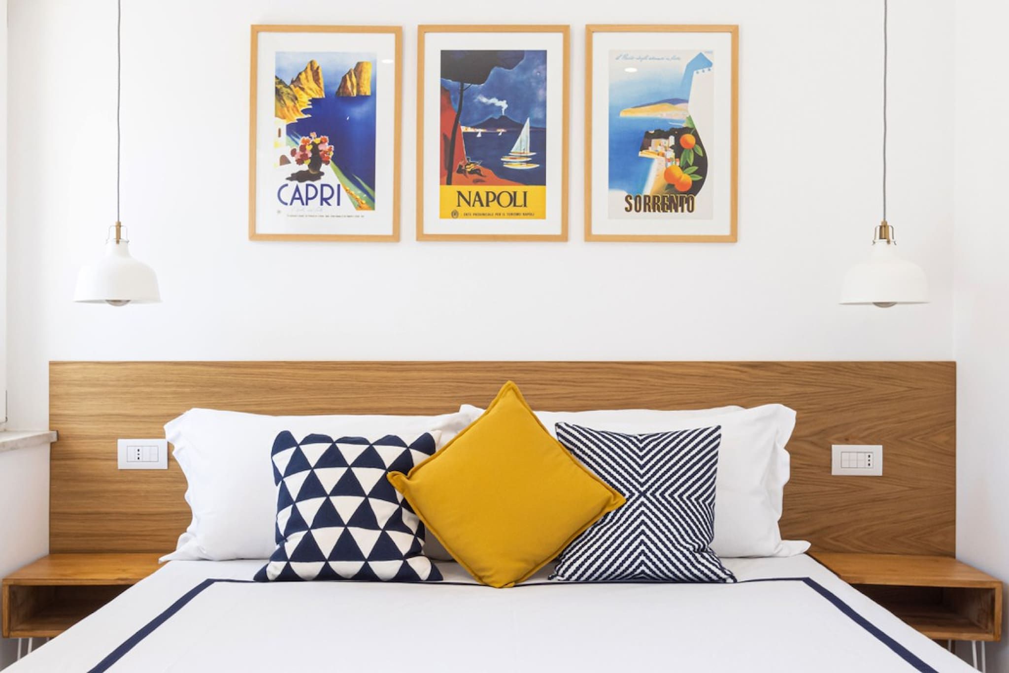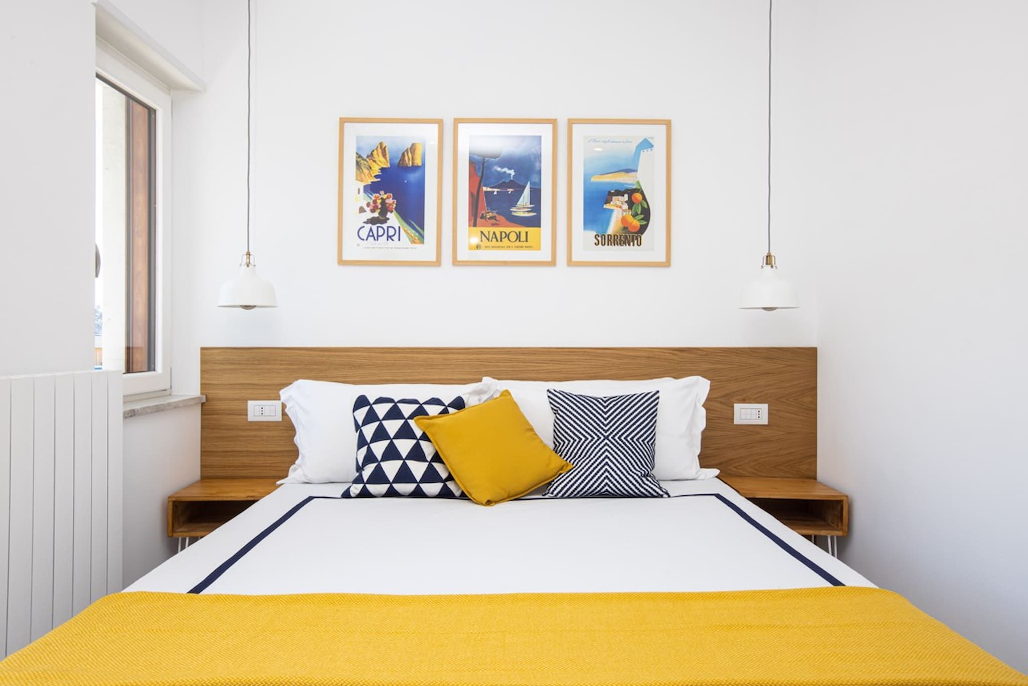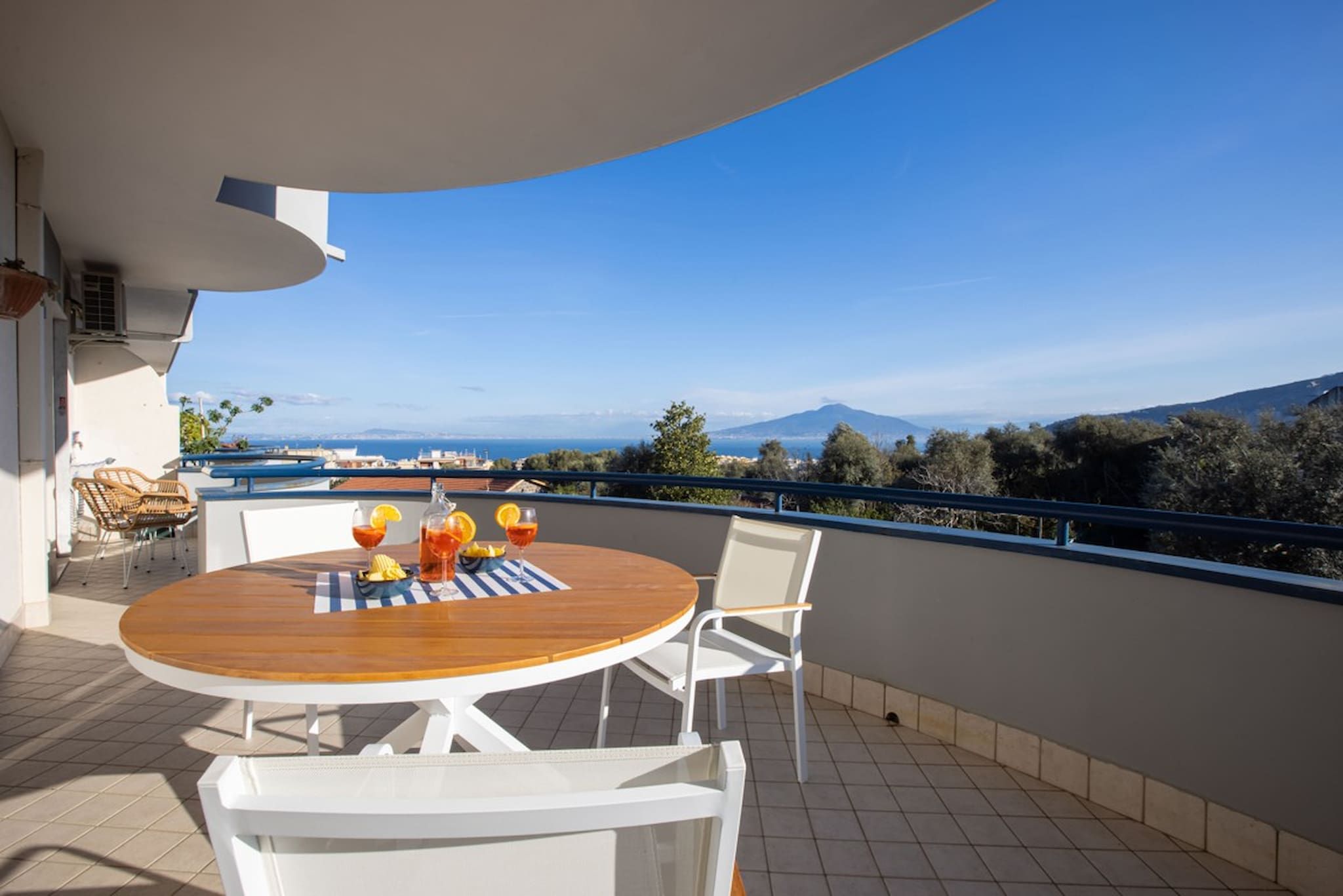 Sit back, relax, and admire the views from this Sorrento apartment. Sweeping panoramas of the sea and Mount Vesuvius await on the balcony – we can't think of a better backdrop for alfresco drinks. Inside, the living space is just as sun-kissed as the exterior, with each bedroom offering access to the terrace. The third also has convient zip-and-link beds to suit both friends and families. Location-wise, you're a bit further from the centre here but still within easy reach of shops, restaurants, and landmarks. It's about a fifteen-minute walk to Corso Italia and twenty to the harbour – with that in mind, we suggest packing comfortable shoes.