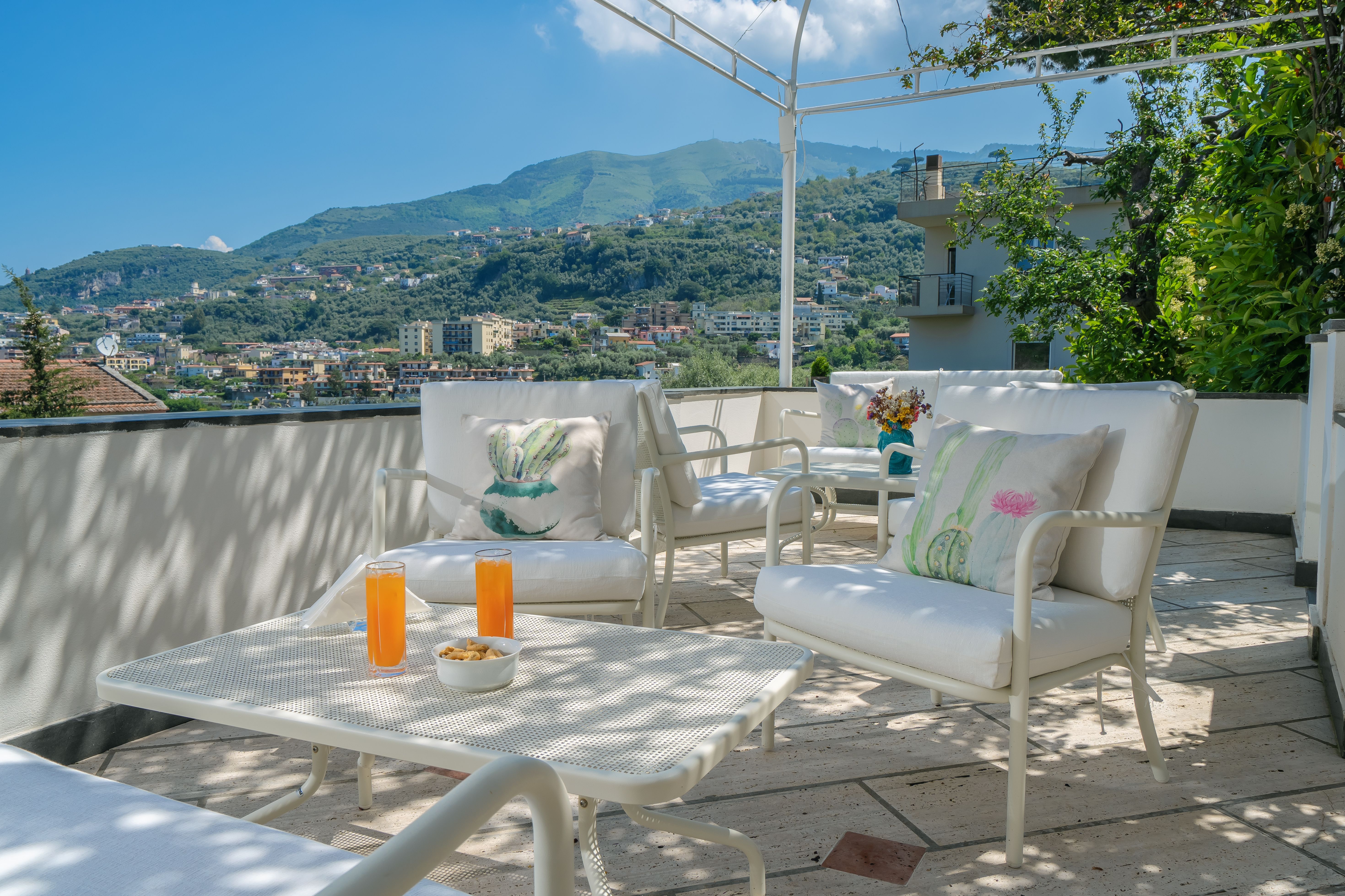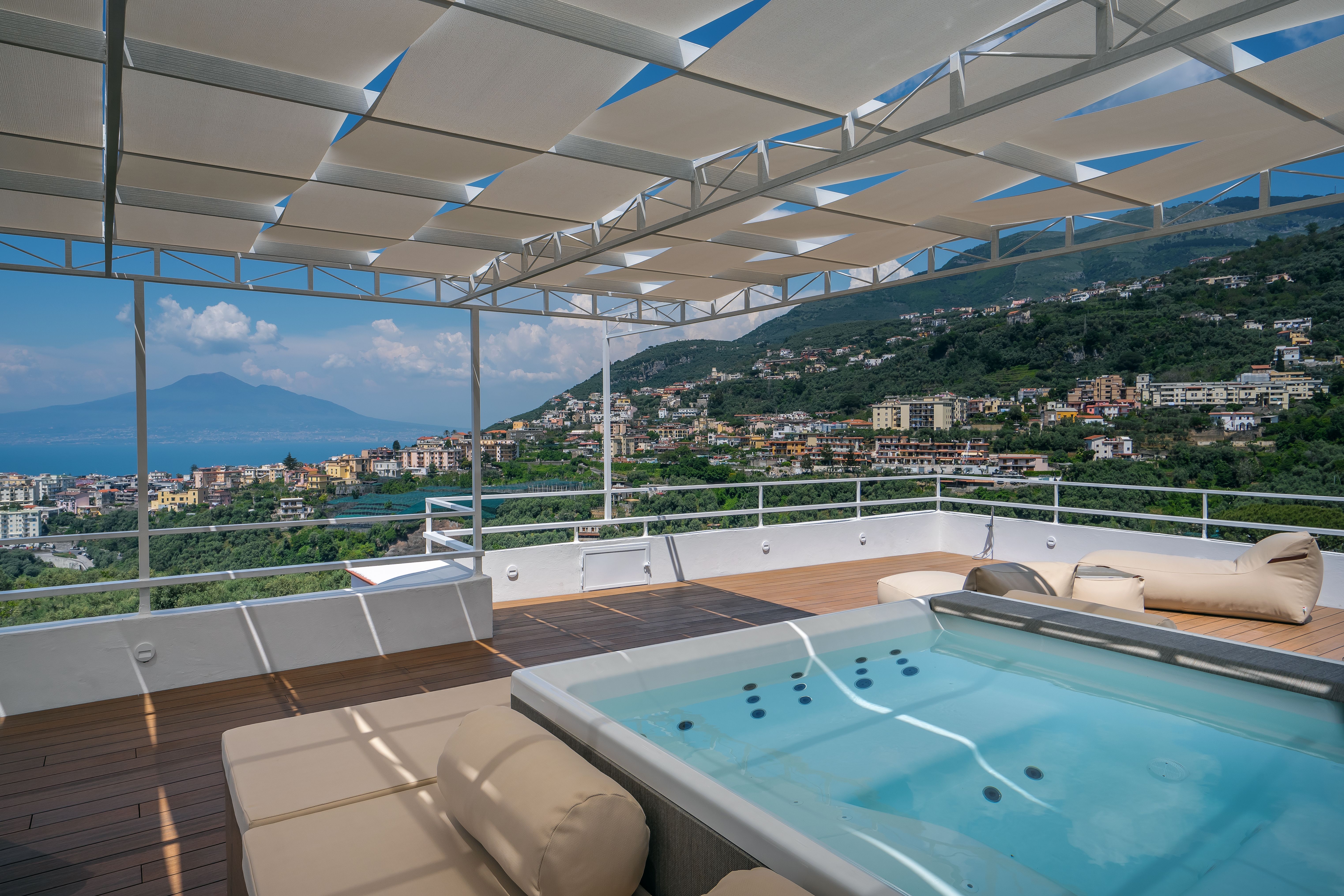 This magnificent Italian villa is tucked into the beautiful coastal countryside. With exclusive views of its beautiful mountainous surroundings and the gorgeous private garden and pool, staying here is a real treat. Marble floors and an exquisite collection of artwork sets a luxurious tone. There is a sleek fully-equipped kitchen, as well as wonderful dining spaces including an expansive conservatory with breathtaking views. There are four bedrooms, each with deluxe queen-sized beds and elegant en-suite bathrooms. The villa’s garden includes an opulent swimming pool surrounded by lounging deck chairs, multiple loungey spaces and a shaded dining area. Located just a ten-minute drive away from the coast, it's an ideal spot to discover the awe-inspiring beauty of the southern coast. Head over to the sought-after Lido Da Vittorio for a laid-back day in the sun, or if you're feeling adventurous, go kayaking or paddle boarding.