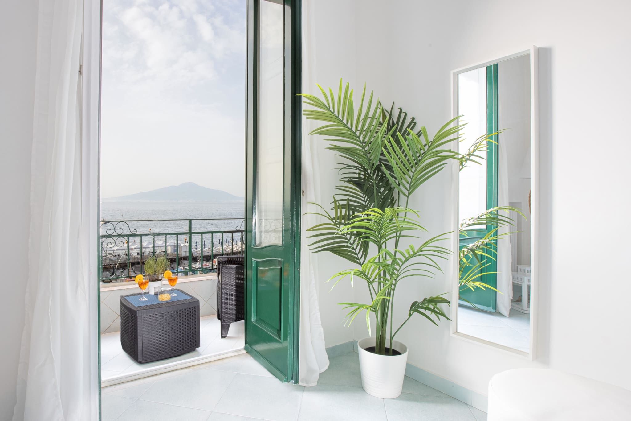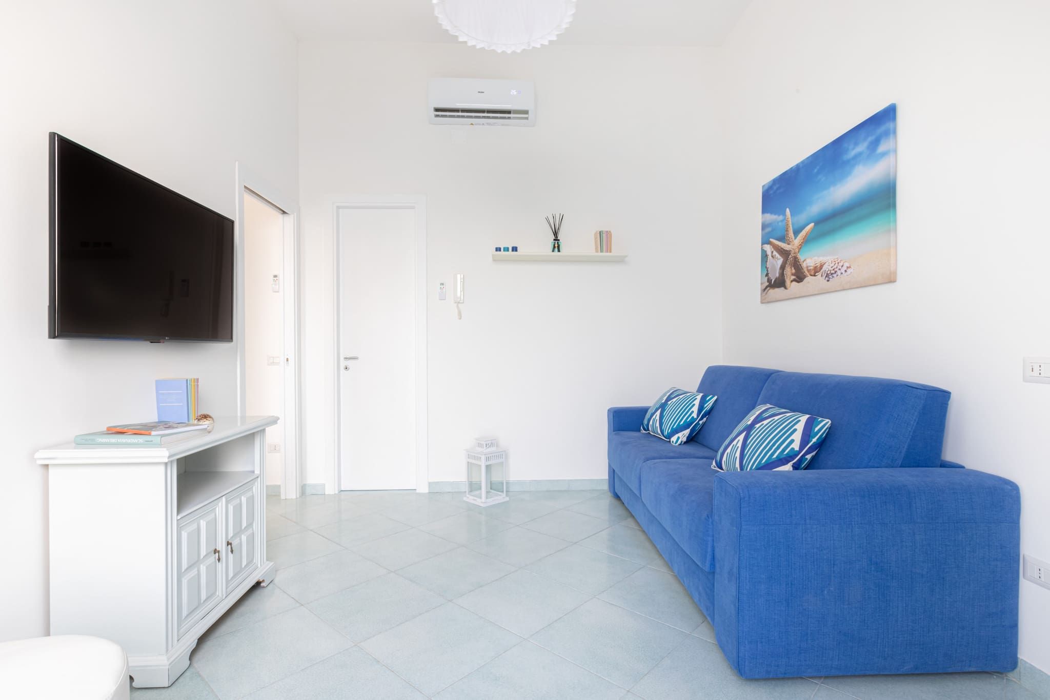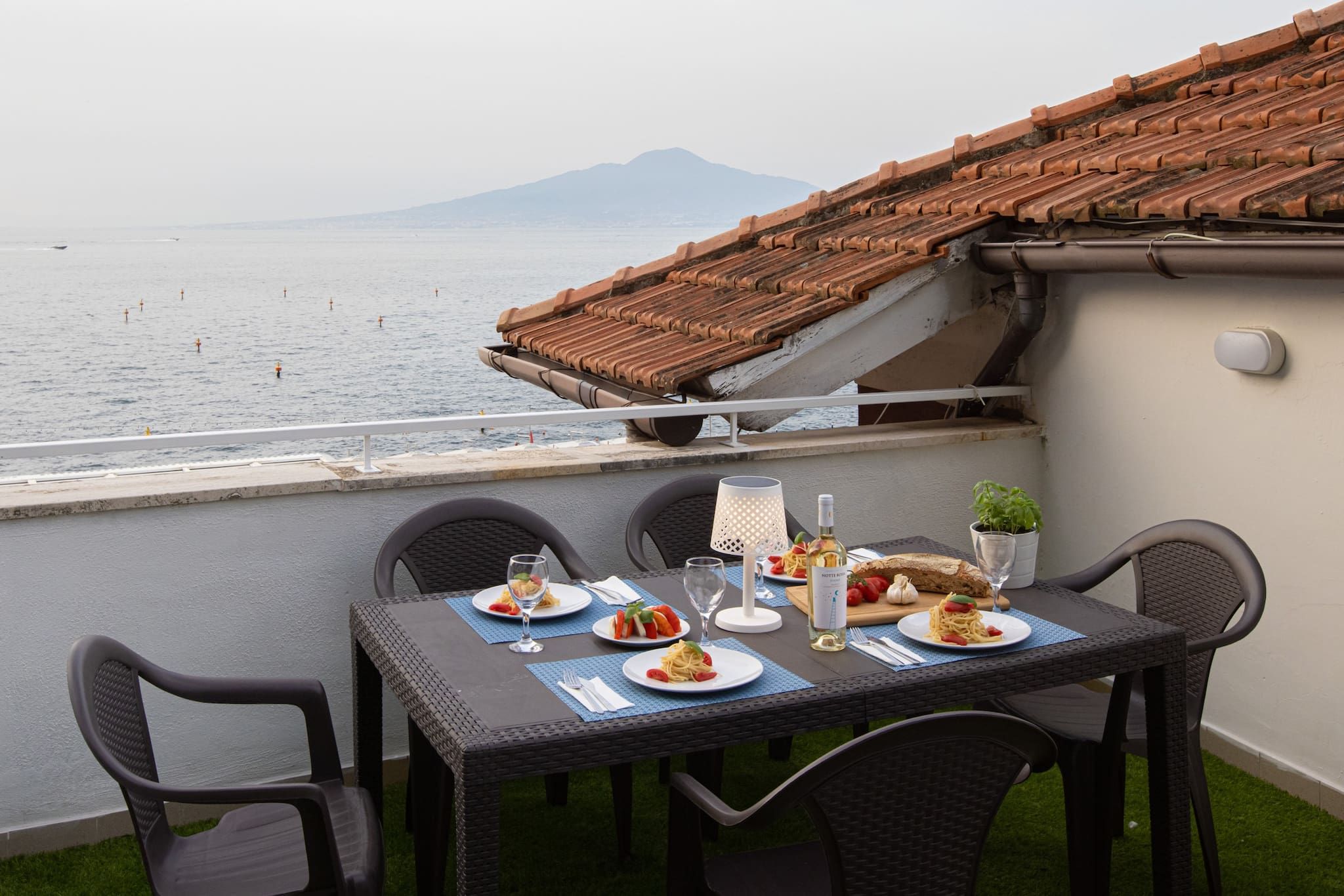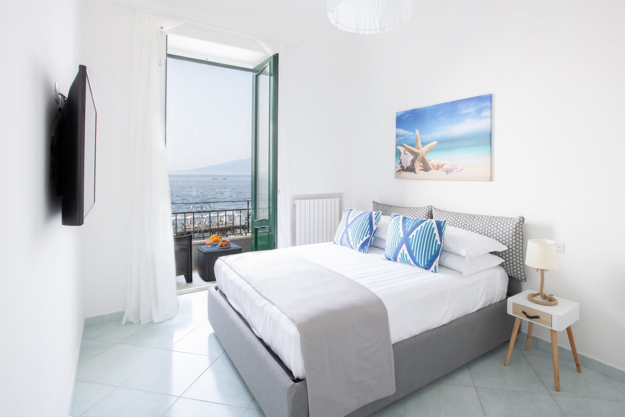 Overlooking Marina Grande, this apartment is ideally located for a refreshing seaside stay. You can stroll straight over to the beach and it’s just a fifteen-minute walk to Piazza Tasso and Sorrento Harbour. There are great public transport links and your host is on hand to help organise private transfers, guided tours and experiences. It’s worth noting the apartment is on the third floor with no lift access, but once inside you can sit back and enjoy the incredible views from the private terrace. There is a sofa bed for two guests in the living room and an additional single bed for children in the main bedroom.