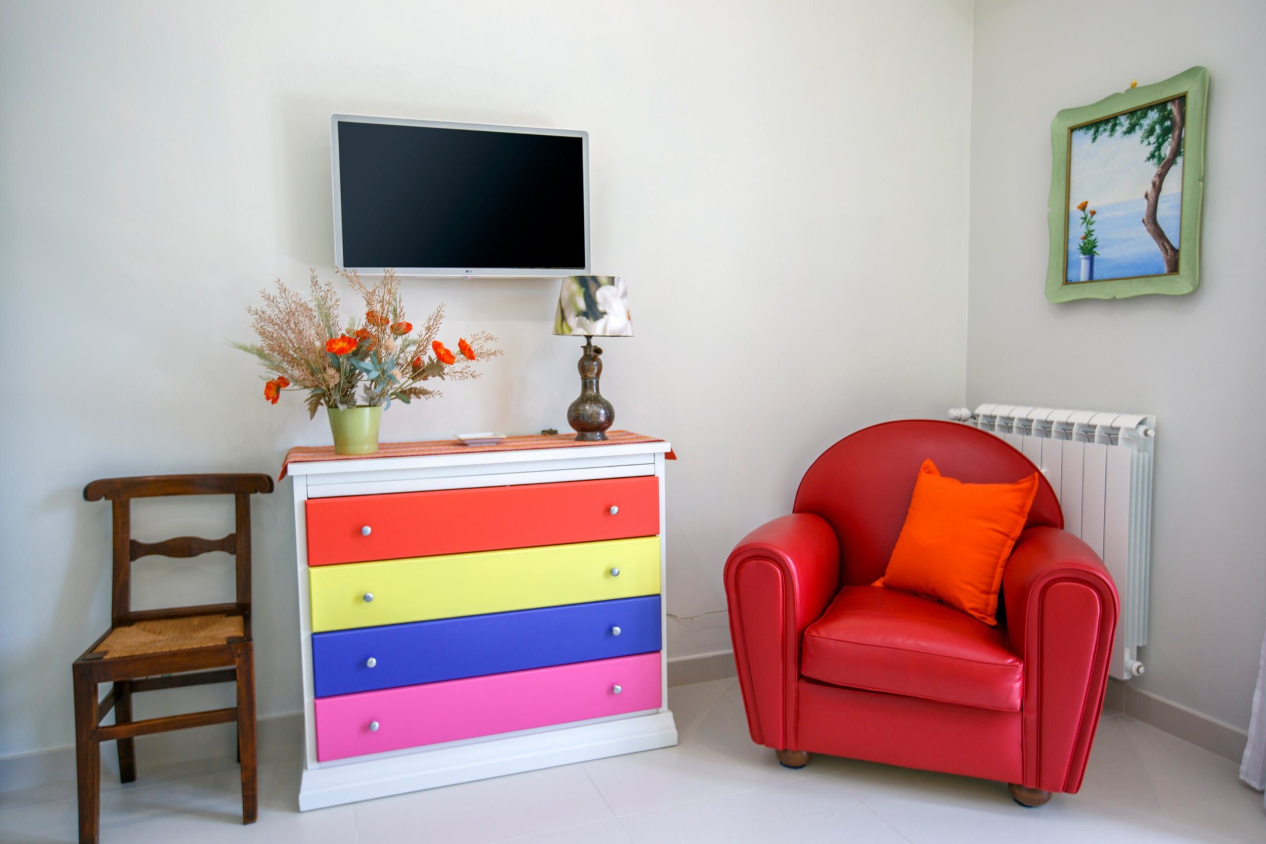 Enjoy a jolly stay in this colourful home, located in the very heart of Sorrento and close to the metro and bus station for easy adventuring. This home is ideal for a couple or solo traveller and boasts fun interiors with bright murals, funky furniture and arty decor that make it feel special and unique. We absolutely love the tiled splashback in the kitchen, and the vibrant feature wall in the bedroom – both give the home so much character.