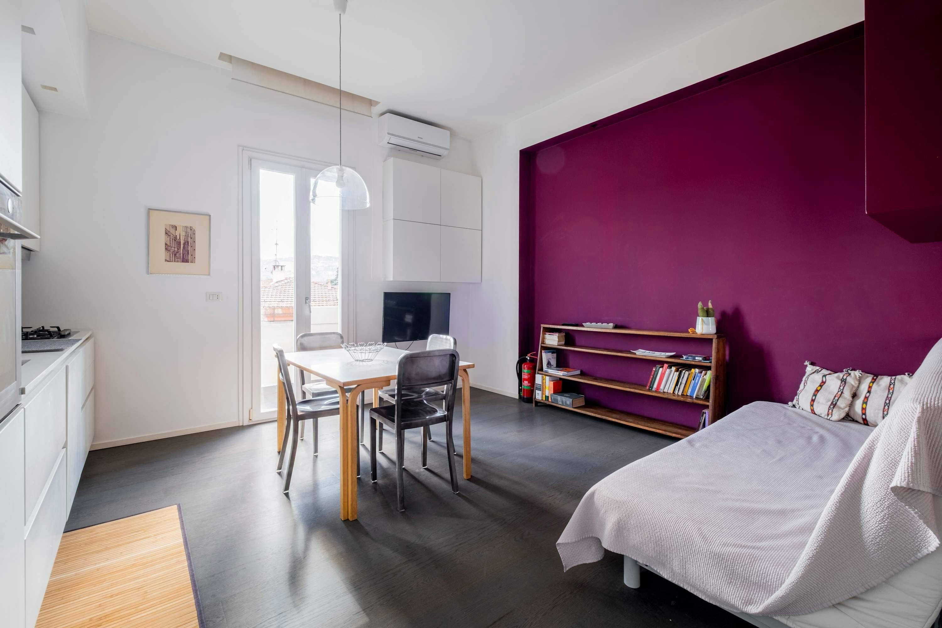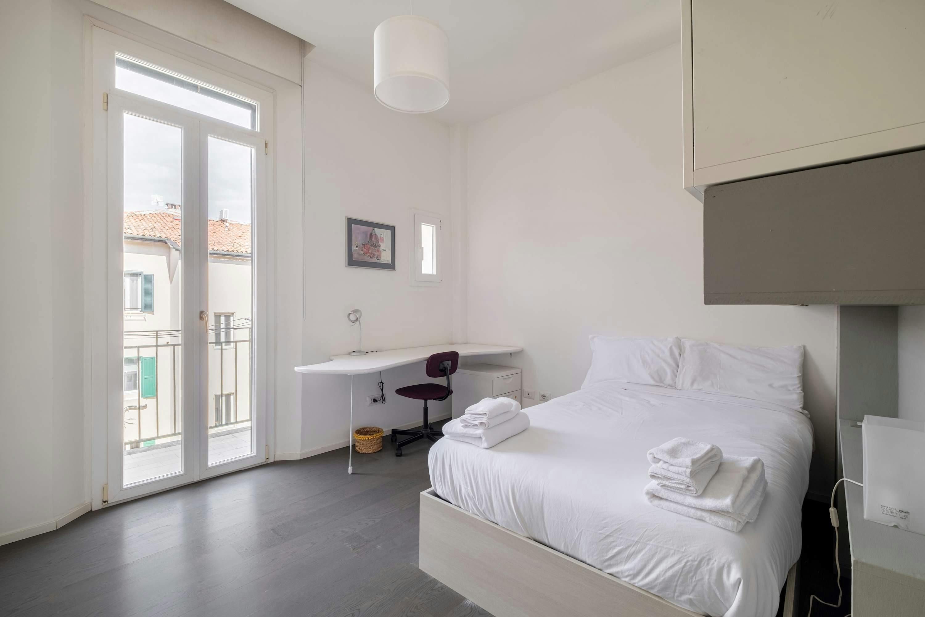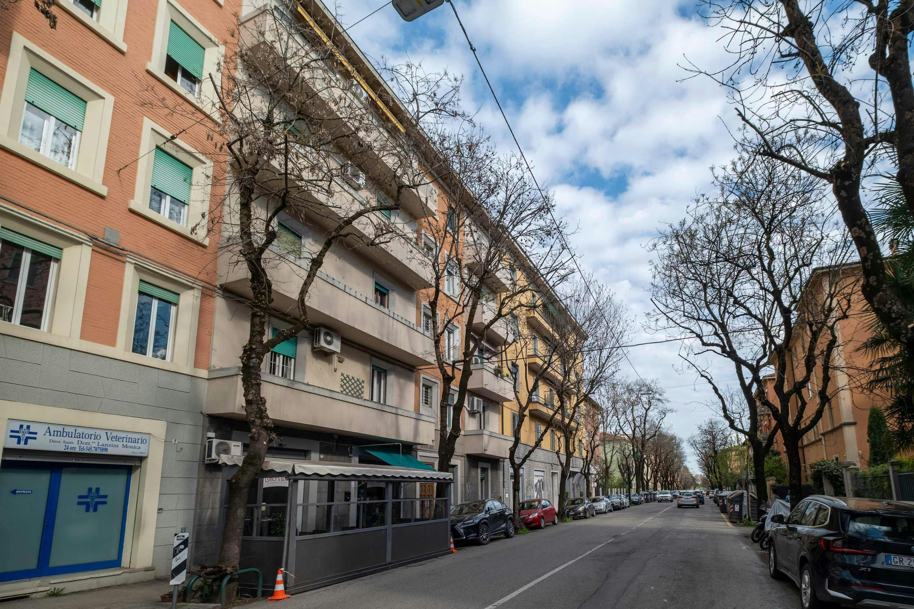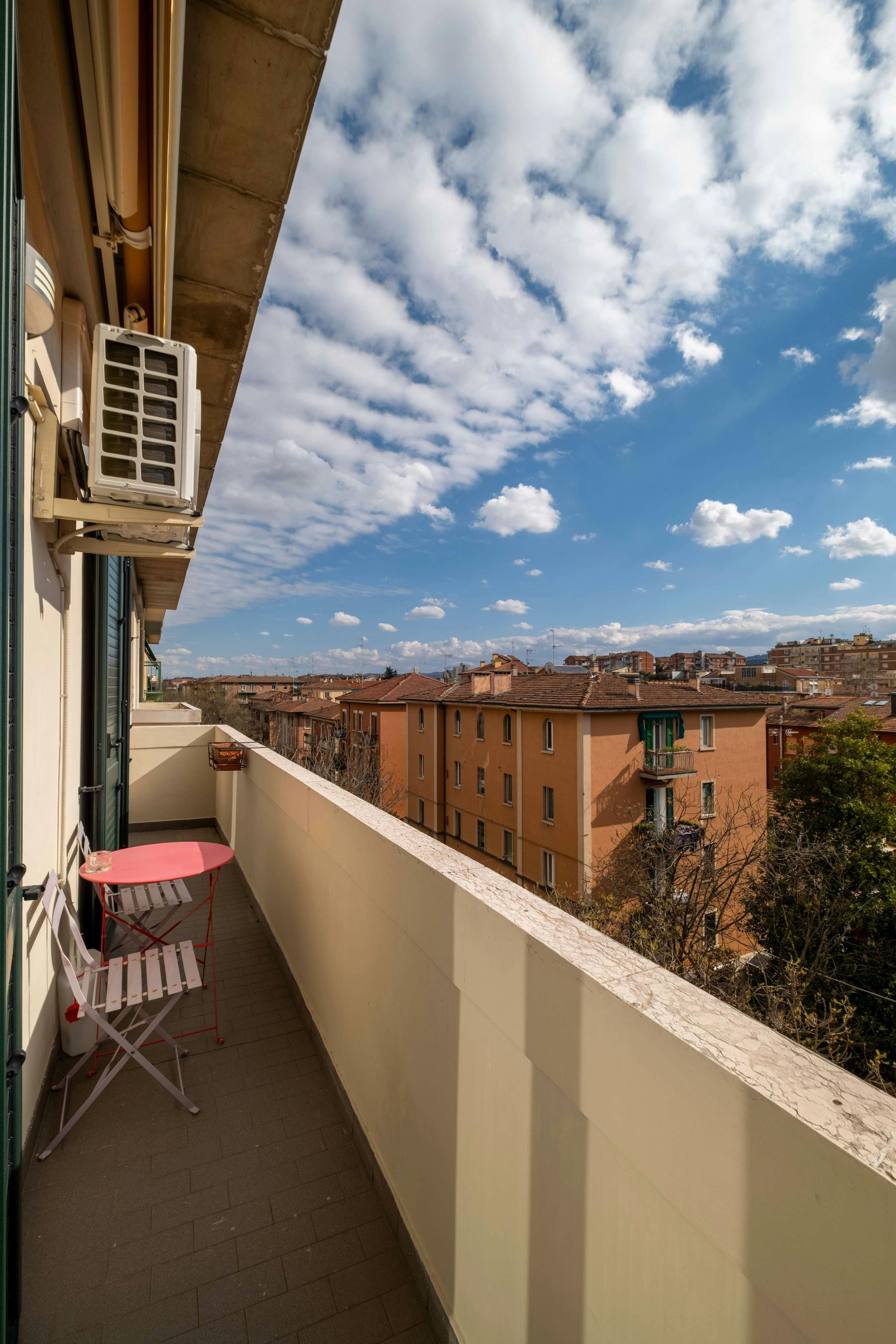 Located in an elegant residential neighbourhood in Bologna, you’ll be within walking distance of shops and restaurants when you stay at this apartment. Surrounded by green spaces and parks, the area is perfect for walking and enjoying the outdoors. For many of Bologna’s attractions, though, you’ll need to use the excellent public transport links a short stroll away. The apartment is situated on the fourth floor of a historic building, and as with many old buildings, there’s no lift here. Once you’ve reached this home, there’s a balcony to relax on with views over the city – the perfect spot for evening drinks. Both bedrooms have desks, too, for when you need to work while away.