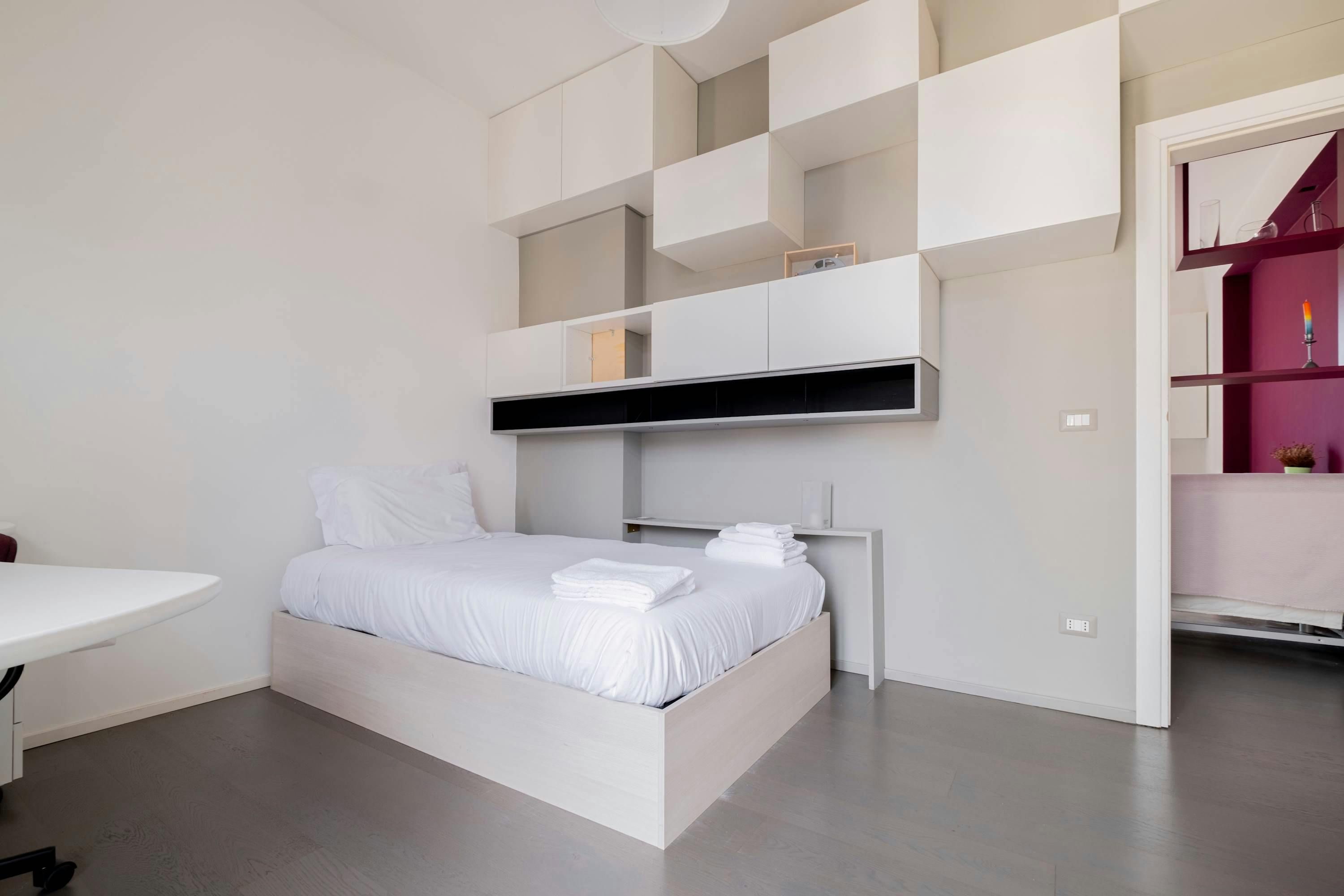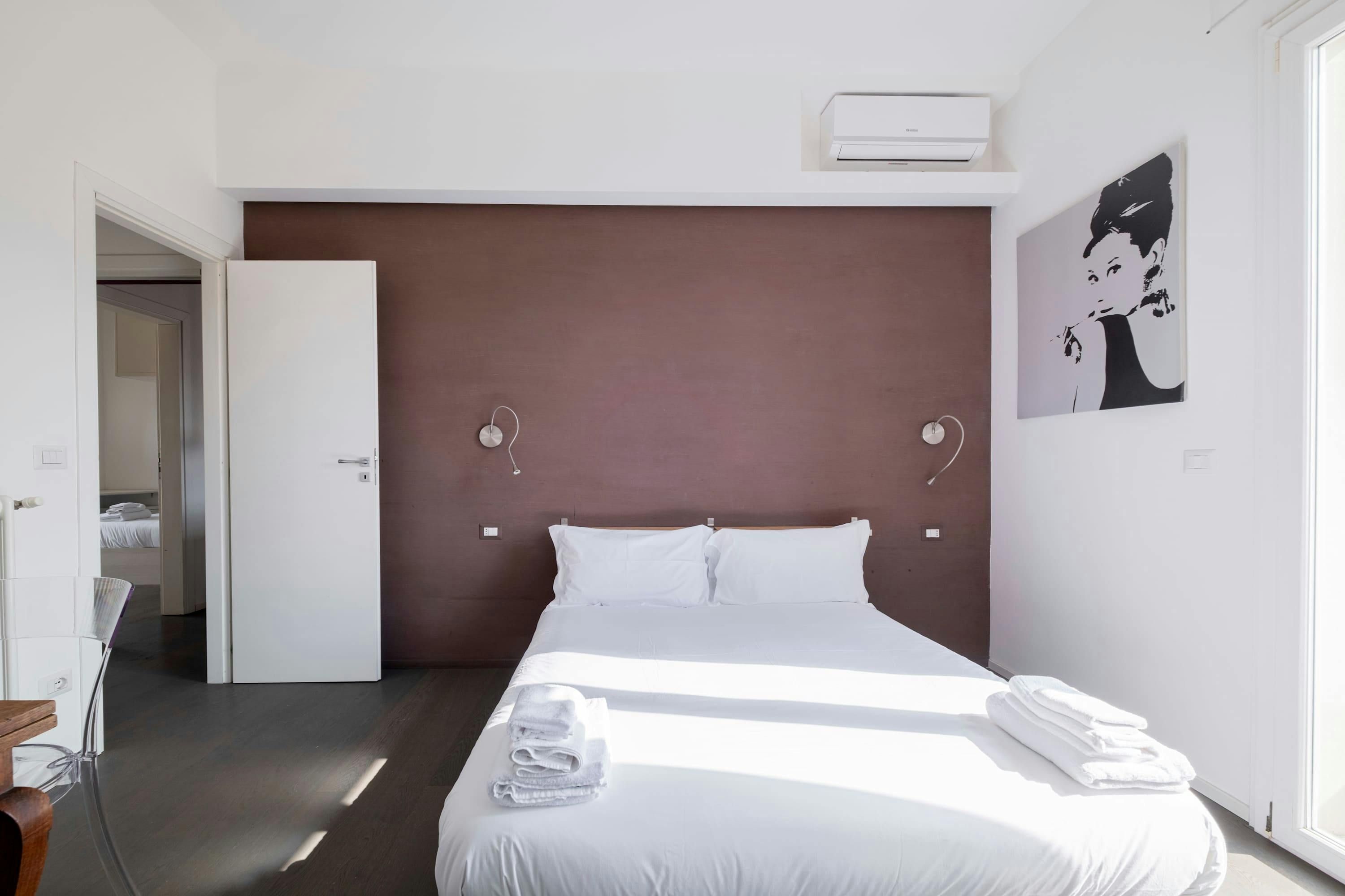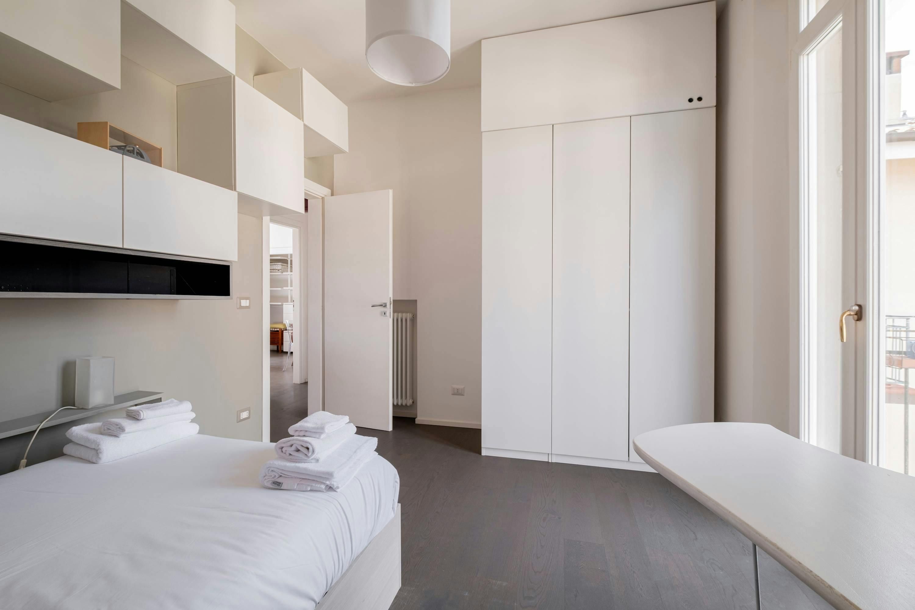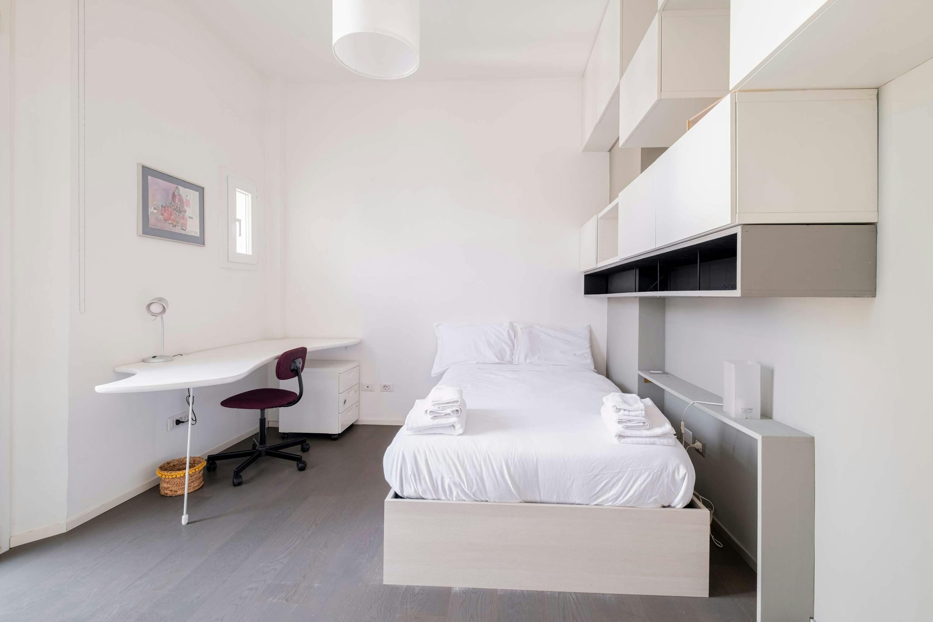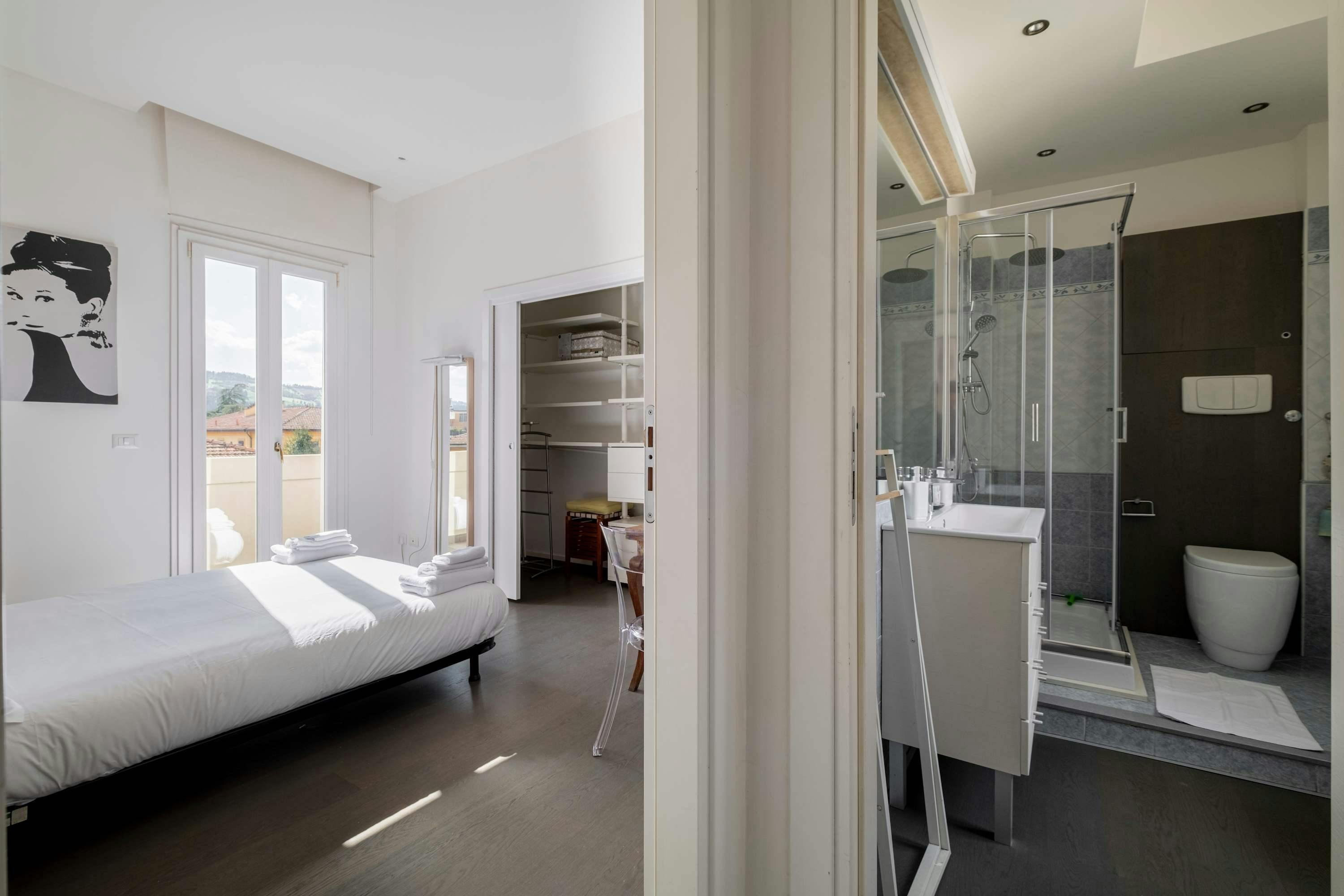 Located in an elegant residential neighbourhood in Bologna, you’ll be within walking distance of shops and restaurants when you stay at this apartment. Surrounded by green spaces and parks, the area is perfect for walking and enjoying the outdoors. For many of Bologna’s attractions, though, you’ll need to use the excellent public transport links a short stroll away. The apartment is situated on the fourth floor of a historic building, and as with many old buildings, there’s no lift here. Once you’ve reached this home, there’s a balcony to relax on with views over the city – the perfect spot for evening drinks. Both bedrooms have desks, too, for when you need to work while away.