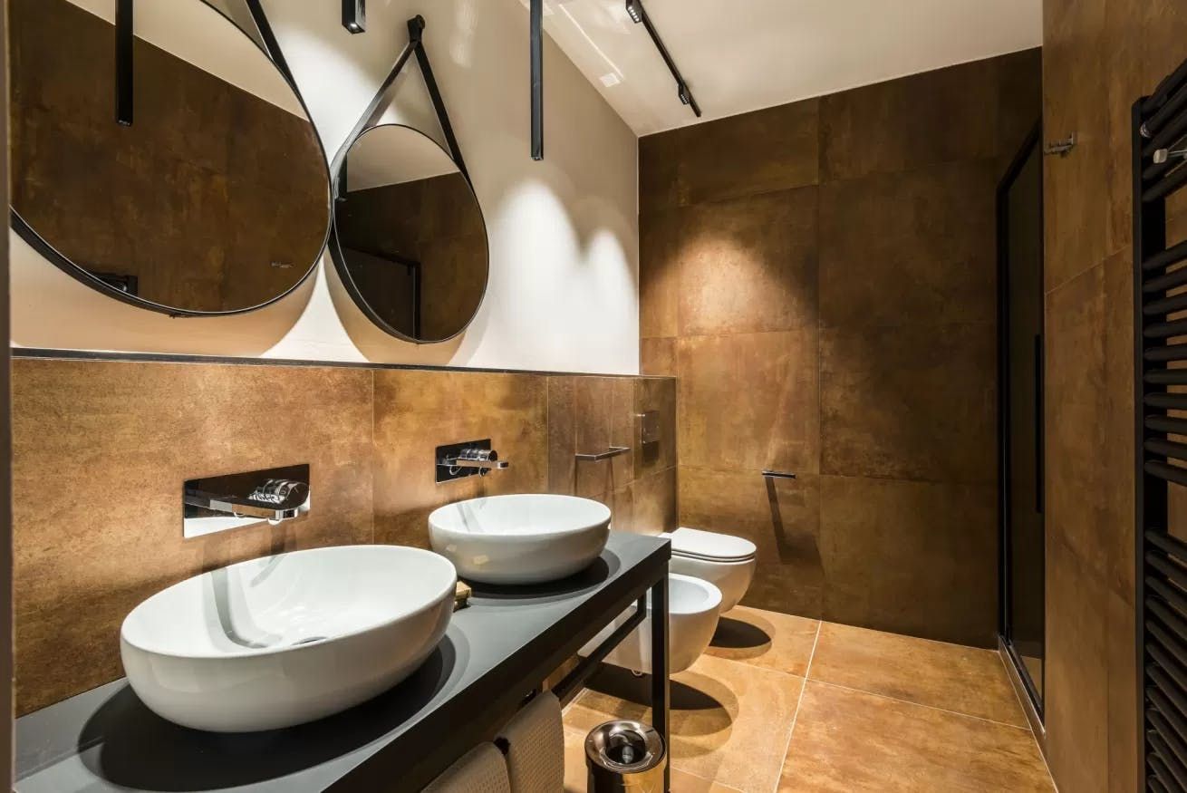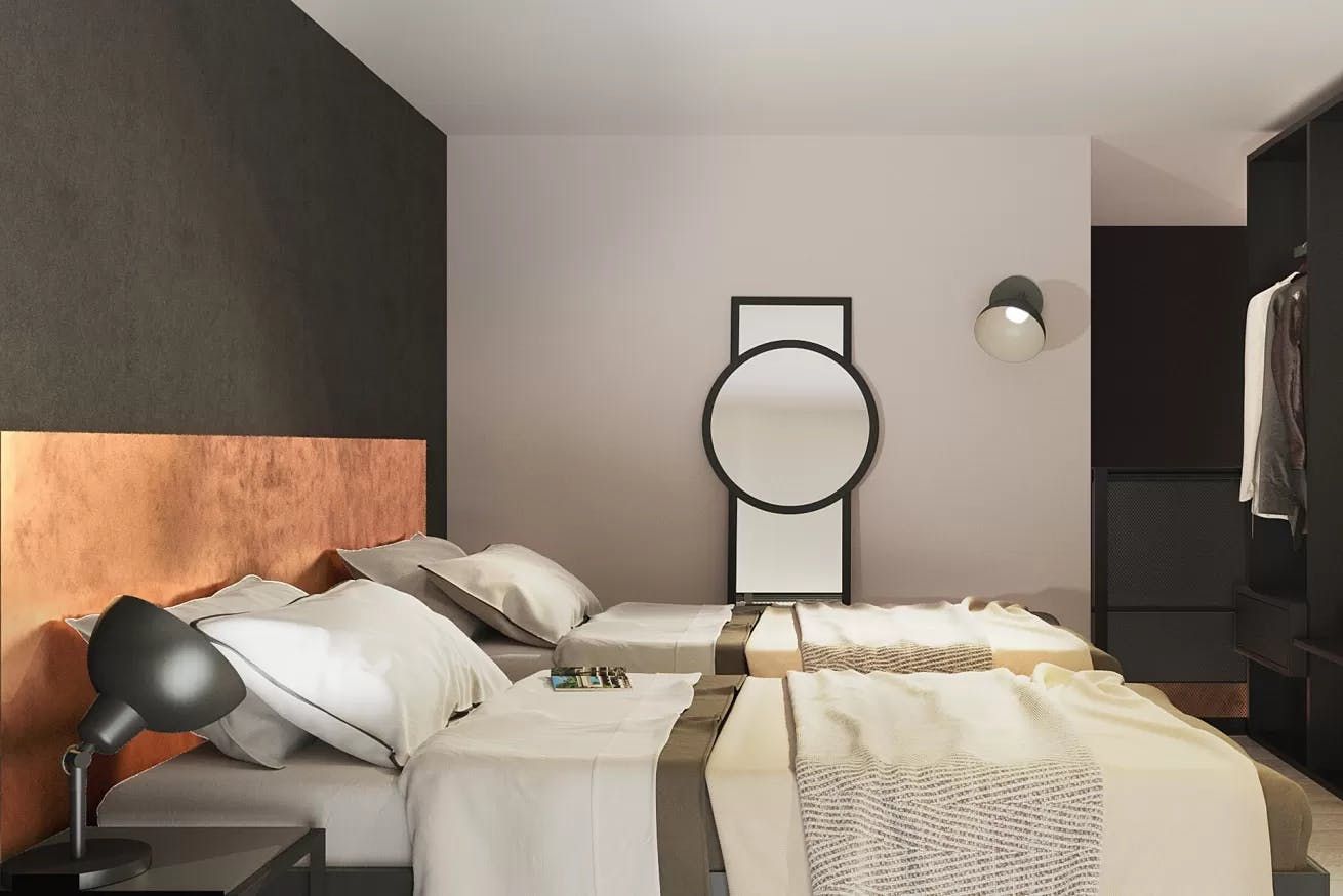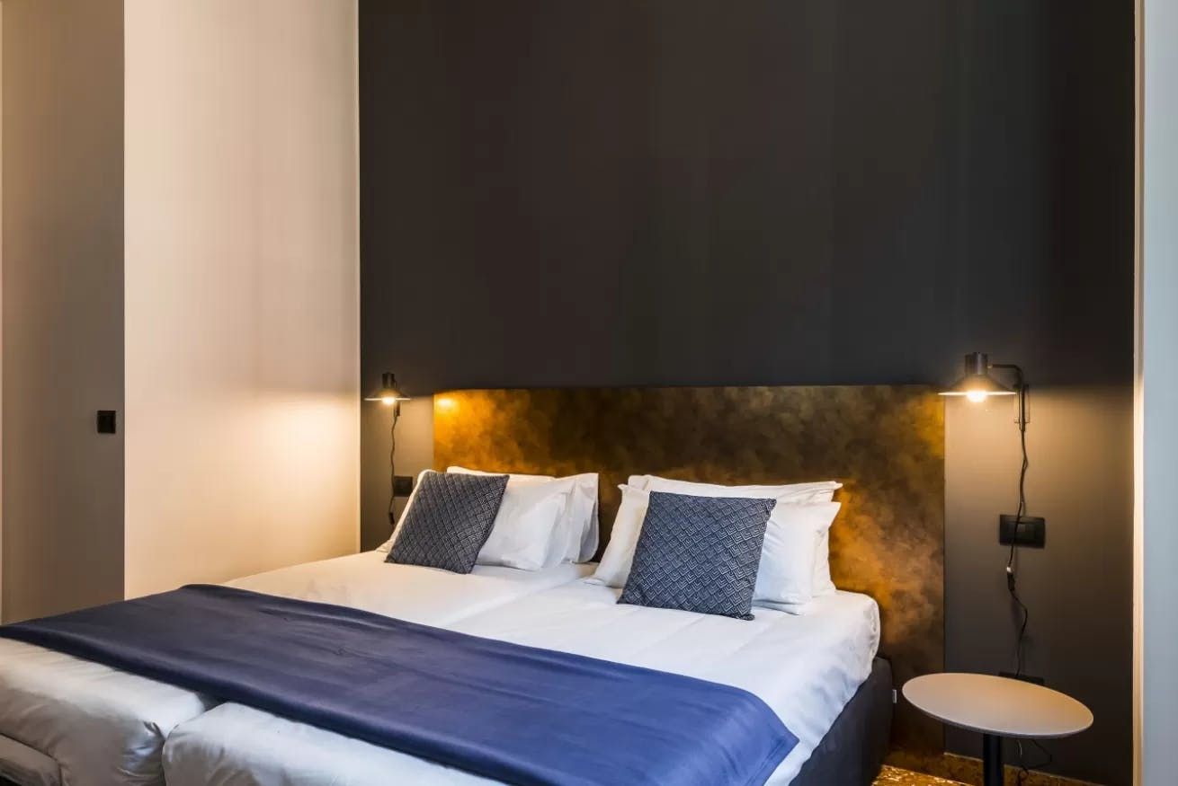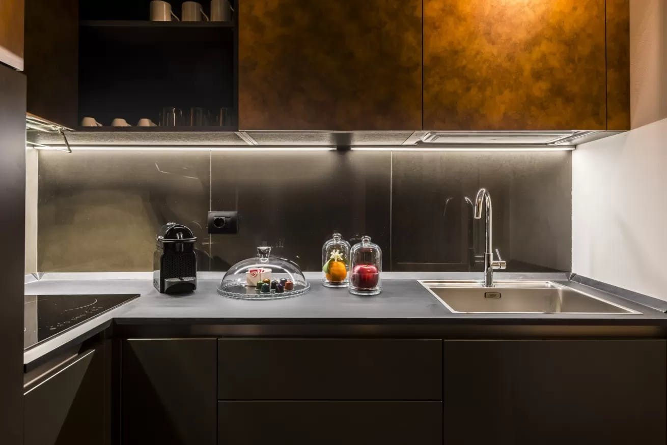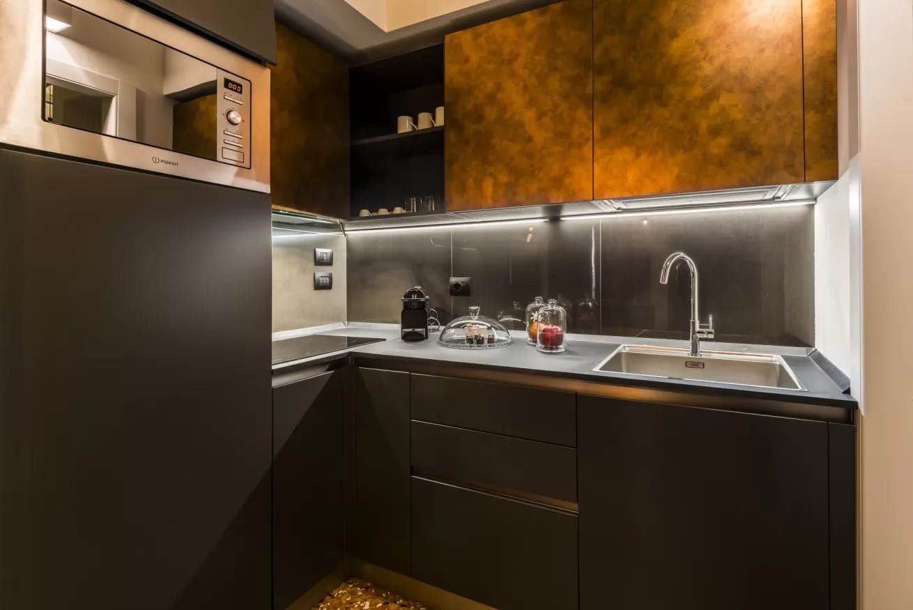 Once you’ve filled up on tortelloni and mortadella, head back to your quiet city bolthole to enjoy an espresso at the sleek breakfast bar. Slate-grey and ink-black dominate the decor, with industrial touches like cage lamps and silver cogs on display. Though your apartment is a sleek world of modern monochrome, you just have to glance out the bedroom windows to remind yourself you’re ensconced in a rose-hued medieval old town.