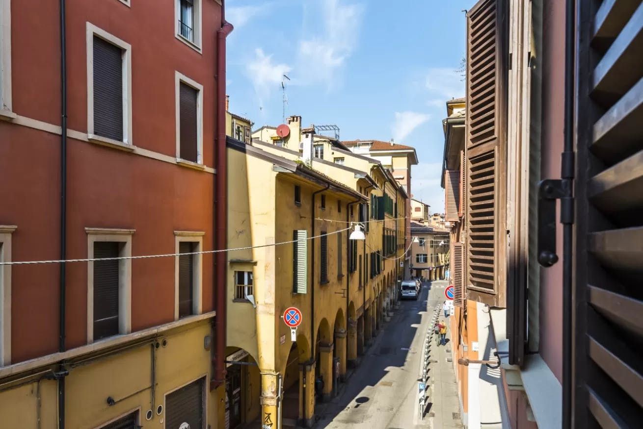 From this chic, industrial-style apartment, it’s just a seven-minute stroll to Piazza Maggiore; Bologna’s main historic square where palazzos have stood since the 13th century. Winding your way through the narrow medieval streets of the Old Town around you, you’ll find cafés and restaurants spilling out beneath ancient porticos and food markets selling fresh, local produce – you’re in Italy’s gastronomic capital after all.