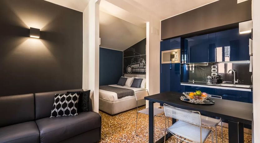 You'll find this studio apartment in the heart of Bologna. Although the outside of this former palace has old-world charm in spades, this flat's interior is all about those sleek, 21st-century touches. We're talking a luxe rainfall shower in the marbled bathroom, a compact, smartly-designed kitchen with a coffee capsule machine and quirky mechanic-inspired wallpaper behind the comfortable bed. It's a snug, somewhat dark space, we're not going to lie, but it's stylish – and if that's not enough to tempt you, the location sure will.