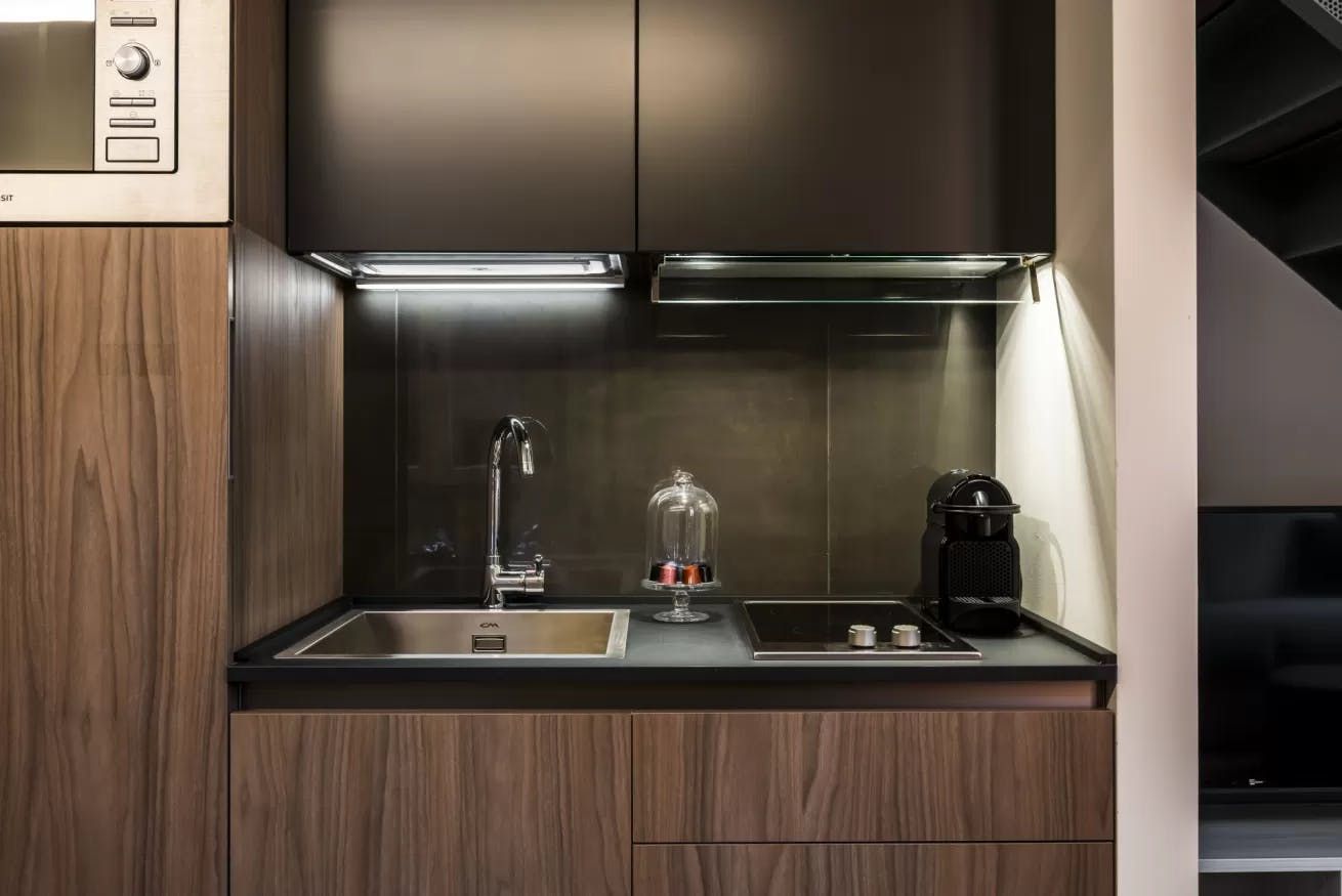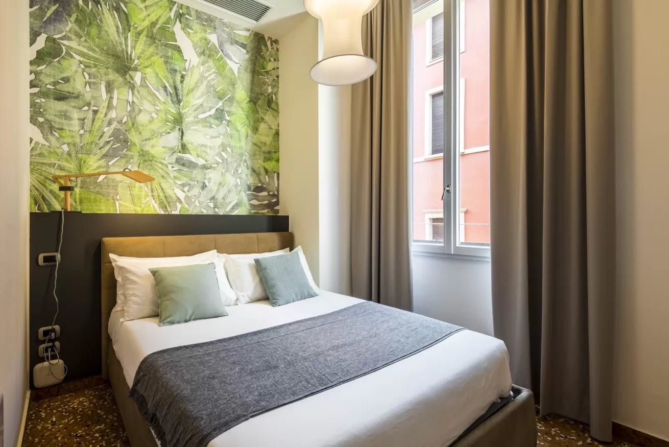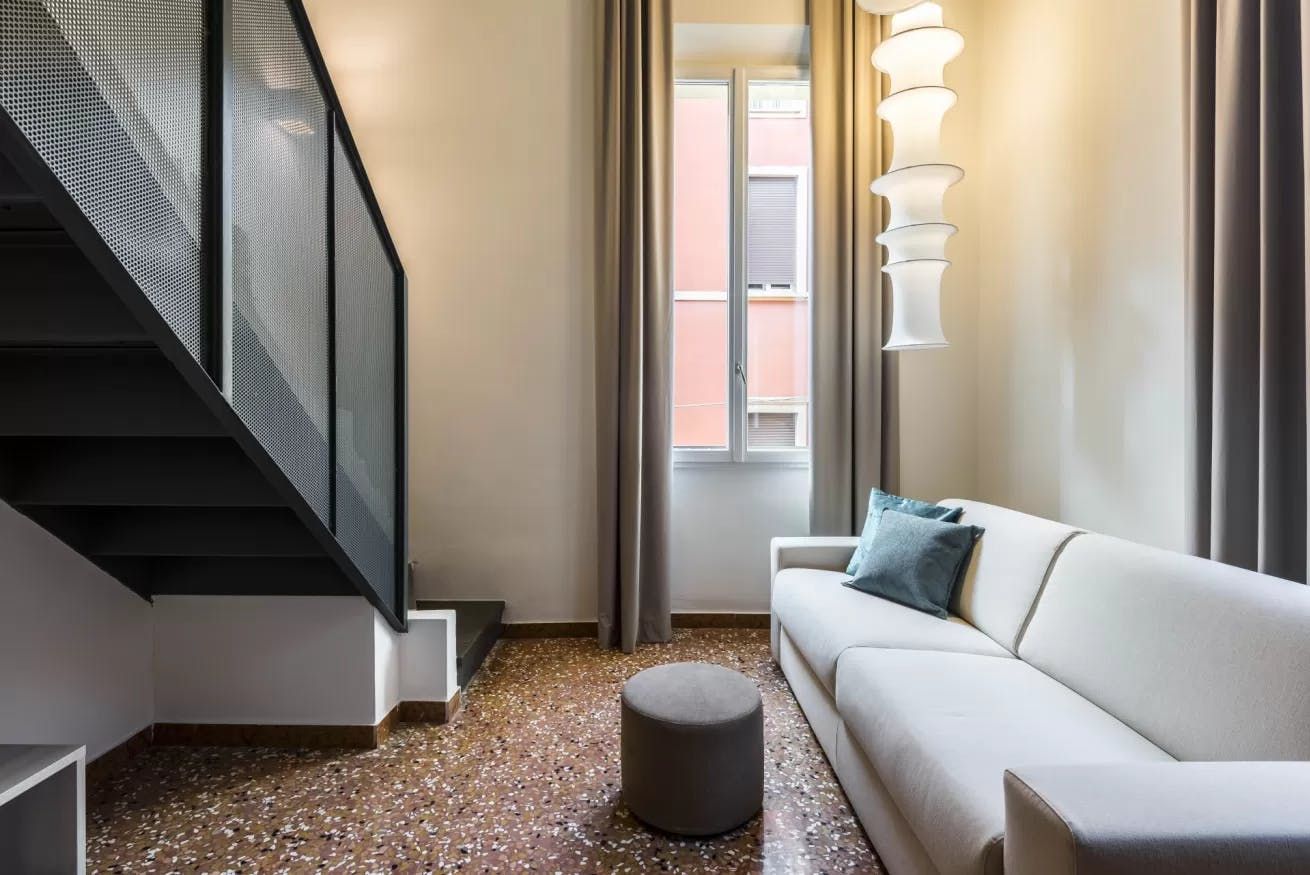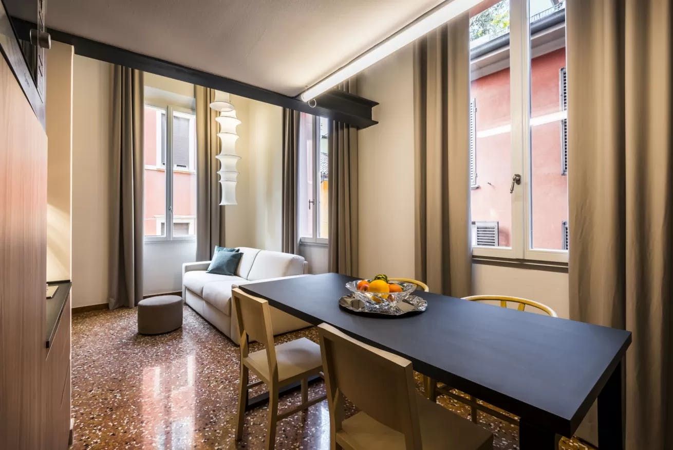 The apartment is sleek and attractive, with one bedroom at mezzanine level – it’s open and airy. Huge windows bring in light, and showcase the classically Italian view. You can look onto the streets of Bologna as you wake up and sip your first coffee of the day.
