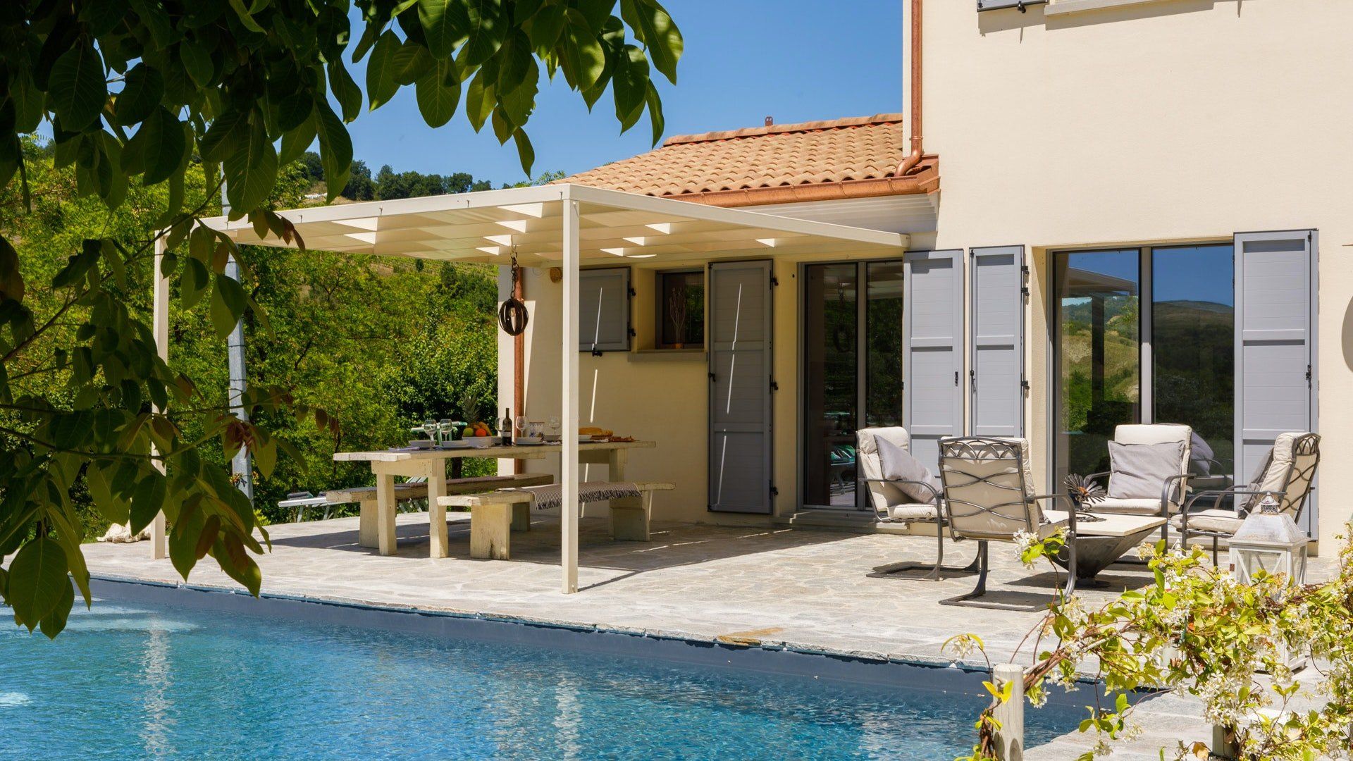Thanks to its position at the foot of a hill, the home has sublime 360-degree panoramic views of breathtaking countryside, not to mention its own stunning grounds where an inviting pool takes centre stage. Spend afternoons soaking up the Italian rays and taking cool dips in the water before gathering around the pergola’s table for an alfresco feast.