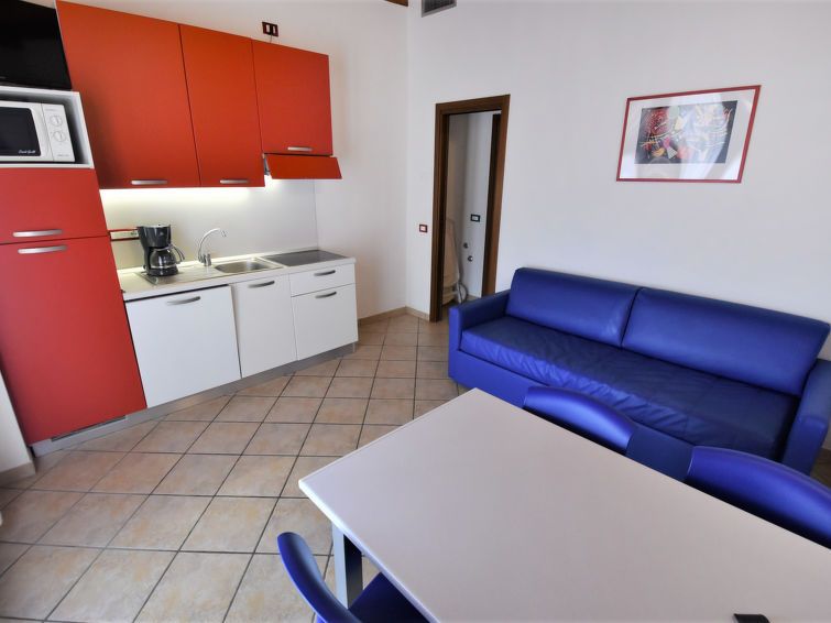 "Bahia", 3-room apartment 45 m2 on 1st floor, north-east facing position. Comfortable furnishings: living/sleeping room with 2 sofabeds, dining table and satellite TV. Exit to the loggia. 1 room with 1 double bed. 1 room with 2 beds. Open kitchen (dishwasher, 4 induction hot plates, microwave, electric coffee machine).