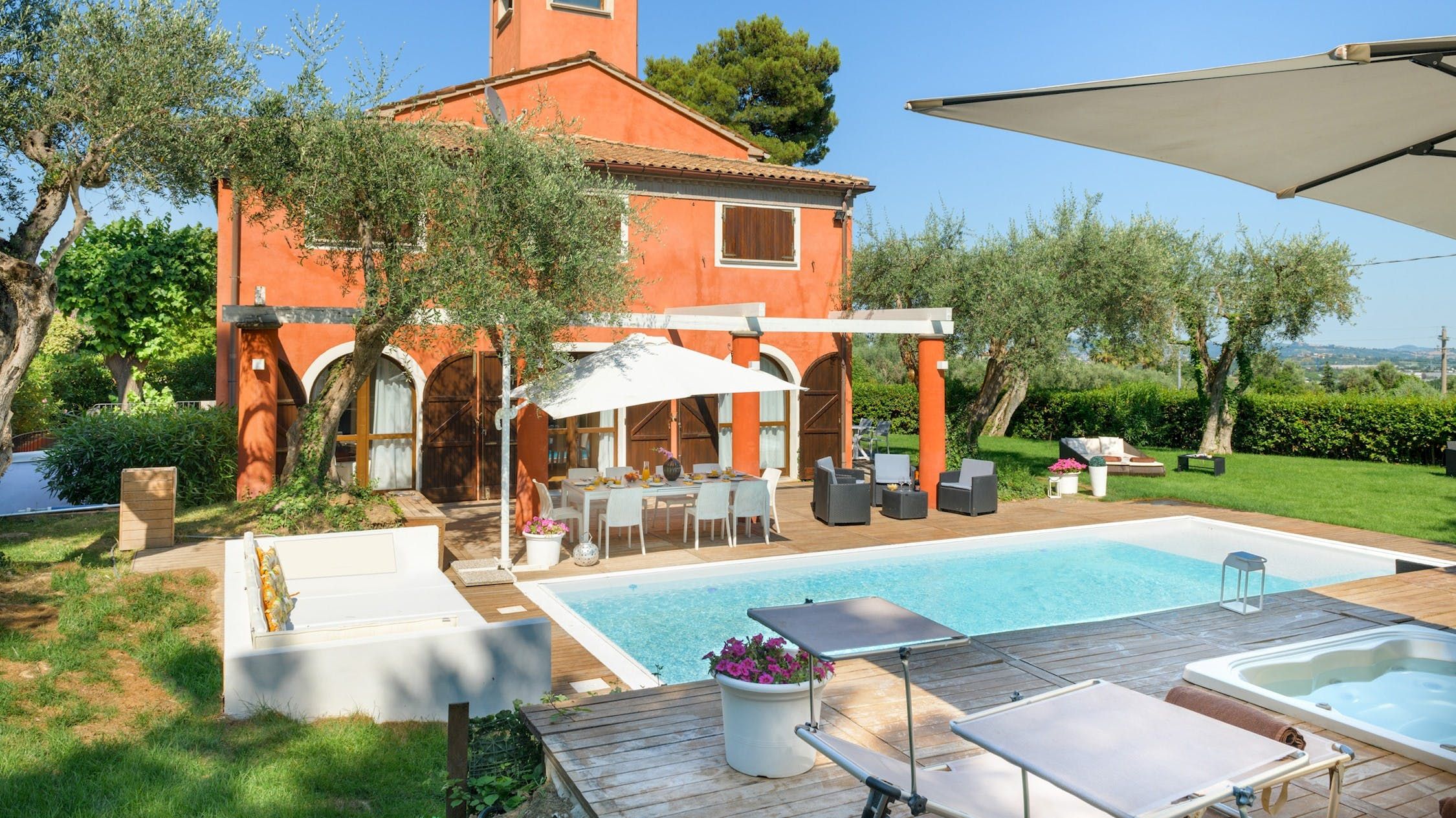 In the morning, stroll across the decking and you’ll be met with a crystal blue pool and hot tub. If you aren’t taking a refreshing dip, you can be enjoying a coffee with your feet up, flicking through the pages of a magazine as the delicate sound of birdsong fills the silence around you. At night, the surrounding gardens are lit with the amber glow of the garden lights and the warmth of the glowing sunset. Dine alfresco for a romantic ambience, as the spectacular views across the Romagna hills and the Adriatic Sea disappear into dusk. A peaceful home, perfectly located between the refreshing coastline and San Marino, means that you have the best of both worlds here.