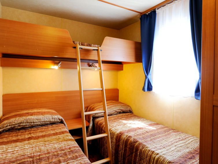 "Exotic", 4-room mobile home 35 m2. Object suitable for 6 adults + 1 child. Entrance hall with veranda with dining table. 1 double bedroom. 1 room with 2 beds. 1 room with 2 beds and 1 x 1 bunk beds (65 cm, length 180 cm). Kitchen (3 hot plates, dishwasher, kettle, microwave, electric coffee machine).