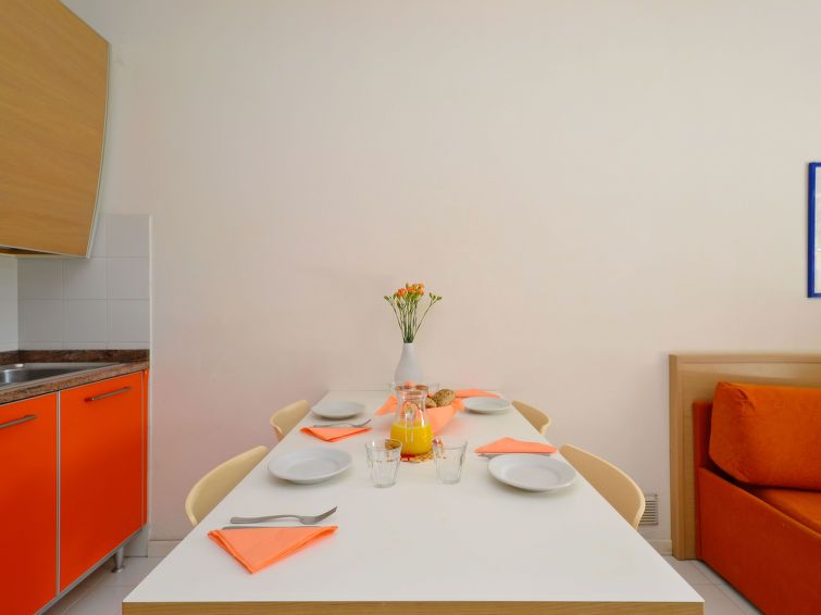 2-room apartment 35 m2, on the upper ground floor. Practical furnishings: living/sleeping room with 1 double sofabed, dining table, kitchen corner and satellite TV. Exit to the balcony. 1 double bedroom. Open kitchen (Gas stove, 4 gas rings, microwave, freezer, electric coffee machine).