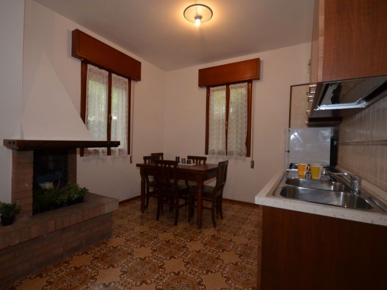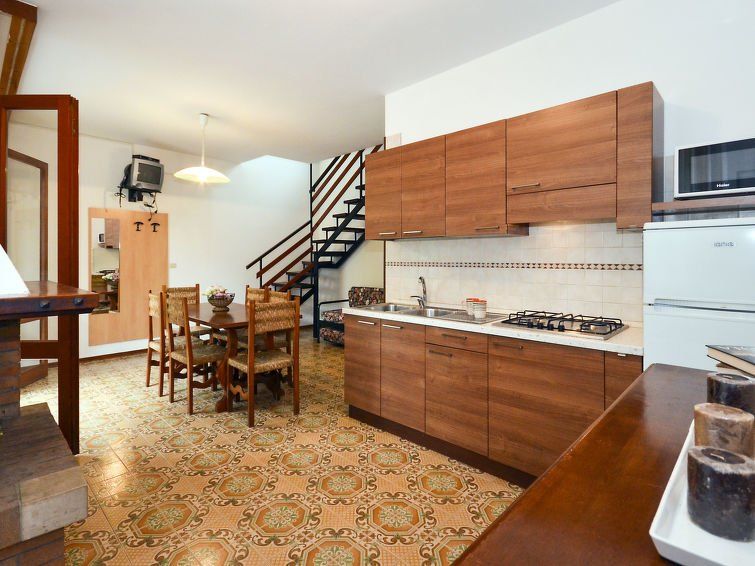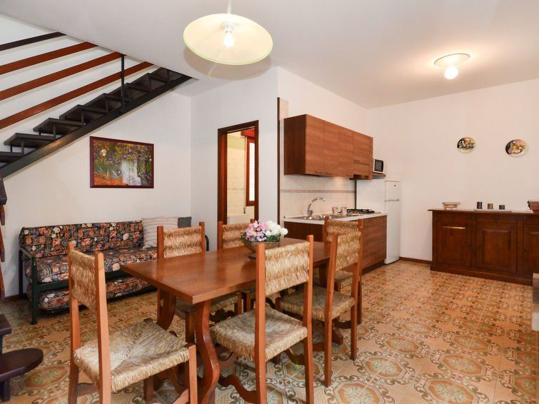 3-room apartment 60 m2 on 2 levels. Practical furnishings: living/sleeping room with 1 double sofabed, open-hearth fireplace, dining table, kitchen corner and satellite TV. Exit to the terrace. Open kitchen (4 gas rings, microwave, freezer, electric coffee machine). Shower/bidet/WC.
