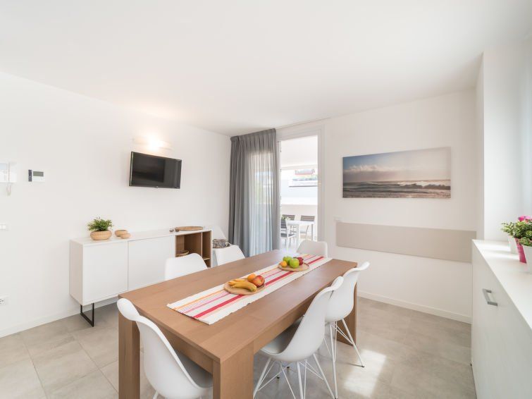 4-room apartment 50 m2. Beautiful and stylish furnishings: living/sleeping room with 1 fold-away bed (80 cm, length 180 cm), dining table, kitchen corner, satellite TV, air conditioning and forced-air heating. Exit to the balcony. 1 double bedroom with air conditioning and forced-air heating.