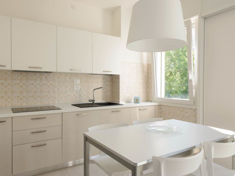 3-room apartment. Bright, practical and modern furnishings: living/sleeping room with 1 double sofabed, dining table and digital TV. 1 double bedroom. 1 room with 2 sleeping facilities. Kitchenette (dishwasher, 4 induction hot plates, freezer, electric coffee machine). Shower/bidet/WC.