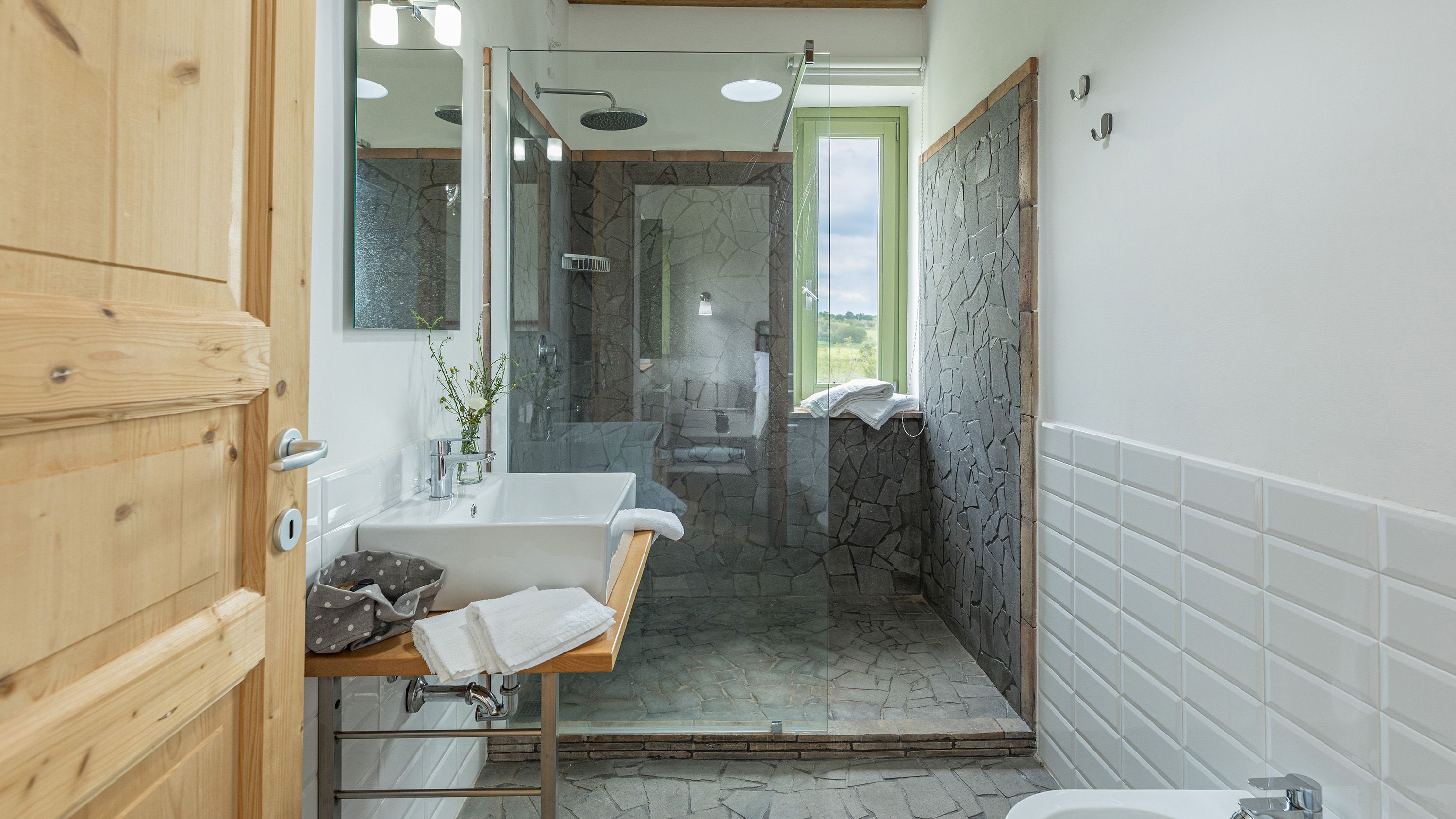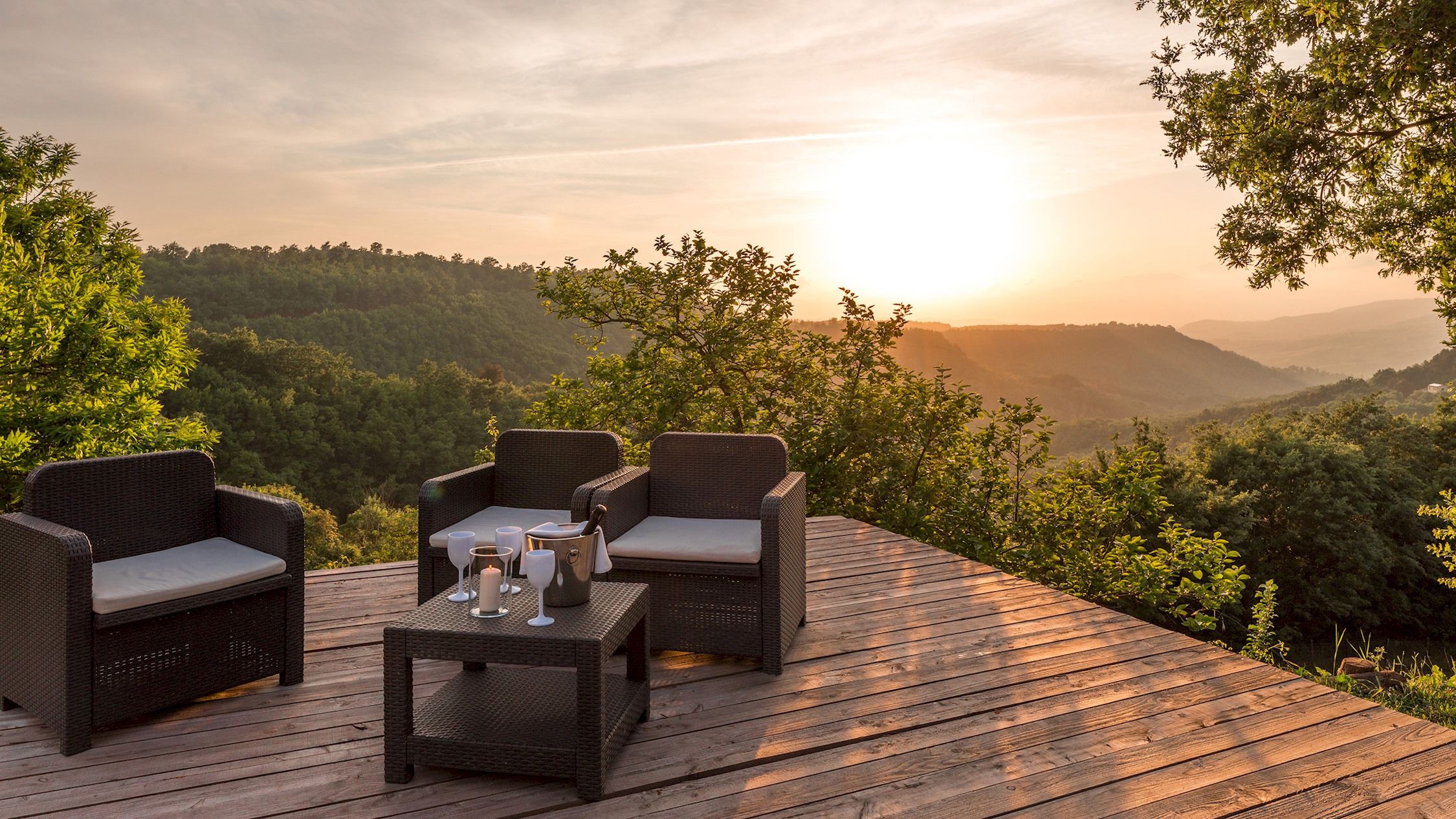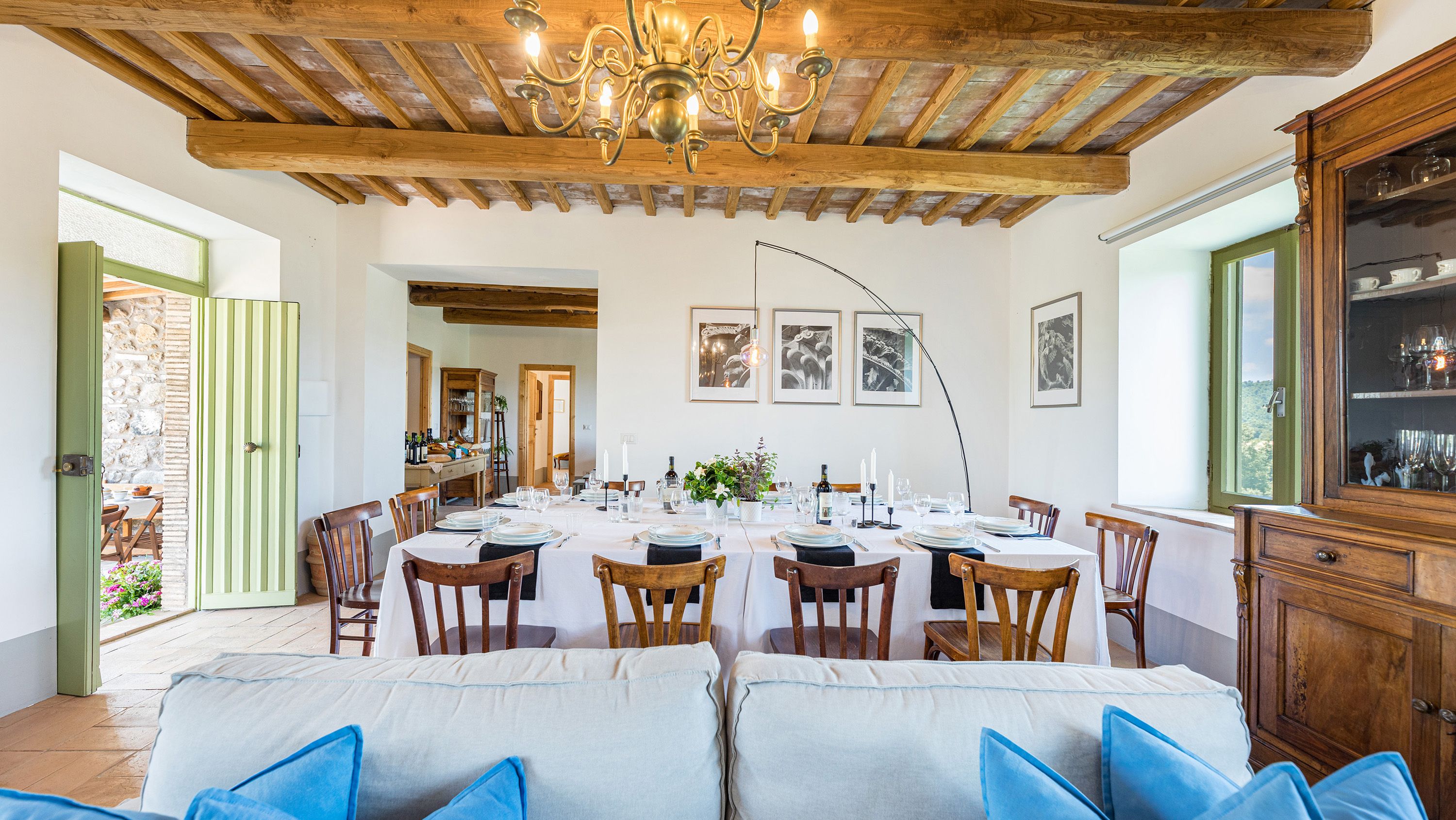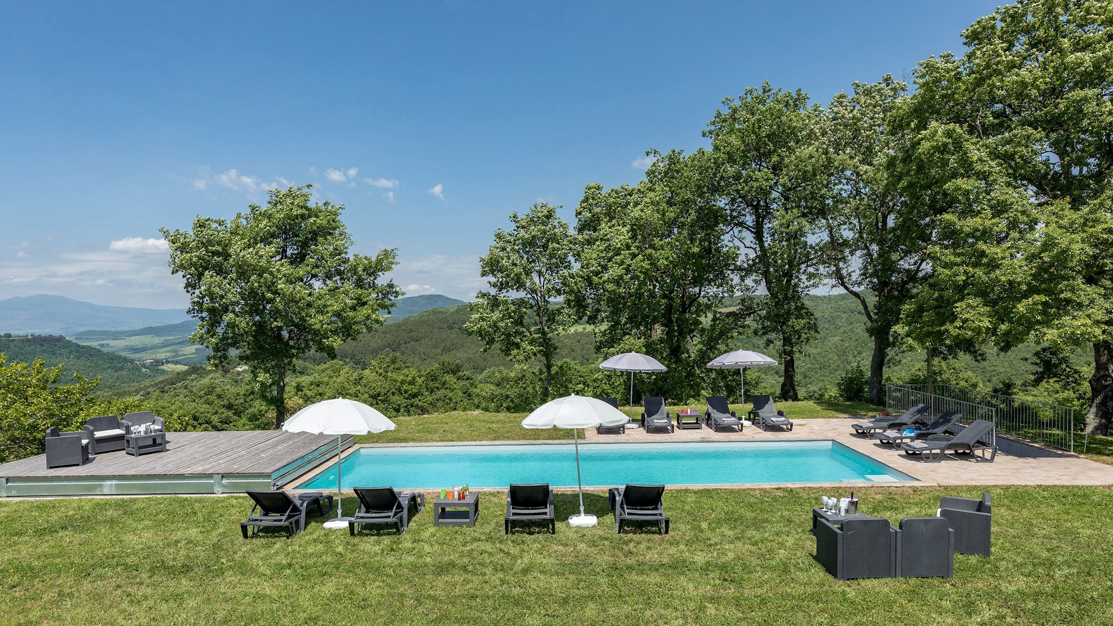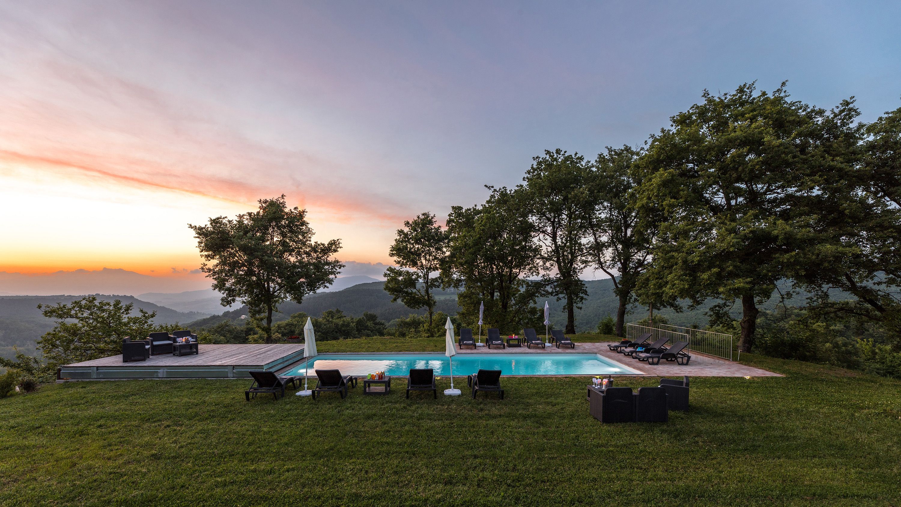 In the heart of the Lazio countryside, on the border with Umbria and close to Tuscany, lies this home. Set on the first floor of a farmhouse and accessed by an external staircase, inside, you’ll find plenty of characterful features. We love the vistas of the surrounding hills and valleys, and another highlight is the garden with its private pool. There’s a reed-covered pergola that provides a shaded spot for alfresco dining and a balcony, too. Located within the family farm, which extends over 100 hectares with arable land, olive groves and woodland, there are plenty of hiking opportunities. You’ll also find the picturesque Aquilonaccio Waterfall here or visit the nearby town of Acquapendente, 7 kilometres away.