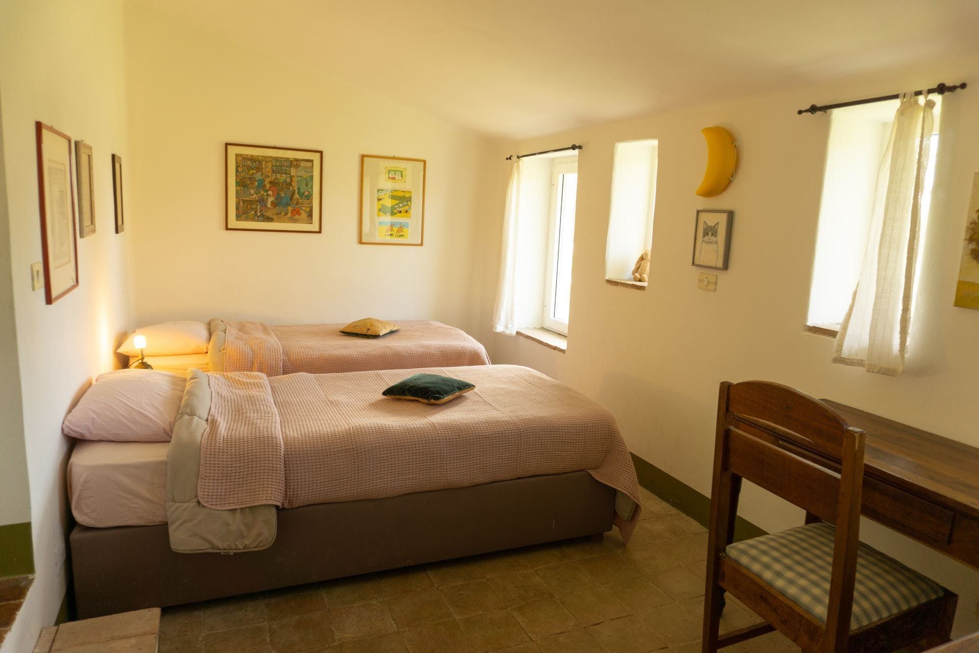 This country villa boasts stunning panoramic views of the surrounding olive groves and rolling hills. We think it's a great choice for families – several of the beds can be configured as singles or kings, and your host can provide a free cot and high chair for little ones. The furniture is quite traditional, but one of the three living rooms is equipped with a projector for movie nights. Outside you'll find a private pool and space for alfresco dining, while the nearby Bolsena Lake offers opportunities for water sports, hiking, and more. We recommend hiring a car here – you'll be at a crossroads between Lazio, Umbria and Tuscany, putting several historic locations within reach for day trips.