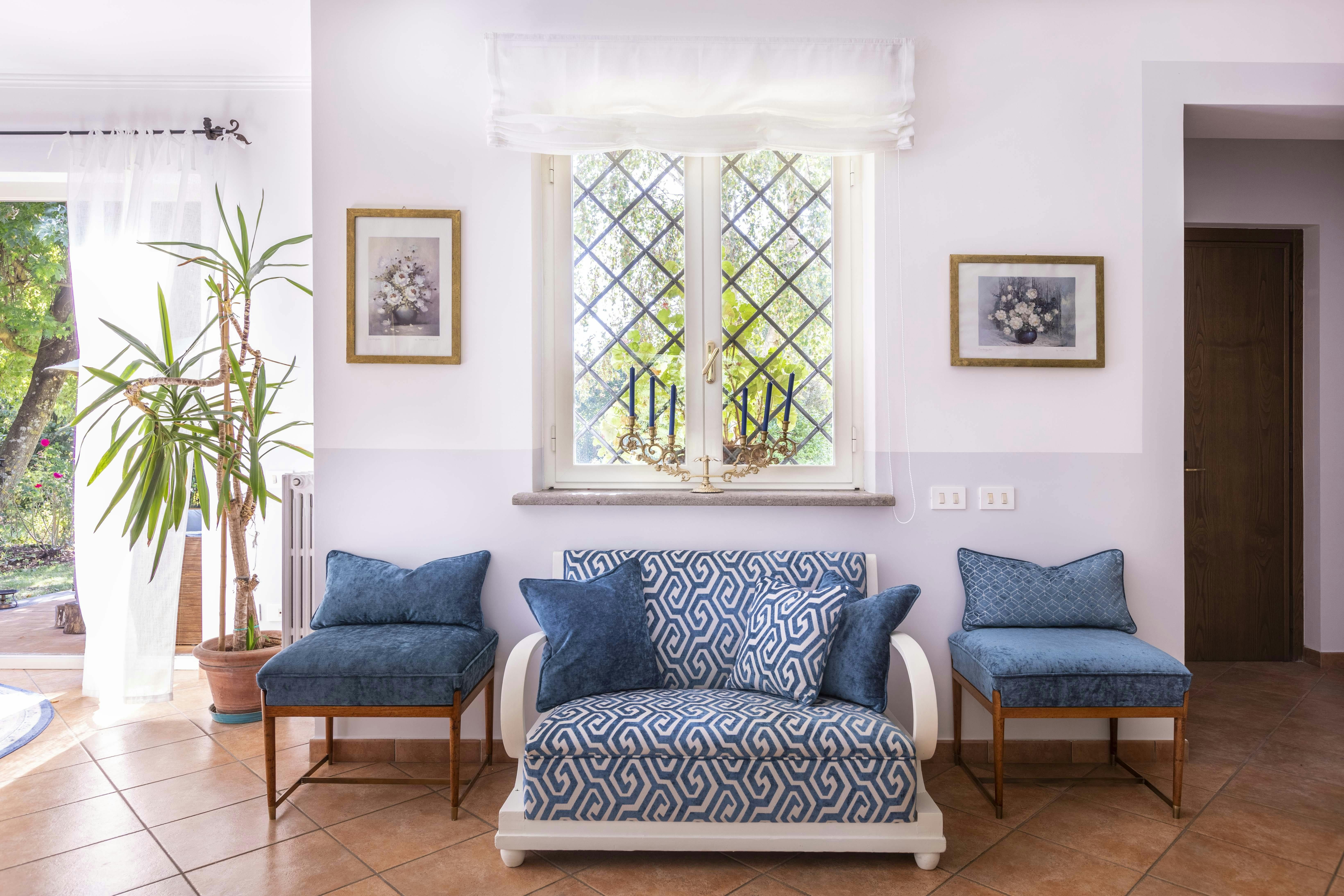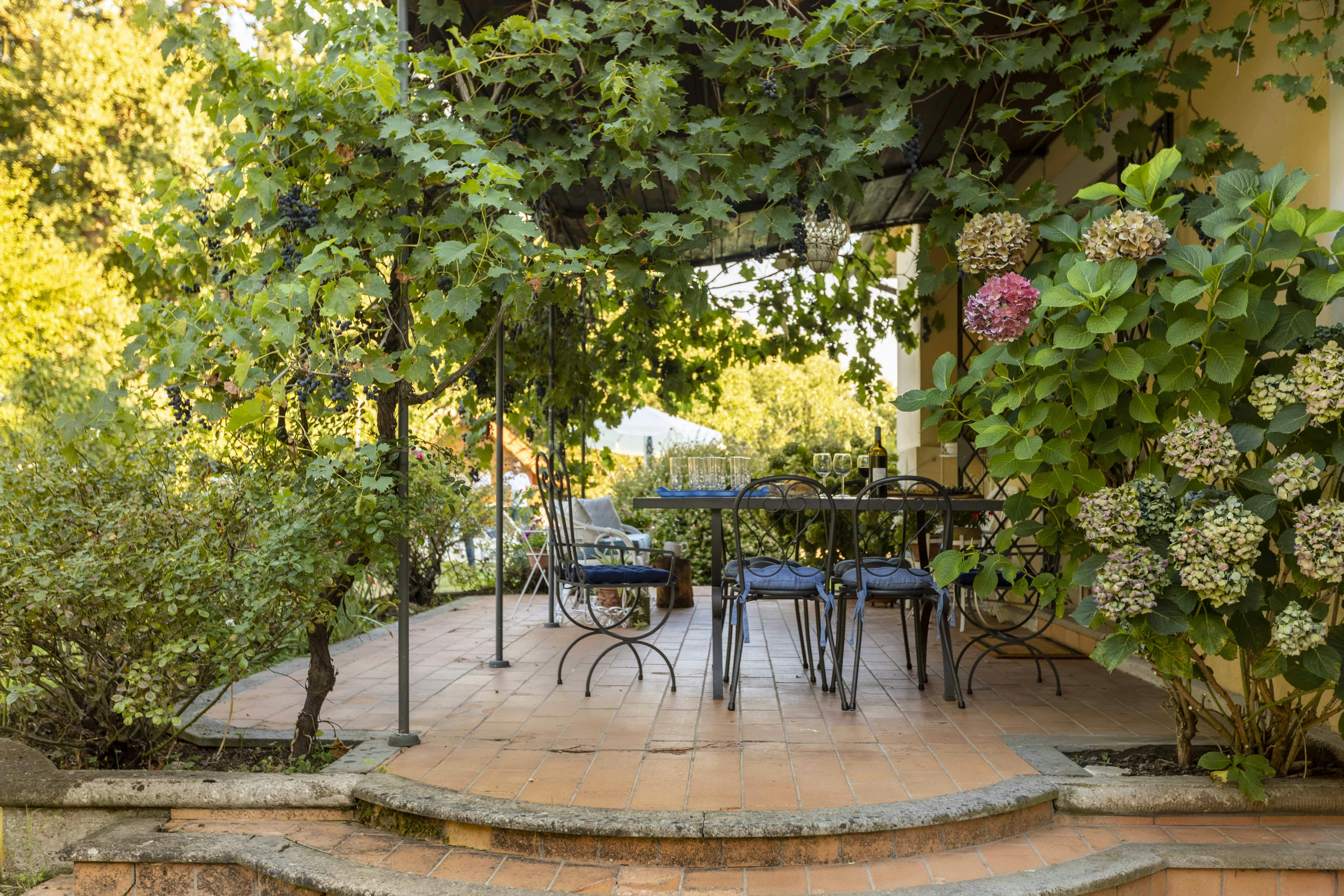 We love the outdoor space at this quaint Italian villa. Amidst the hazel and chestnut trees, you'll find lots of hidden spots to relax and enjoy the weather. Take a dip in the swimming pool, gather for drinks under the parasol, and enjoy an Italian feast alfresco under the clambering vines on the patio. The single-floor layout of this home means each of the bedrooms enjoys peaceful garden views, and the sliding glass doors let in plenty of sunshine into the living space. Tucked away in a rural corner of Viterbo, this is the perfect spot to unwind from everyday life – yet there's plenty to see in the local area, from the shore of Lago di Vico to charming hilltop towns like Ronciglione.