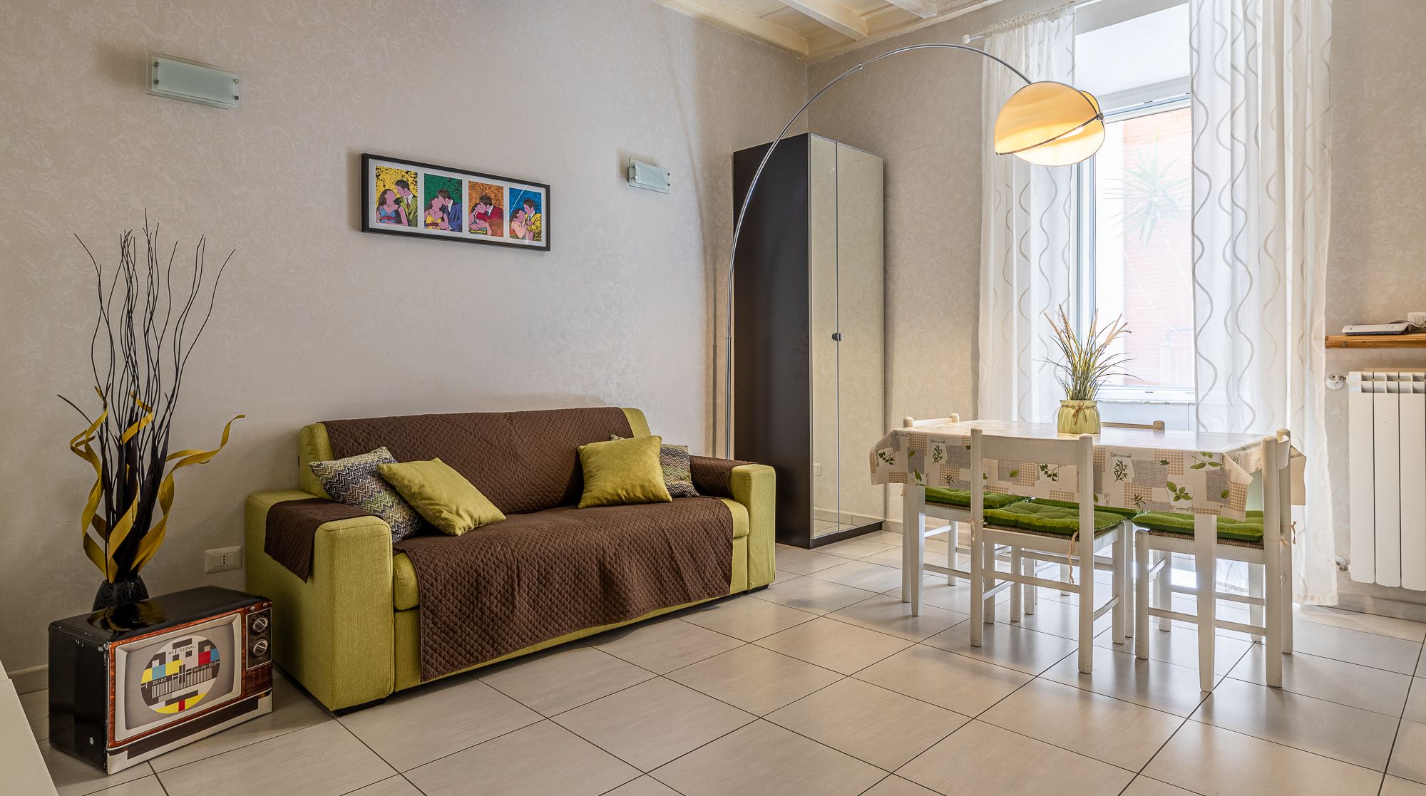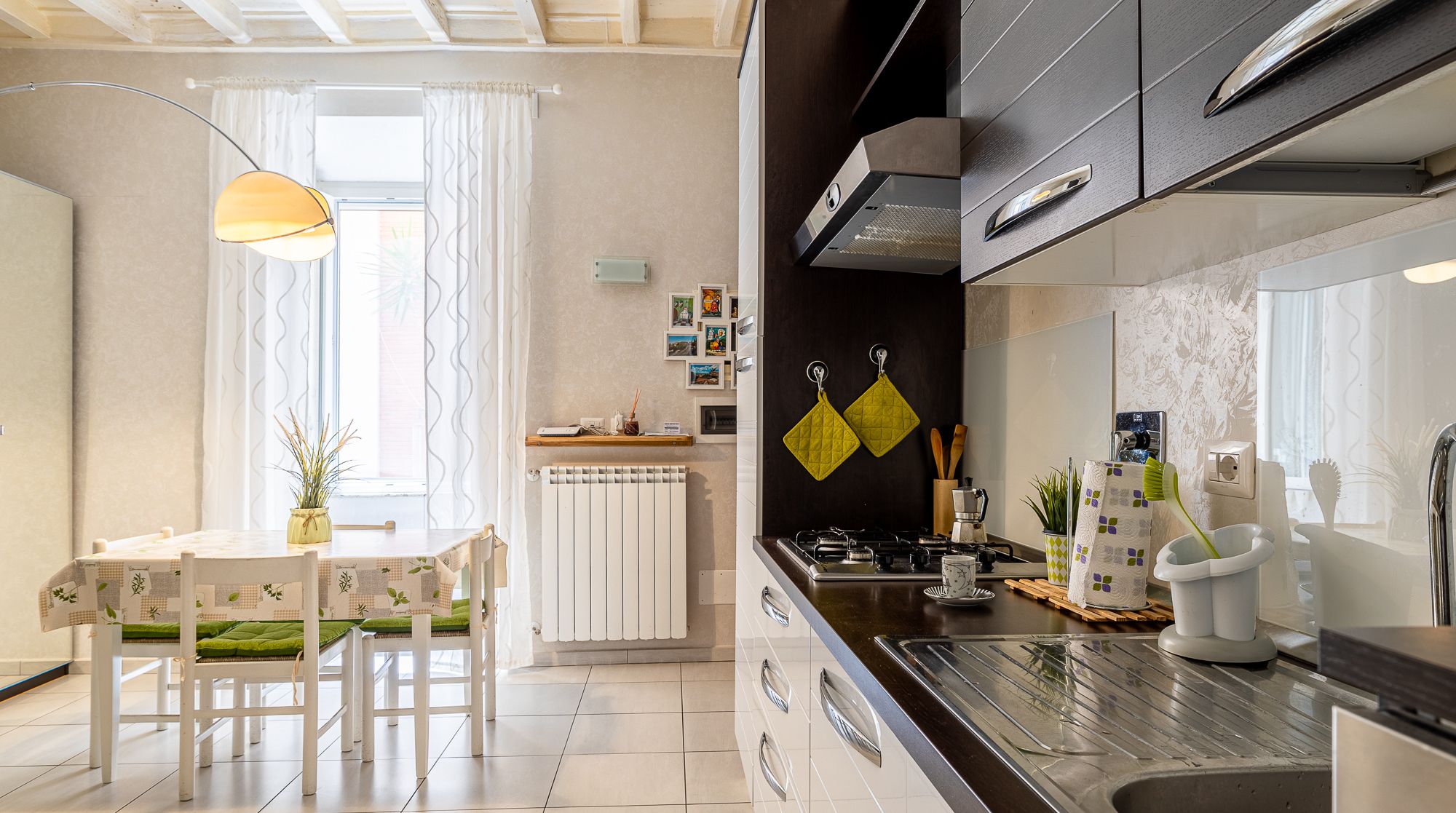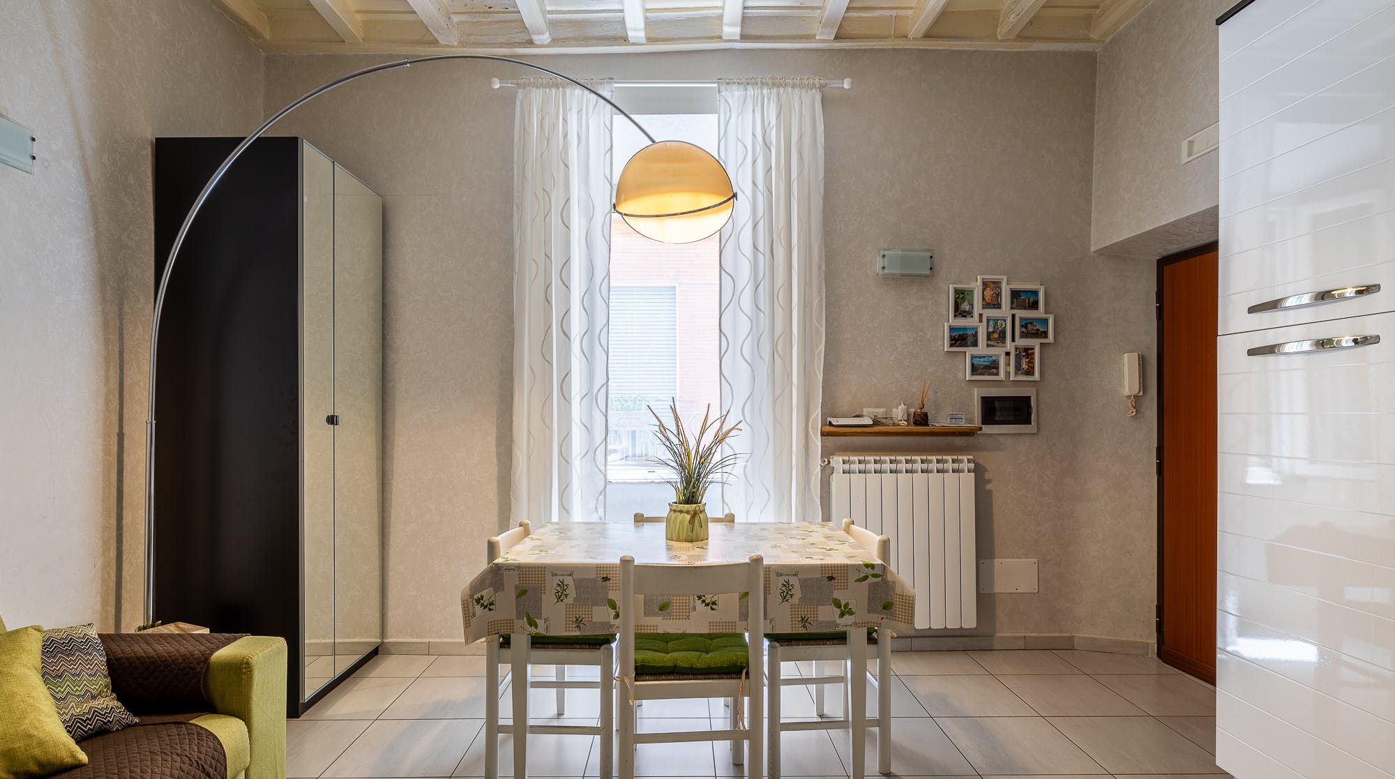 Formerly the holiday destination for wealthy Roman patricians, Frascati sits next to the ancient town of Tusculum and is an oasis of calm just outside of Rome. This apartment is the perfect base from which to explore a beautiful region, steeped in Ancient history. This apartment is newly renovated while retaining touches of old world charm, like the wooden beamed ceilings. With a sleek kitchen, for whipping up meals in, a cosy sofa for watching movies on, and a modern bathroom, you will feel right at home here. If you are looking for somewhere to work remotely, the apartment has speedy Wi-Fi and a washing machine in the small outdoor space, so is well suited to longer stays.