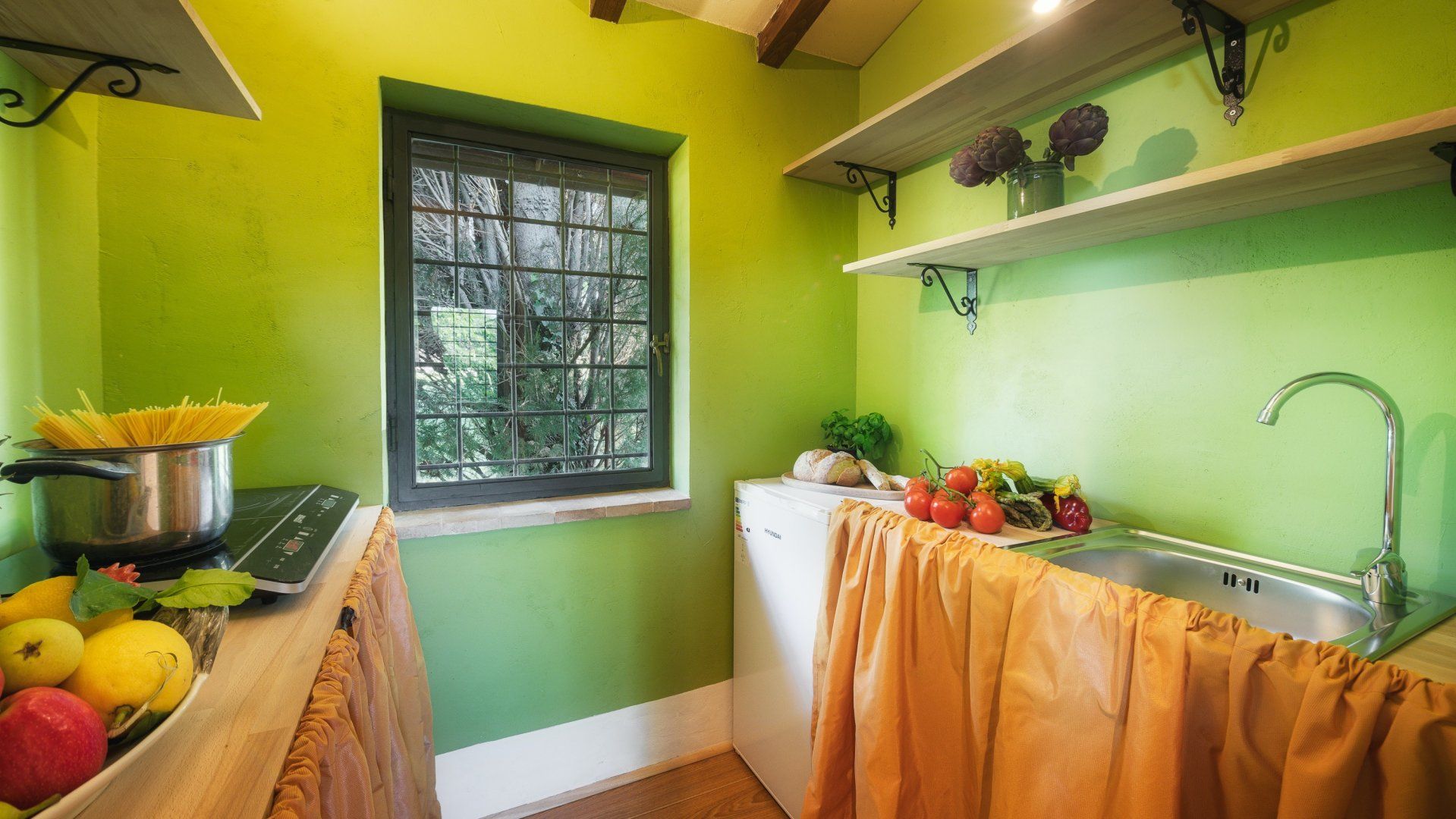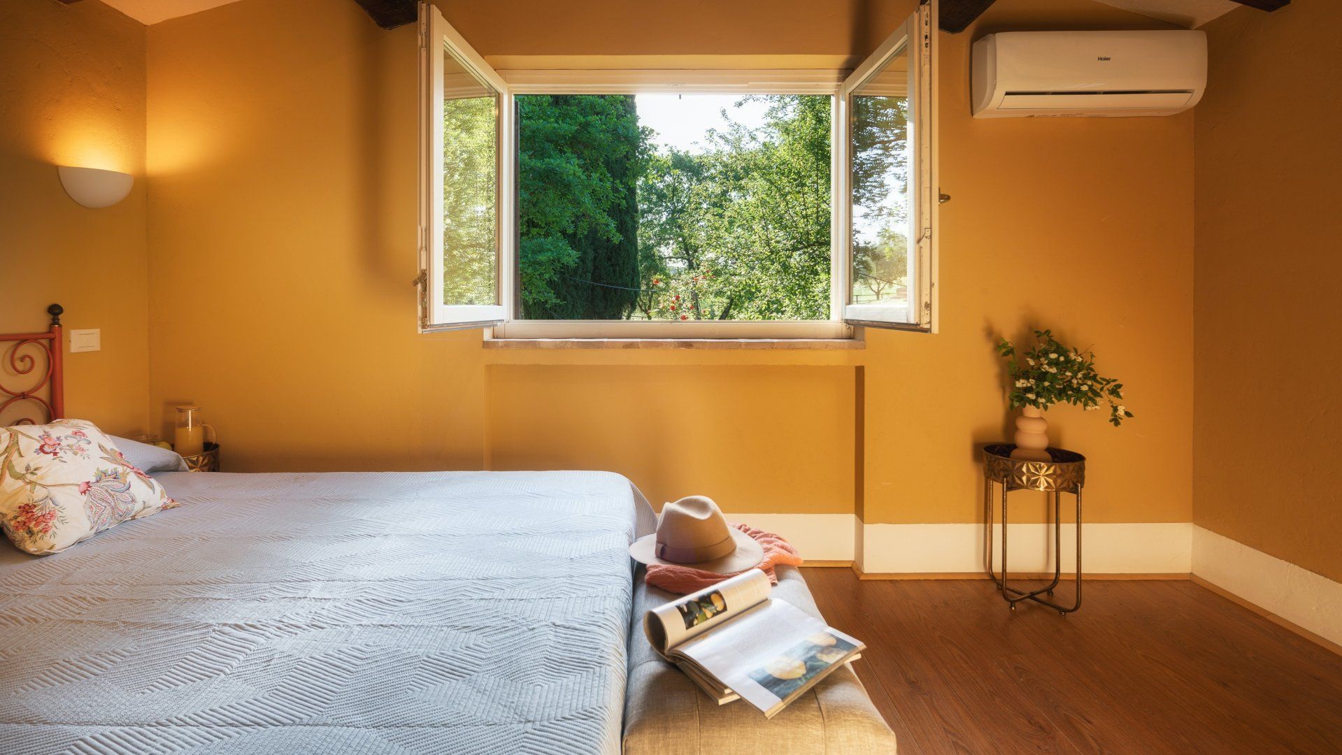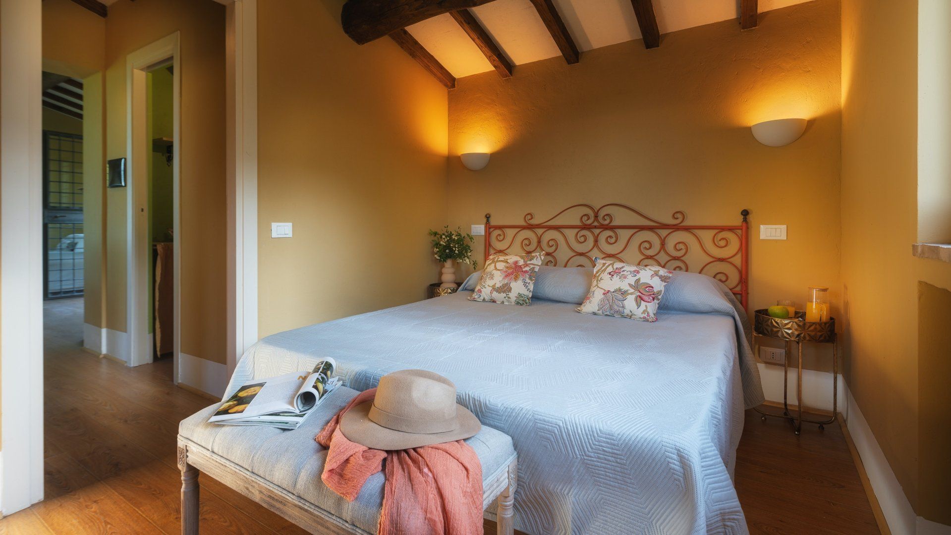 Inside, the home embodies the quintessential Italian country home dressed with exposed chestnut-wooden beams, stone walls, terracotta flooring, furnishings, and upholstery in warm colours. You'll find the annexe just twenty metres from the main house, boasting its own living room, kitchenette and bedroom-bathroom suite – the ideal set-up for grandparents joining you on a family getaway or those travelling with a nanny.