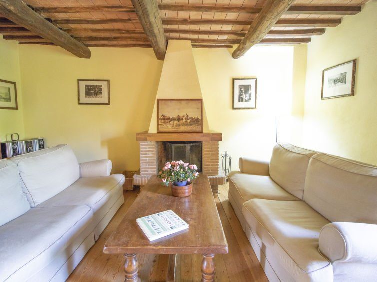 "Casale Vitello", 9-room house 350 m2 on 3 levels. Renovated, rustic and tasteful furnishings: living room with open-hearth fireplace, hi-fi system and DVD. Exit to the garden. Living room with TV and flat screen. Dining room with open-hearth fireplace. Exit to the garden. Kitchen (oven, dishwasher, 5 gas rings, toaster, kettle, freezer, electric coffee machine) with dining table.
