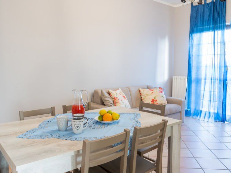 The pictures have been reversed: Rosa Alba on the 1st floor has only 1 terrace, directly at the entrance to the apartment (wooden table and 2 wooden benches). The picture with the plastic table and 5 plastic chairs belongs to the Rosa Bacara (ground floor - 2 terraces). Very nice spacious clean apartment. You need a car - the English in the house (pink tea) weren't aware of this and had to take a taxi to go shopping. Agricultural yard with dogs!!! Unfortunately, these and neighboring dogs also bark at night