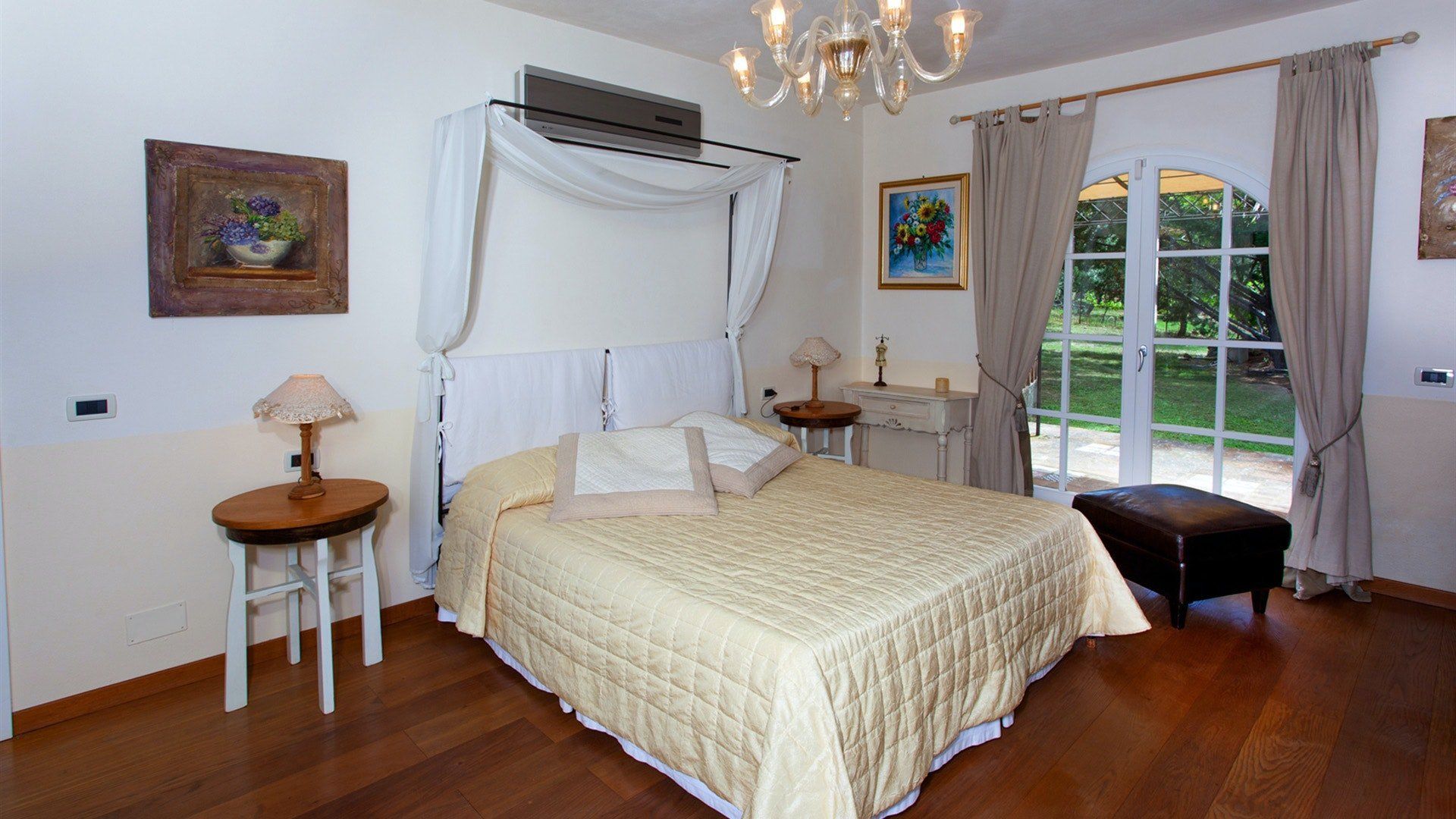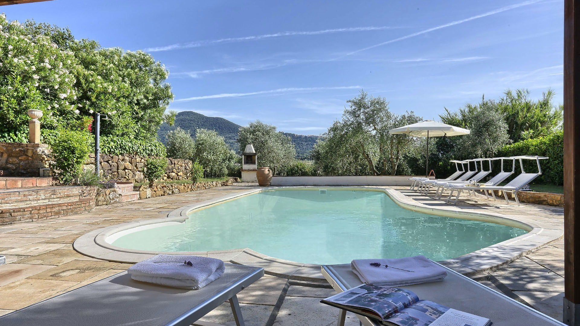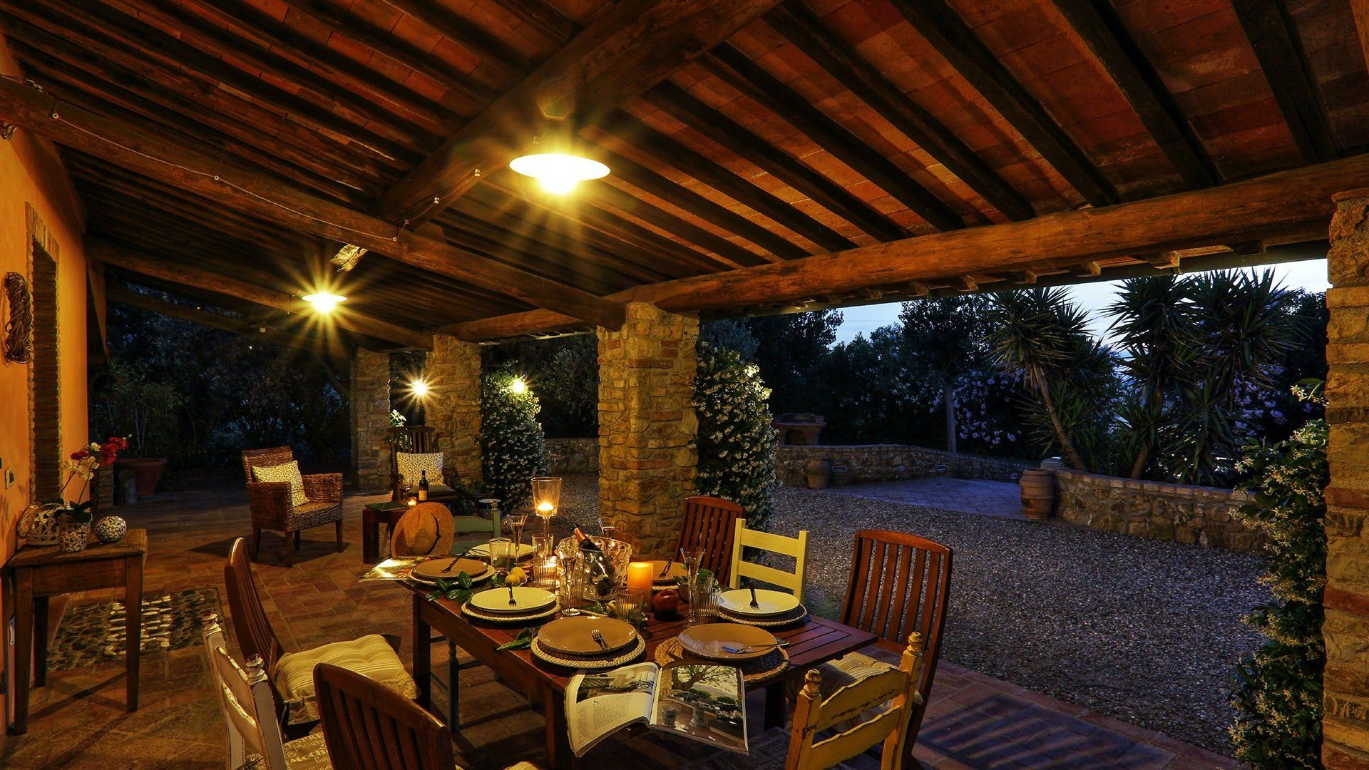 Surrounded by Tuscany’s rolling hills and within easy reach of the sea, this villa just outside Scarlino is a vision of rural romance. Inside, contemporary decor blends with country-style furnishings, with a brick hearth and a selection of pastoral paintings completing the living room’s homey feel. Step through the arched doorway into the large kitchen, where plenty of feasts are in store when you’re not using the brickwork grill outside. With an additional tavern-style living space downstairs, there’s plenty of room to hang out and socialise. Then again, for true peace and relaxation, you need only step out into the beautiful garden, where the perfume of its lavender bushes, pine, fruit and olive trees will instantly waft you into total serenity. Take a dip in the swimming pool, soak up some sun in the deck chairs, and cool off under the refreshing outdoor shower. If you feel the call of the sea, Follonica with its golden sand beaches is less than a 15-minute drive away. After a day at the beach or enjoying the peace and quiet of your garden oasis, take one more evening dip in the lit-up pool before gathering together for an alfresco barbecue.