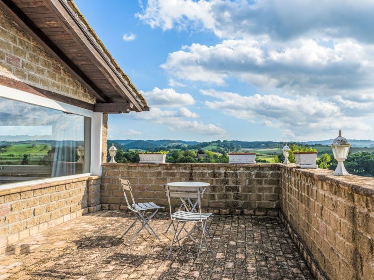 5-room cottage 300 m2 on 2 levels. Modern and luxurious furnishings: large living/dining room. Exit to the garden, to the veranda. 1 room with 1 double sofabed and TV (flat screen). 1 double bedroom. Kitchen (4 hot plates, dishwasher, microwave). Exit to the garden, pergola. Shower/bidet/WC, double hand-basin.