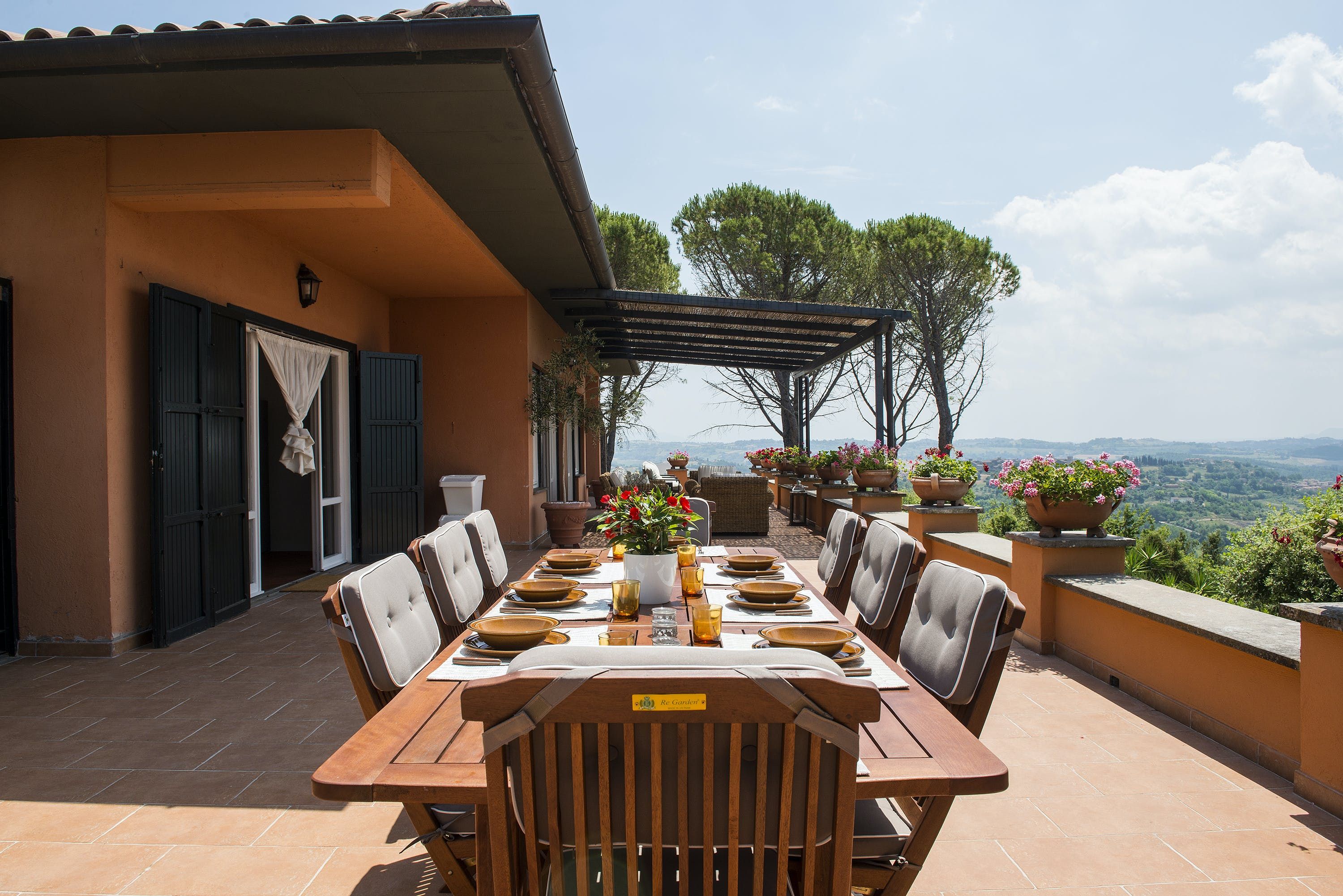 Surrounded by giant pine trees as well as a working olive grove, every detail of this setting is steeped in the beauty of Italian living. And with eleven acres of land to explore, there’s everything you could need for an idyllic retreat.