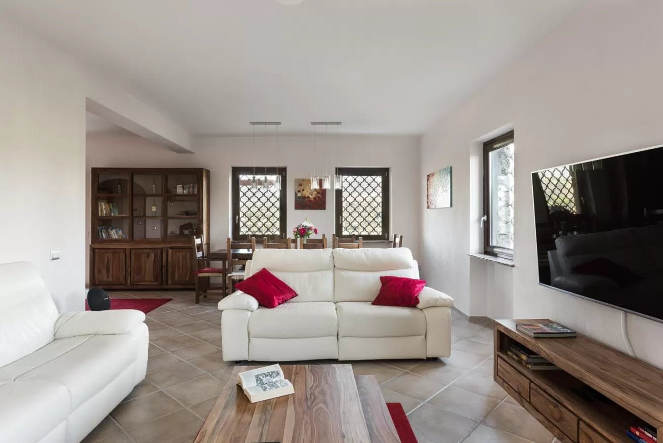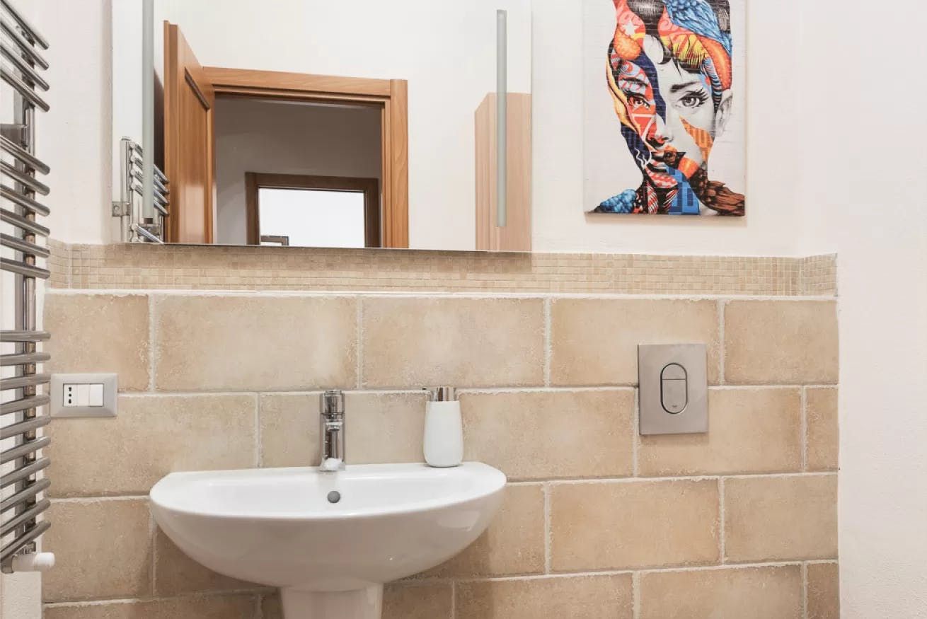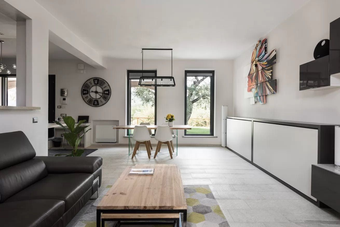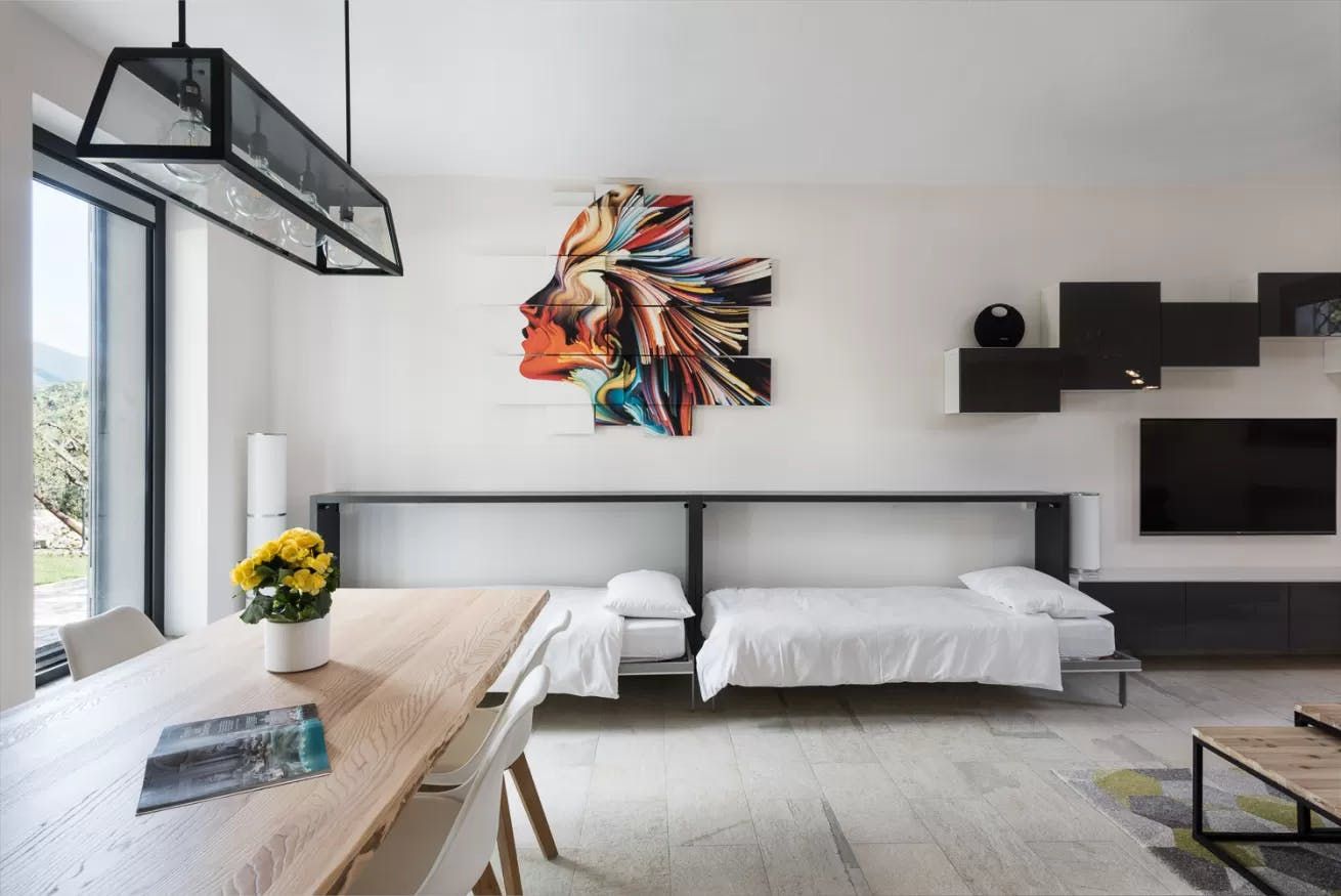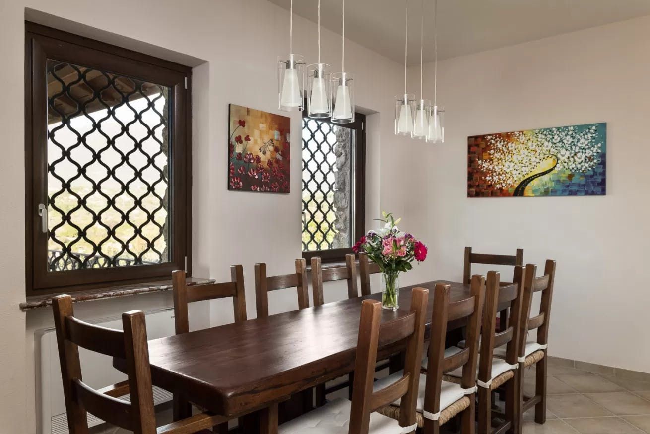 On a hill, nestled between five-hundred olive trees, you’ll find this unique home split into two sections – great for two families who want to holiday together, but still retain a bit of privacy. The more modern and colourful of the two is located on the ground floor and can sleep four, whilst the second, third, and fourth levels are dedicated to the other section and can house the remaining seven with a slightly more rustic touch.