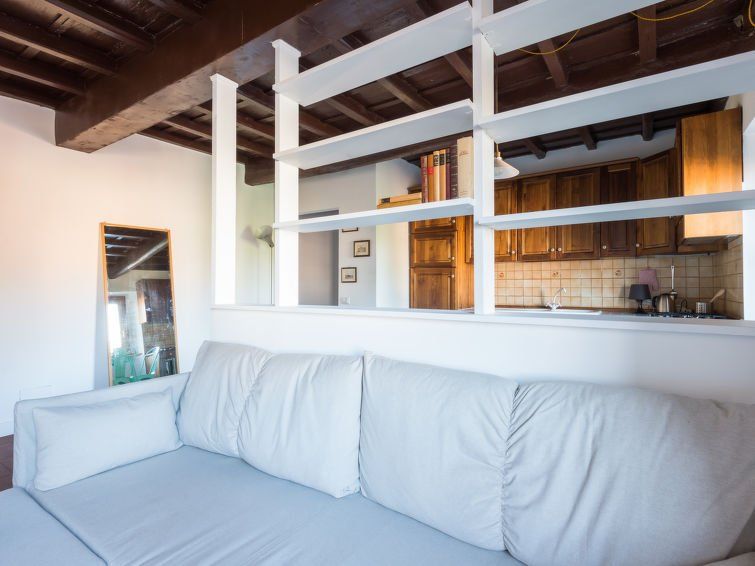 "Al Gianicolo", 2-room apartment 70 m2 on 3rd floor. Spacious and bright, comfortable and cosy furnishings: living/dining room with 1 double sofabed, digital TV and flat screen. 1 double bedroom. Kitchenette (4 hot plates, toaster, kettle). Shower/WC. Gas heating, air-conditioning.